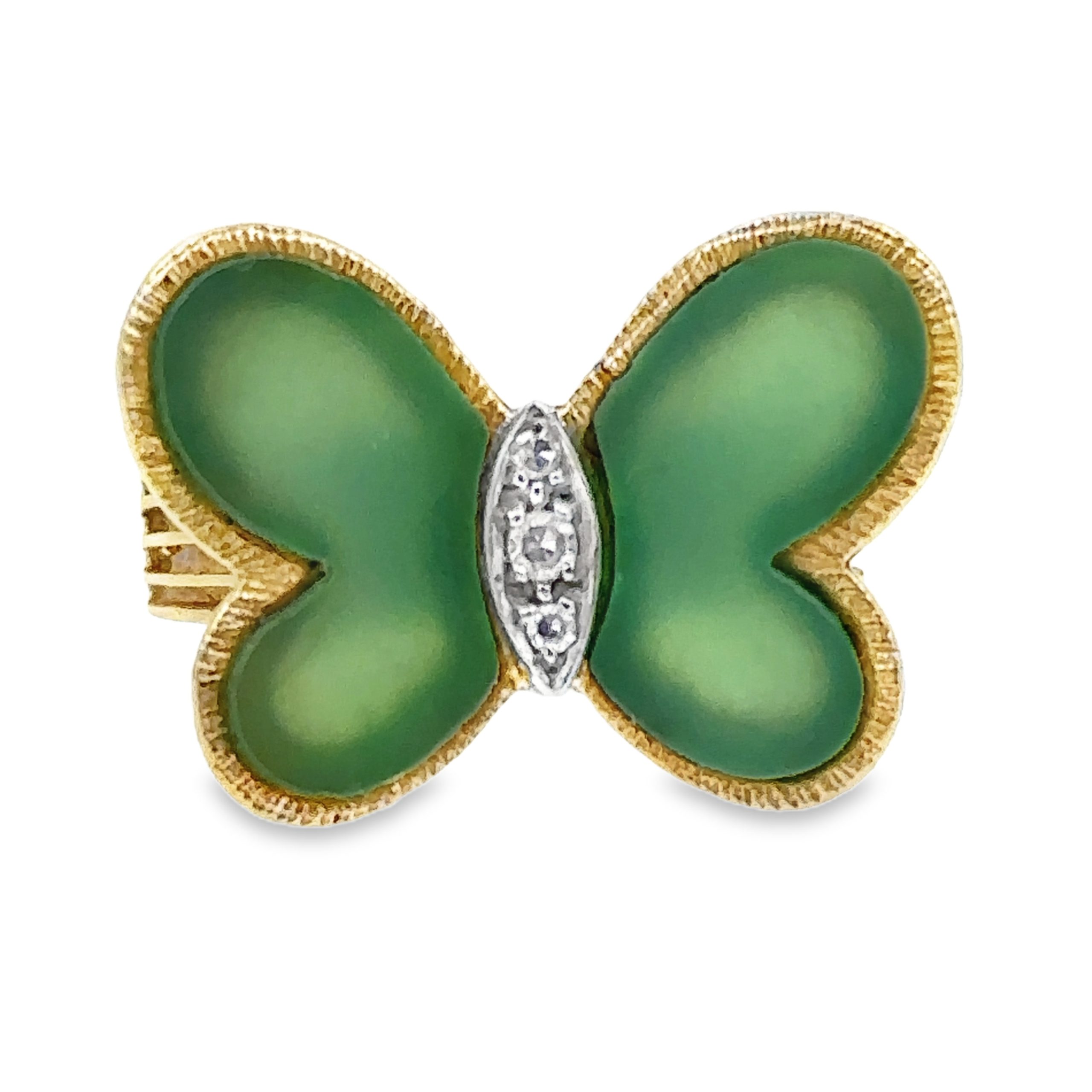 14K Yellow Gold Diamond Hardstone Butterfly Ring By Hammerman Brothers, 3.30Dwt/5.20Gr., ring size 5 3/4.