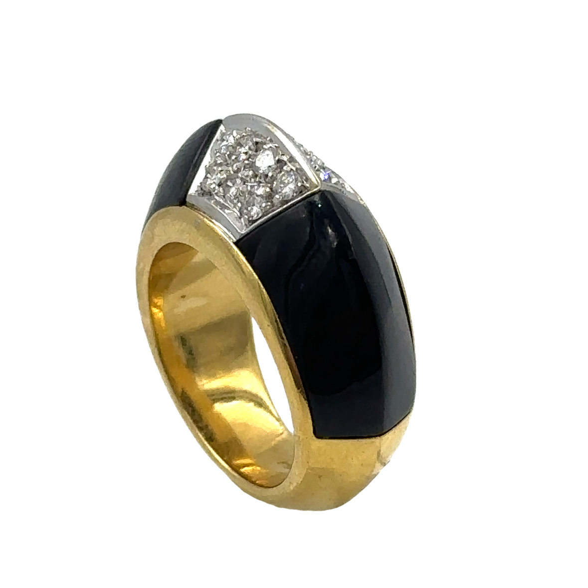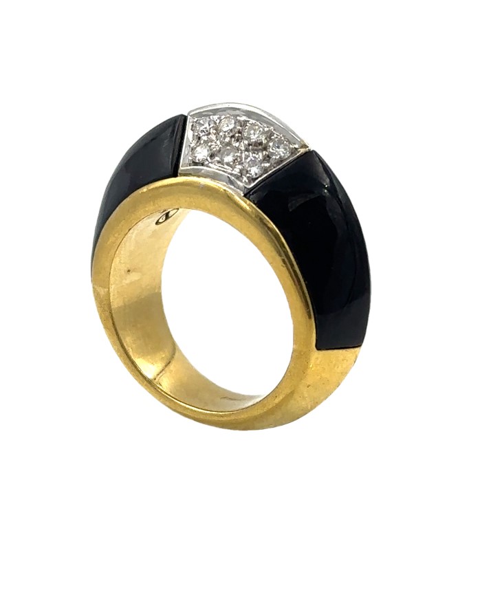 1970’s 18K Yellow Gold Diamond and Onyx Ring