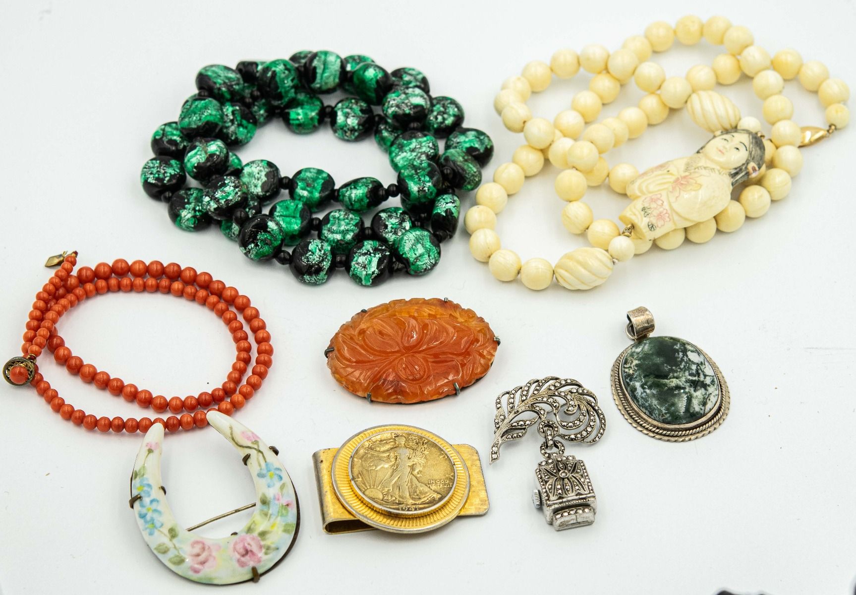 Assorted Jewelry Collection; 3 necklaces; 3 brooches; 1 pendant; 1 money clip