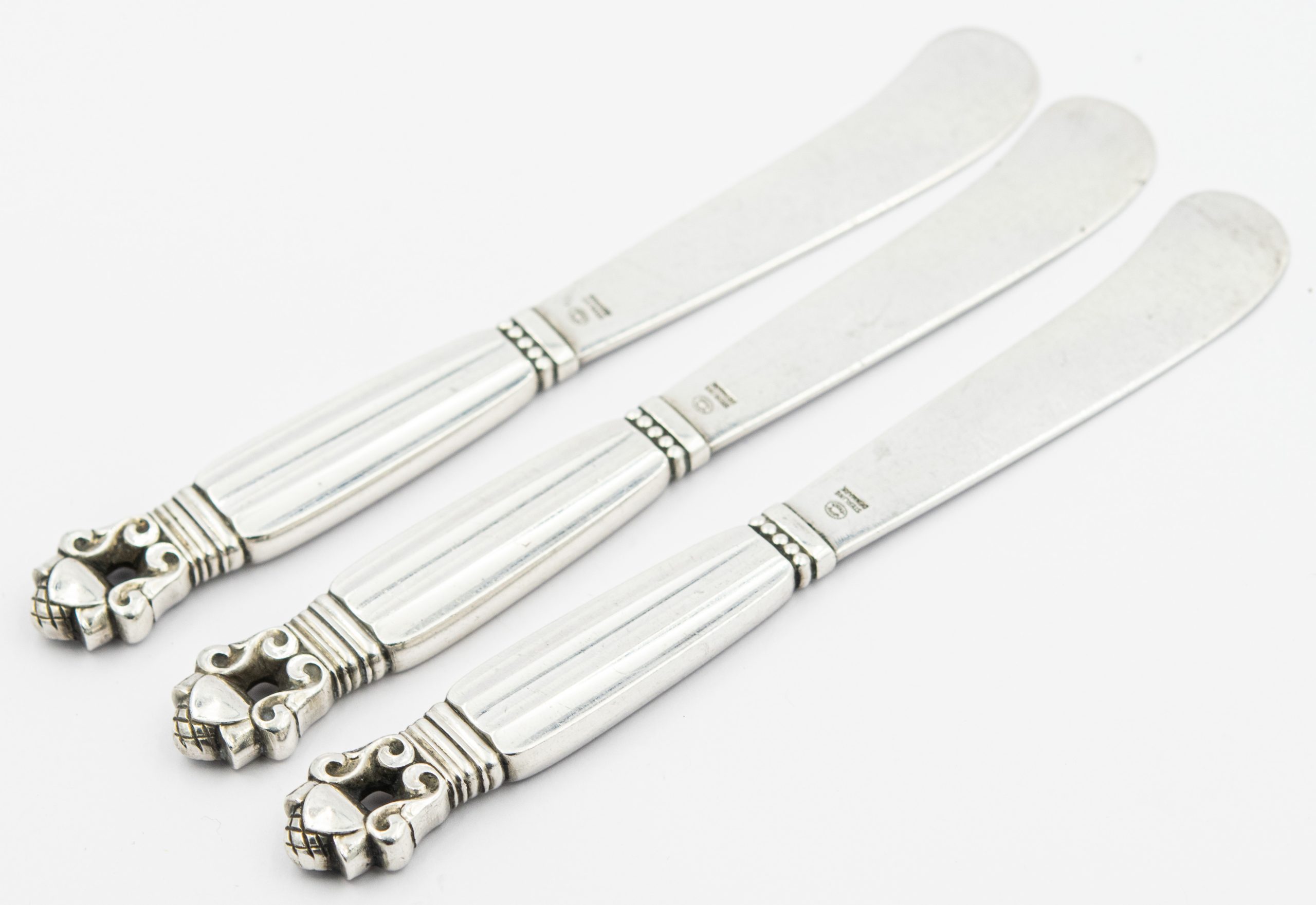 Collection of (3) Sterling Silver Acorn Butter Knives by George Jensen