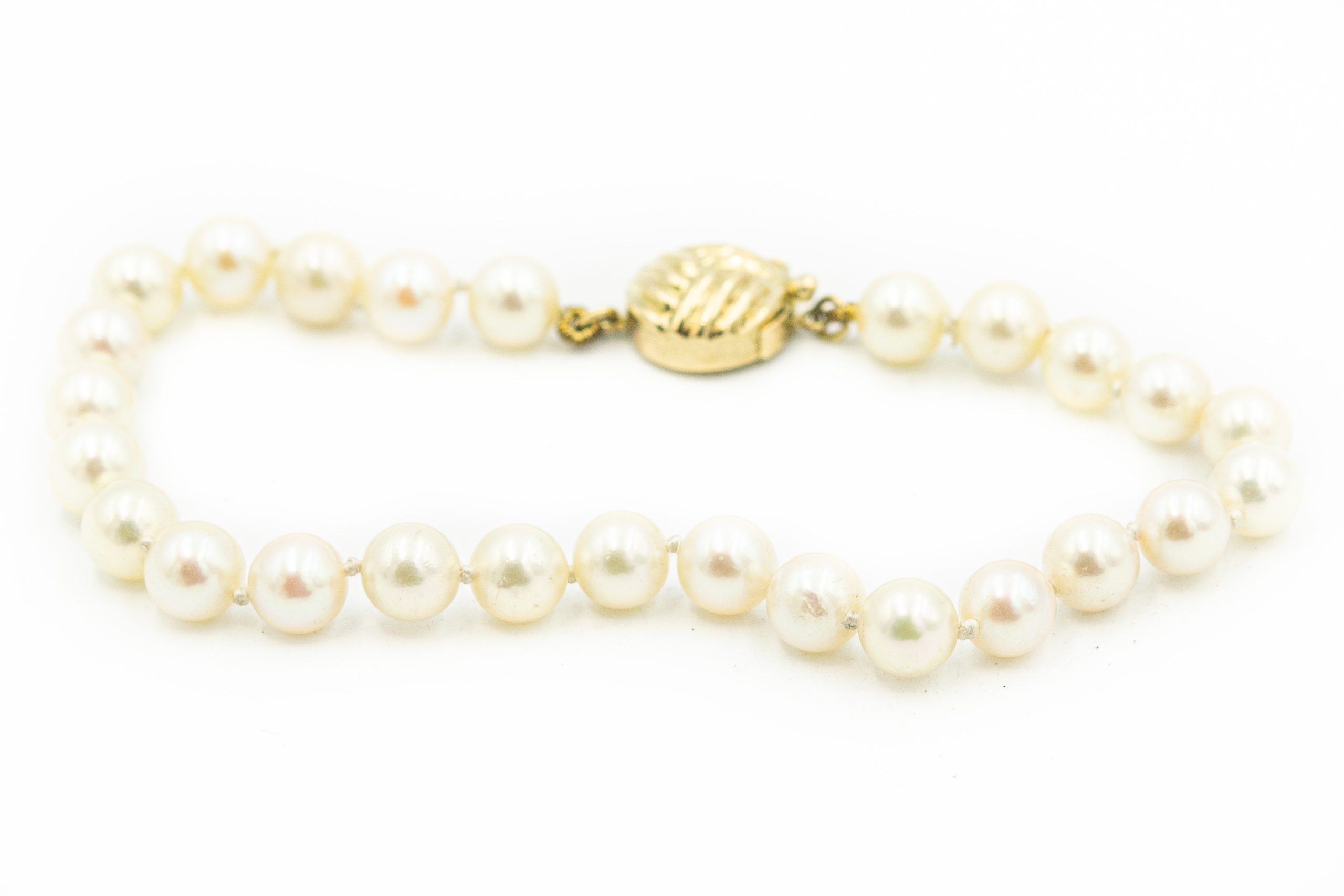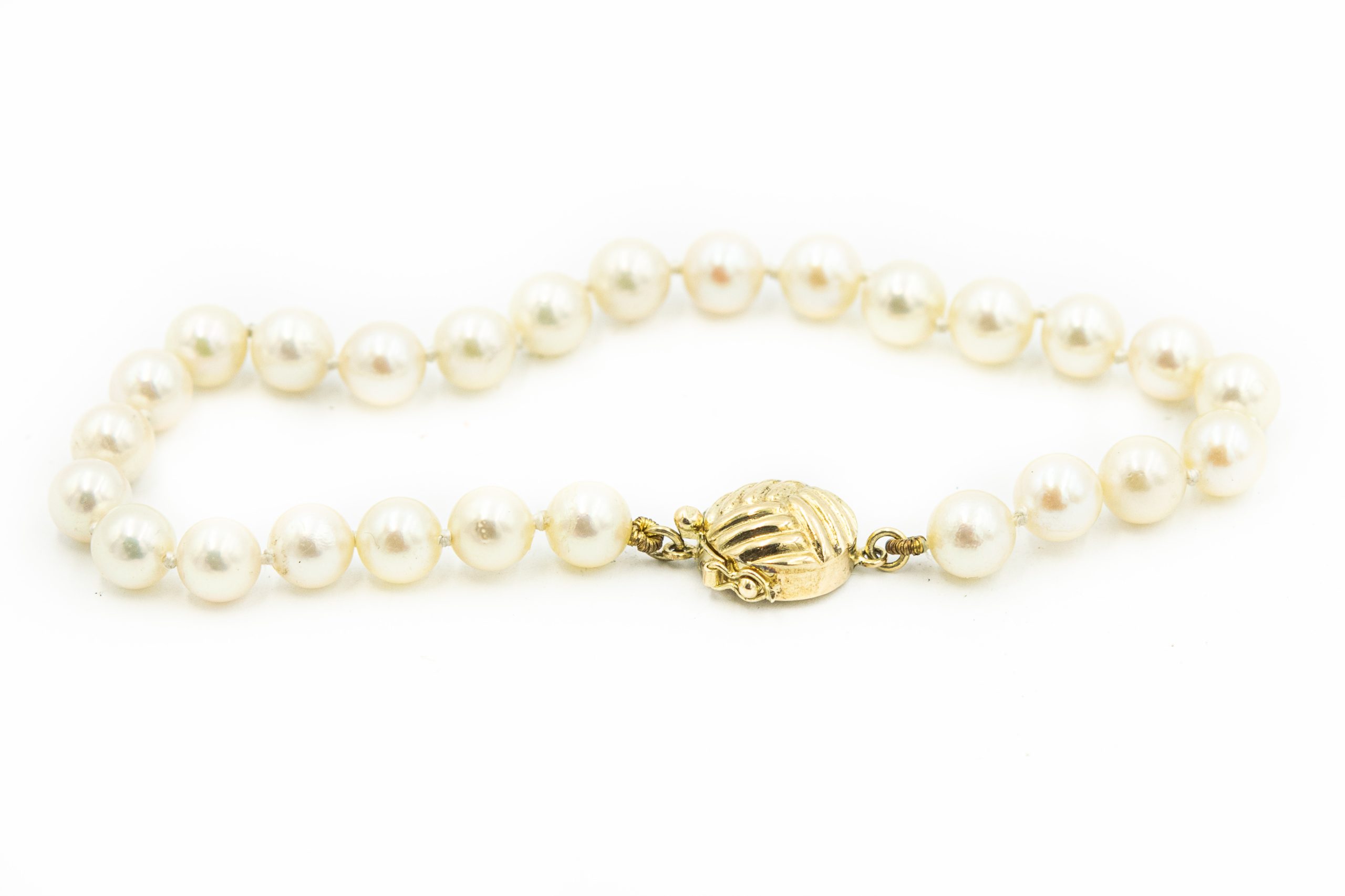 Contemporary Cultured Pearl Bracelet with Yellow Gold Clasp