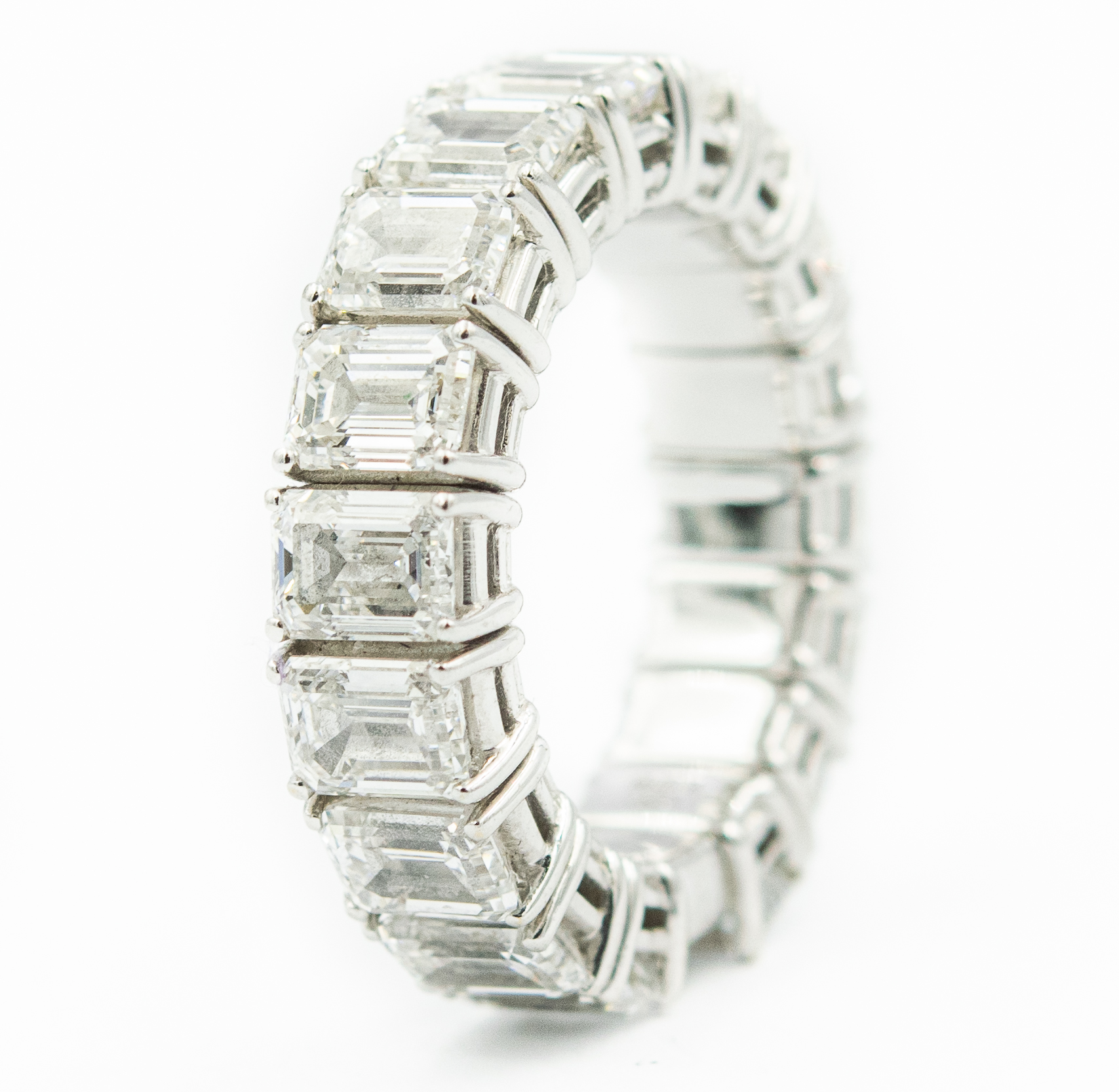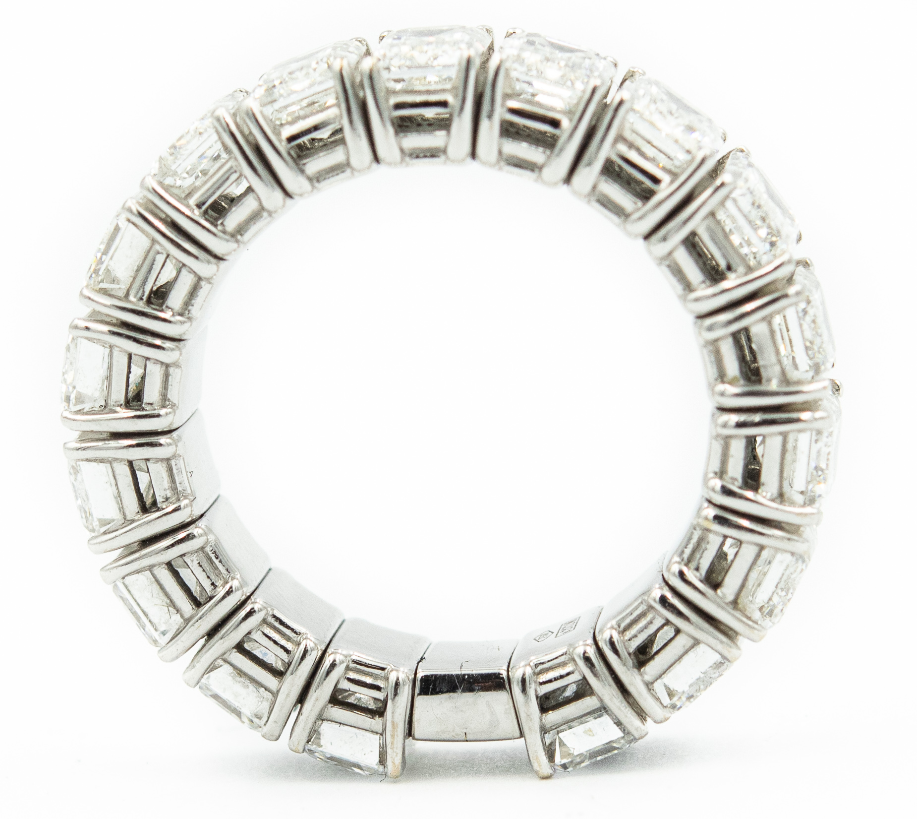 Contemporary Diamond "Xpandable" Eternity Band by Picchiotti; 18k white gold; 5.70dwt/9.00g; 18 emerald brilliant cut diamonds 9.00cts; Ring Size 7