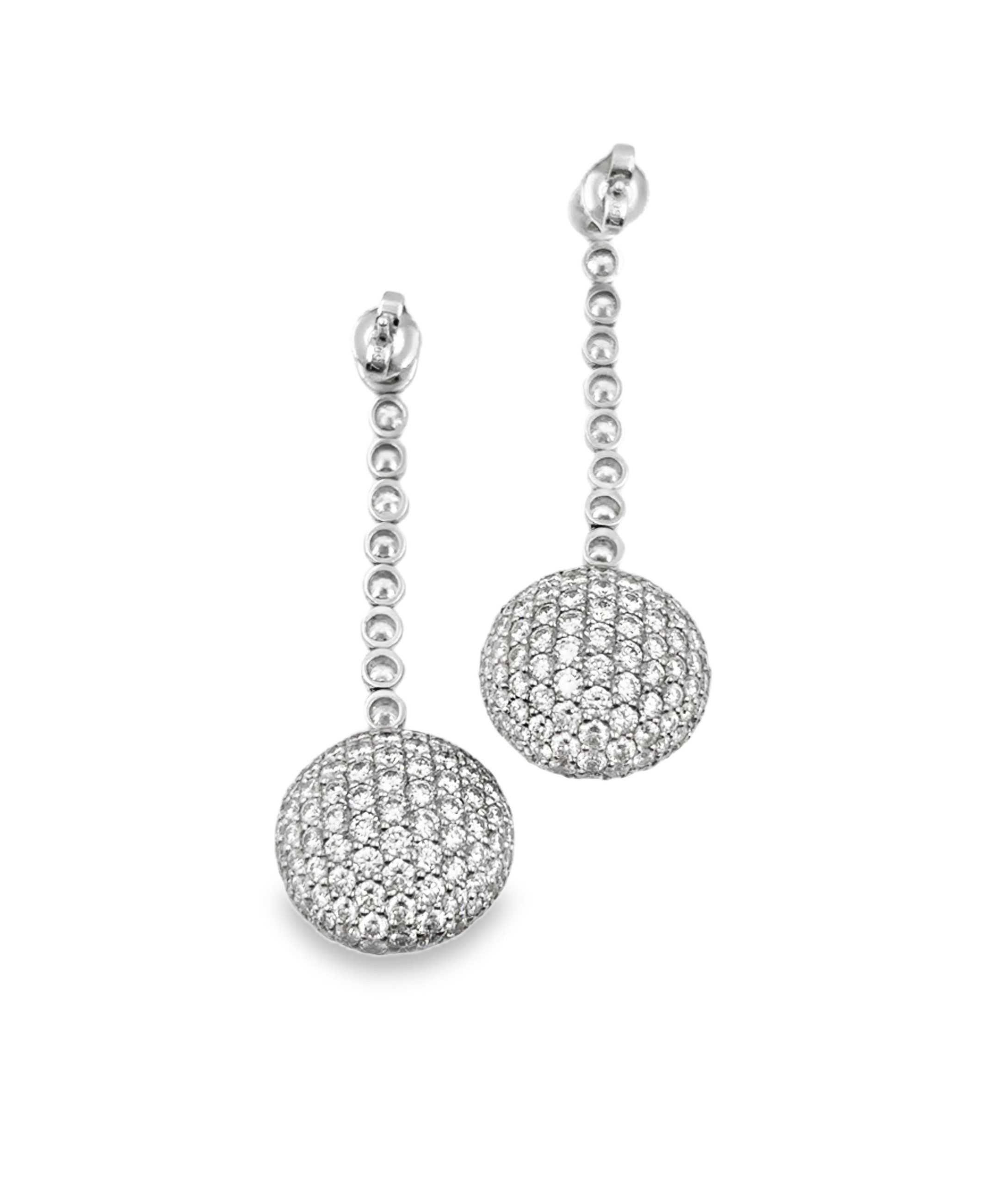 18K White Gold Diamond Ear Pendants with Pave Set Biconvex Drops.