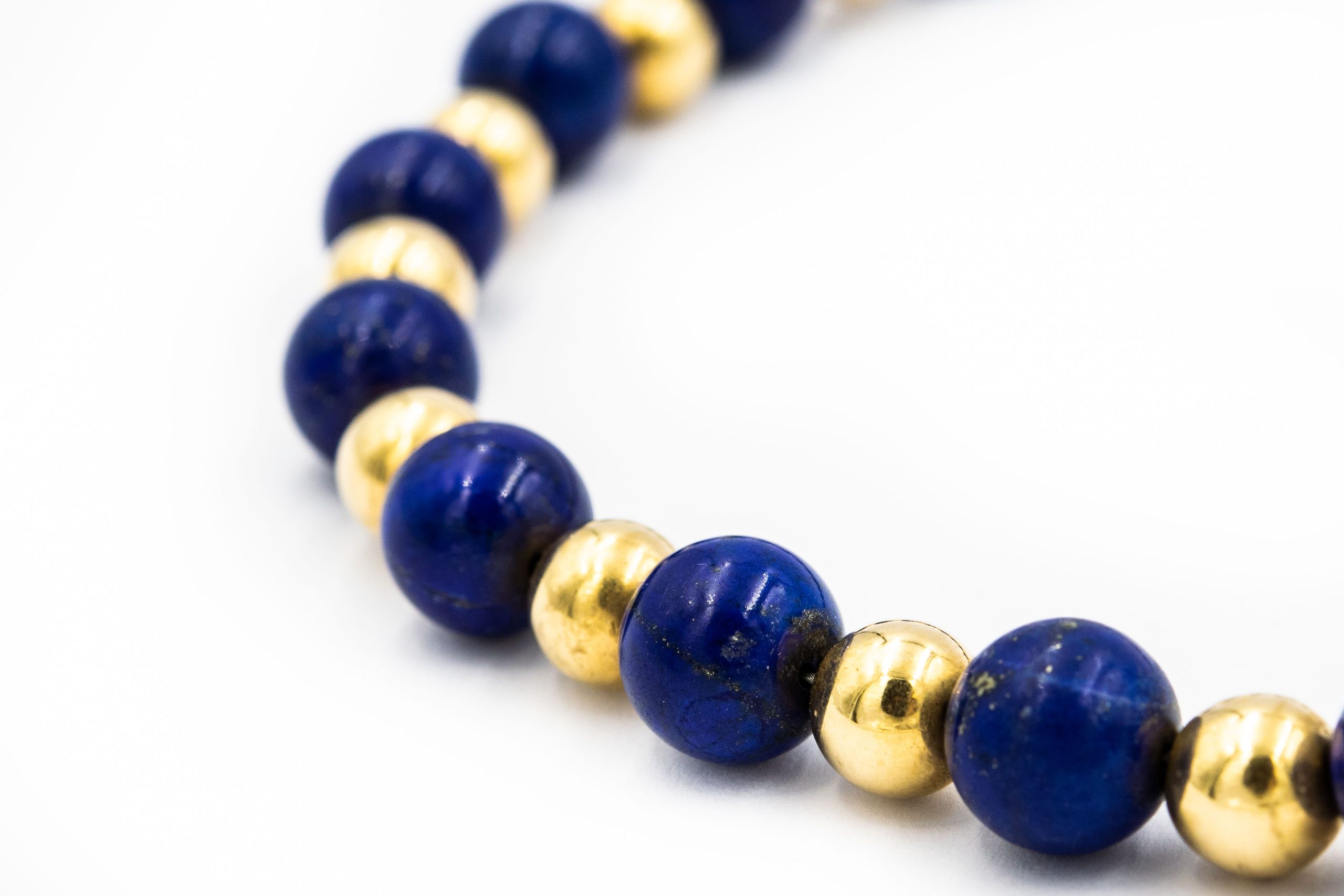 Estate 1960’s Yellow Gold and Lapis Lazuli Bead Necklace