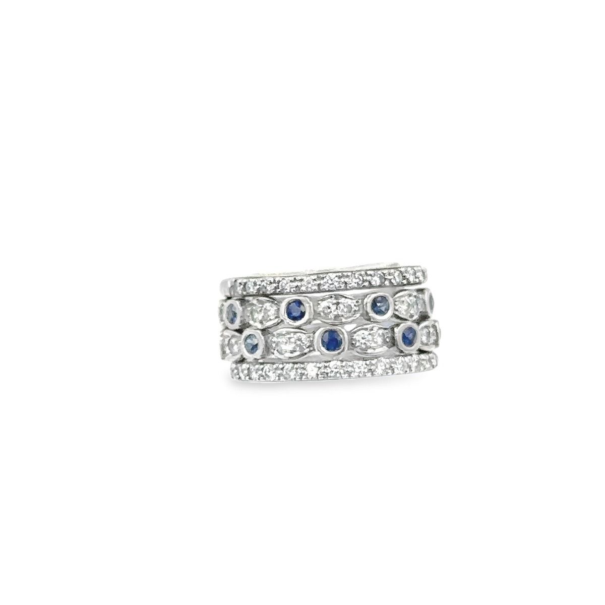 Estate (4) White Gold Sapphire and Diamond Wedding Bands; 18k white gold; 64 diamonds 0.85cts; 16 sapphires 0.65cts; Ring Sizes 6 and 6 1/2