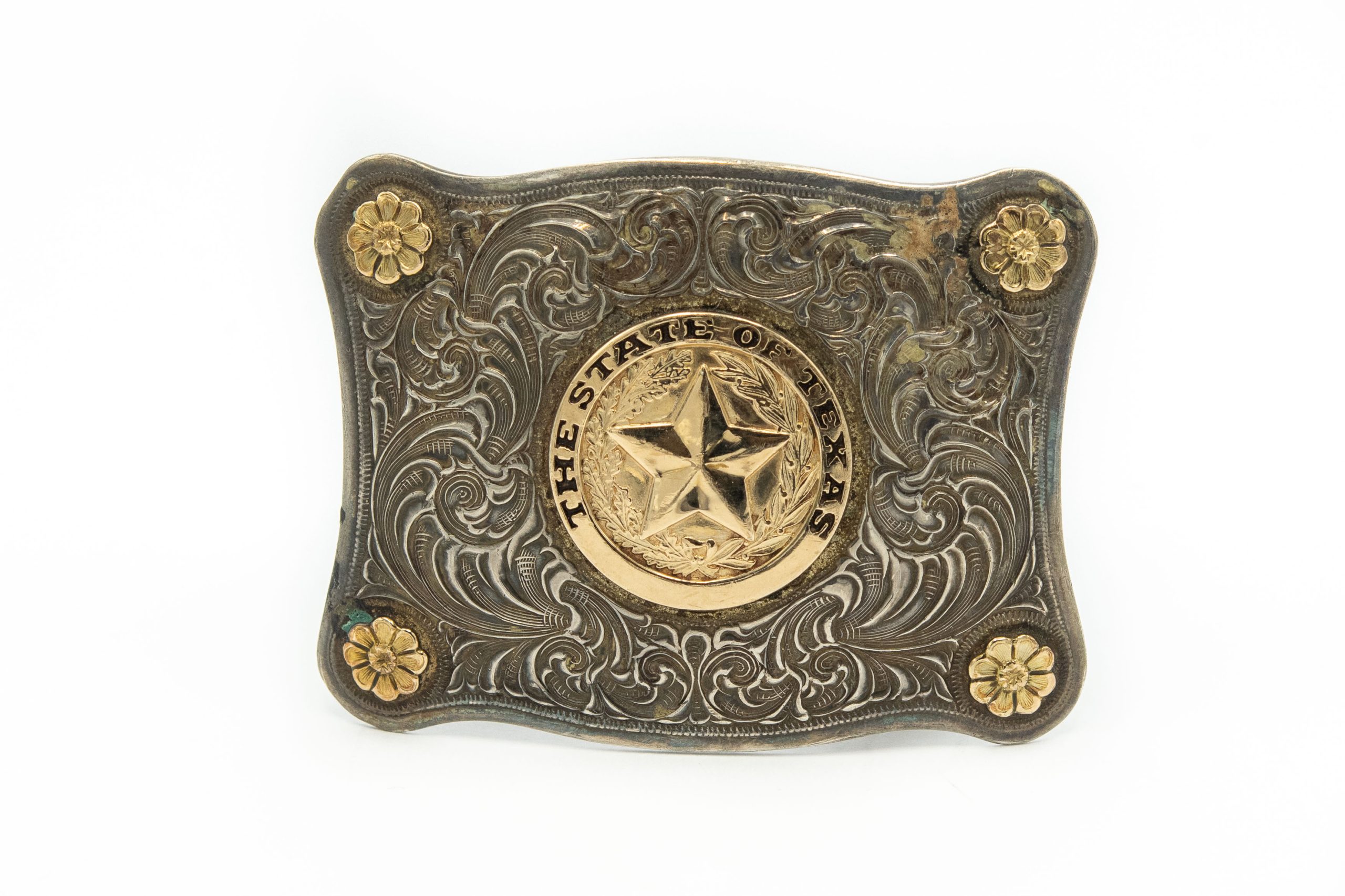 Estate ADM Sterling Silver and Gold Filled State of Texas Belt Buckle