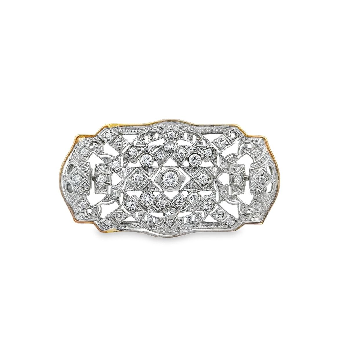 Estate Art Deco Gold Platinum and Diamond Brooch/Pendant; platinum; gold; 37 pave set diamonds 1.35cts; 2 1/4"