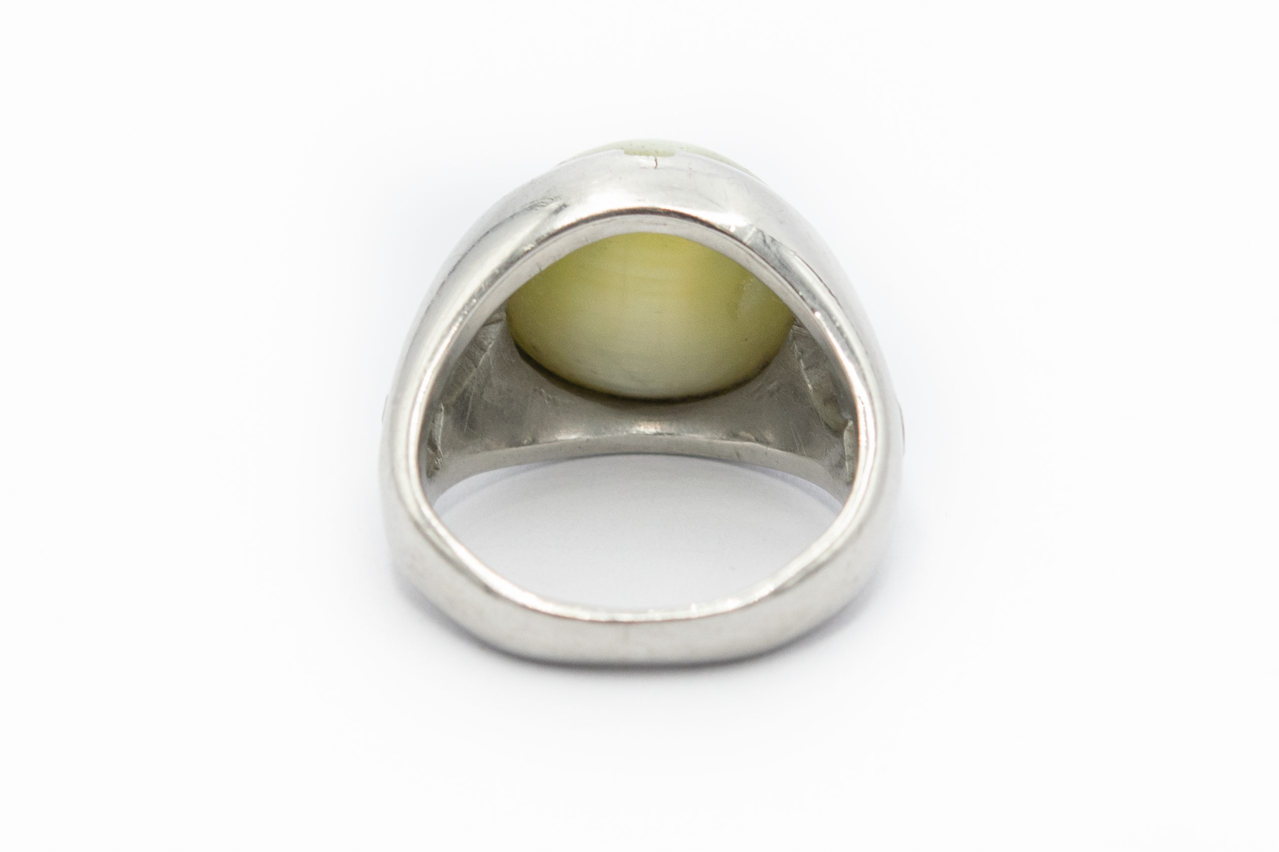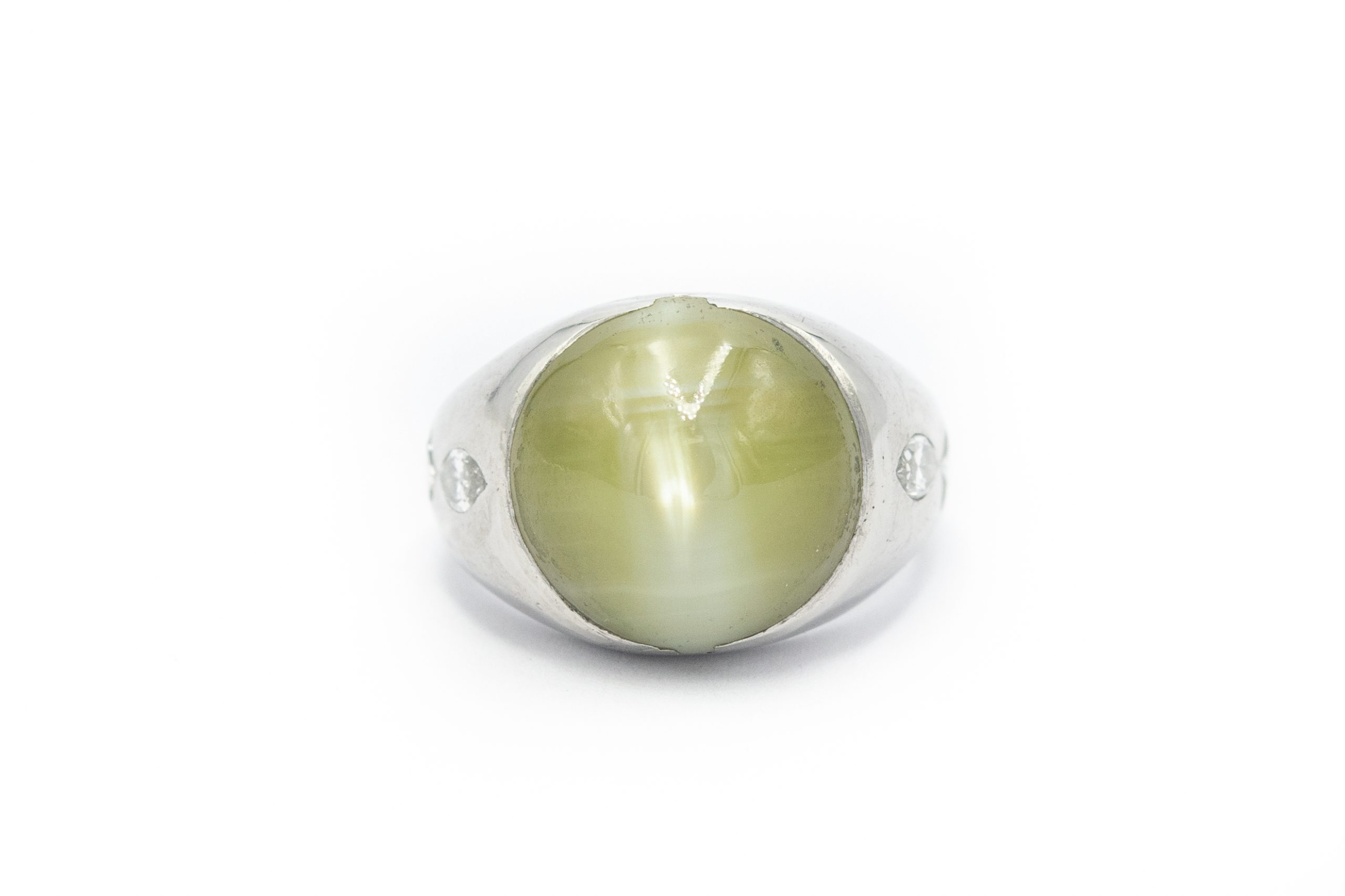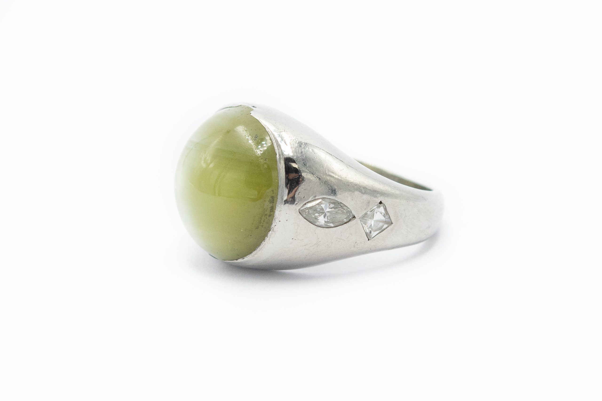Estate Art Deco Men’s Platinum Cat’s Eye Chrysoberyl Diamond Pinky Ring