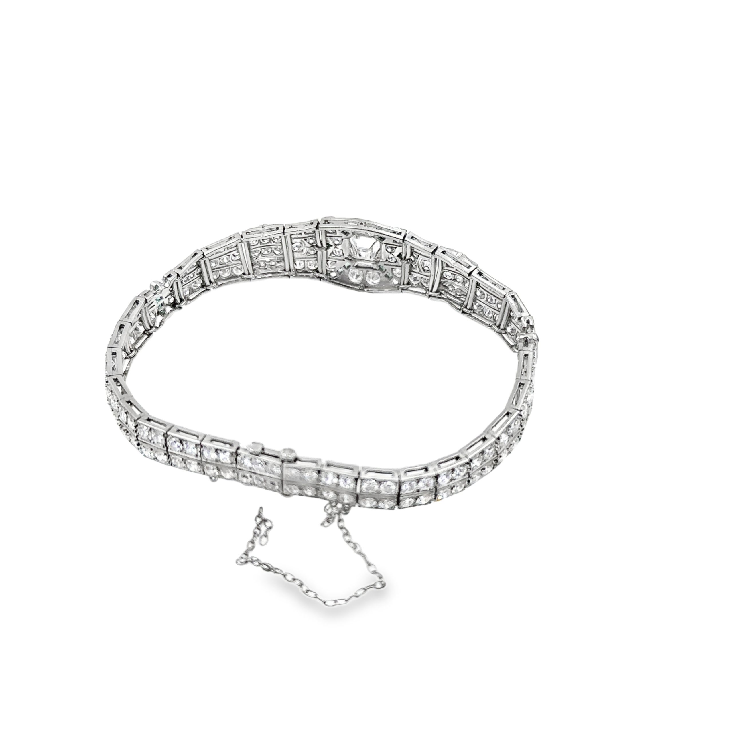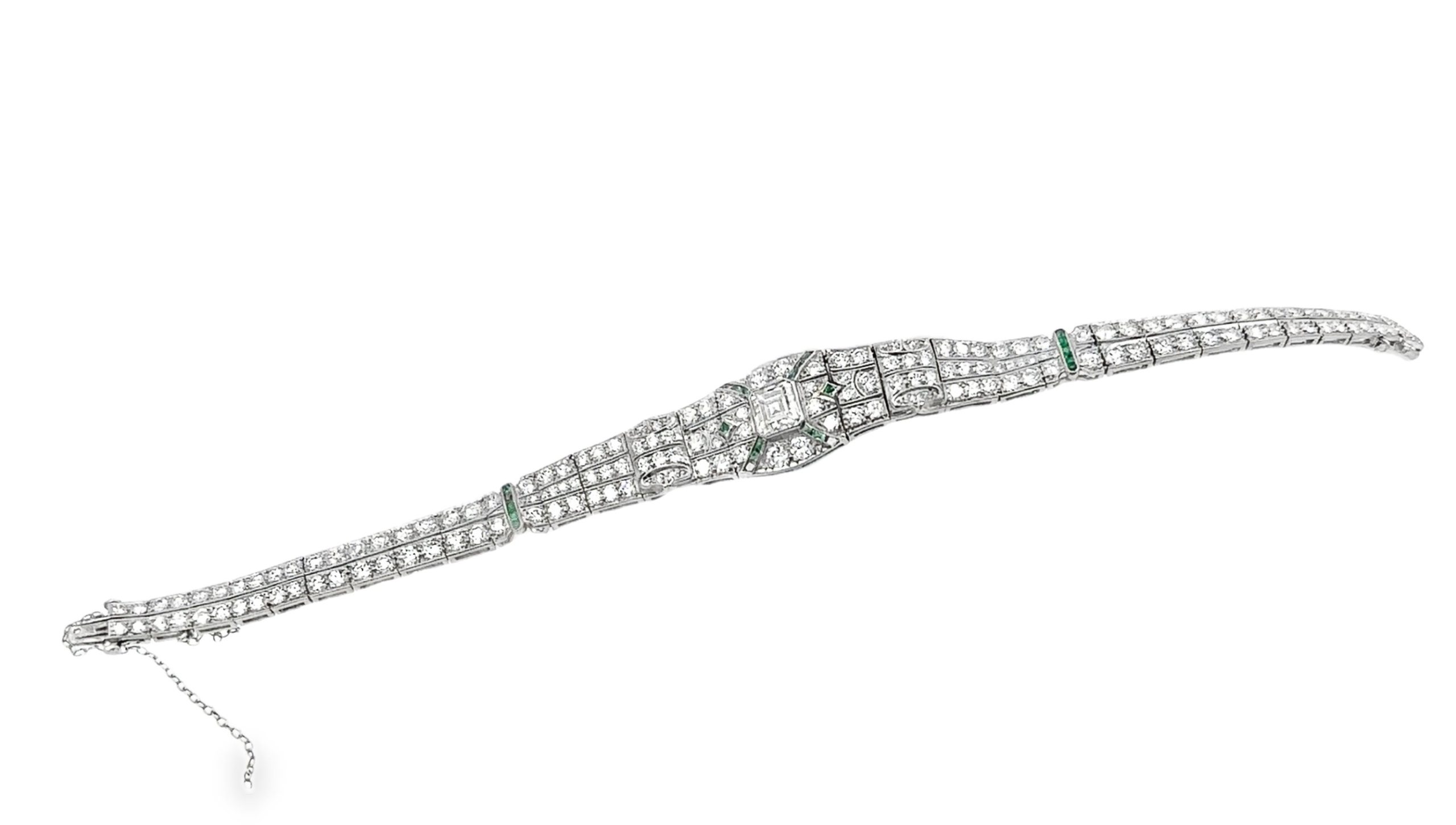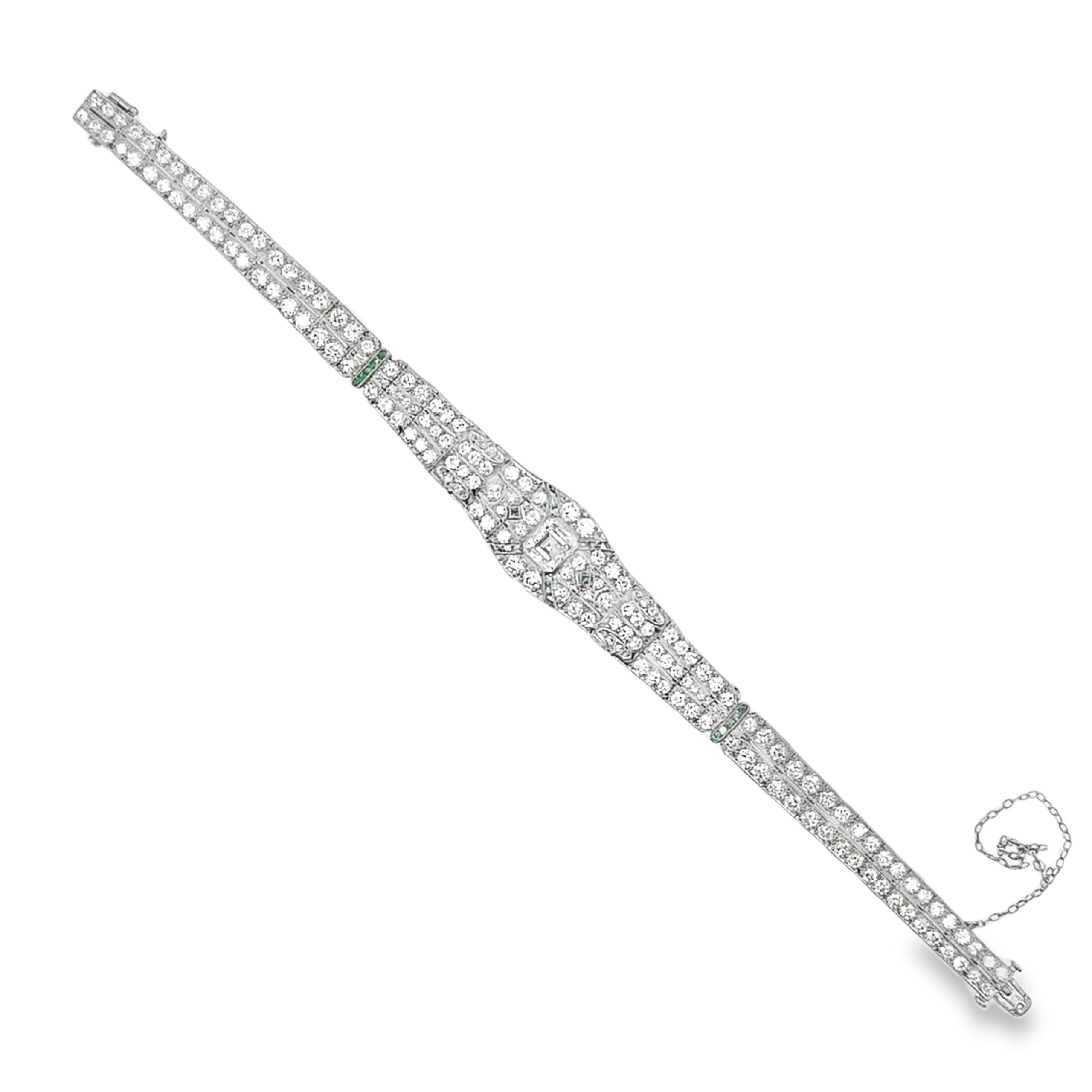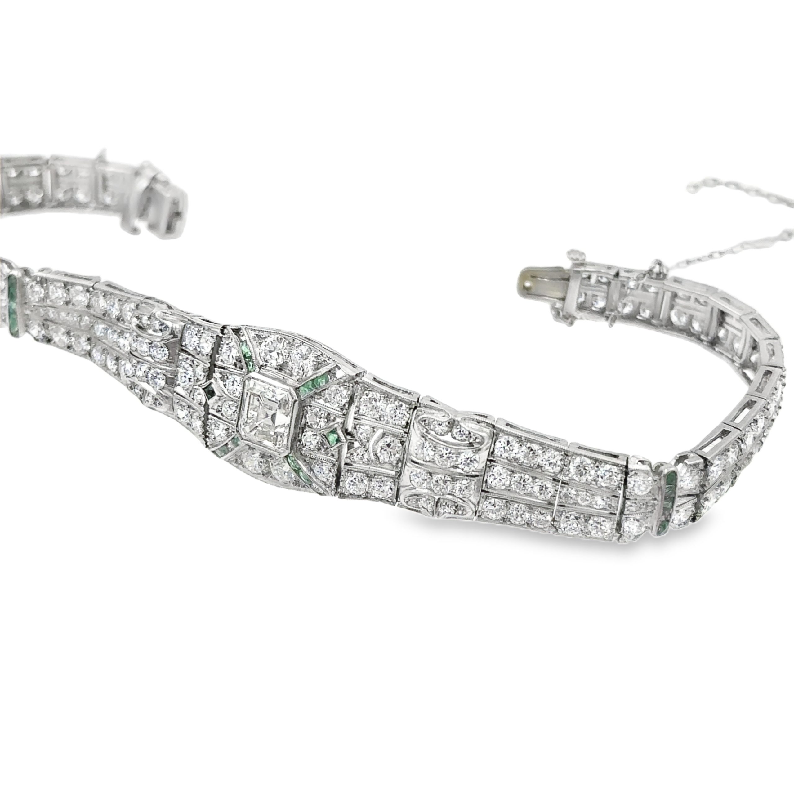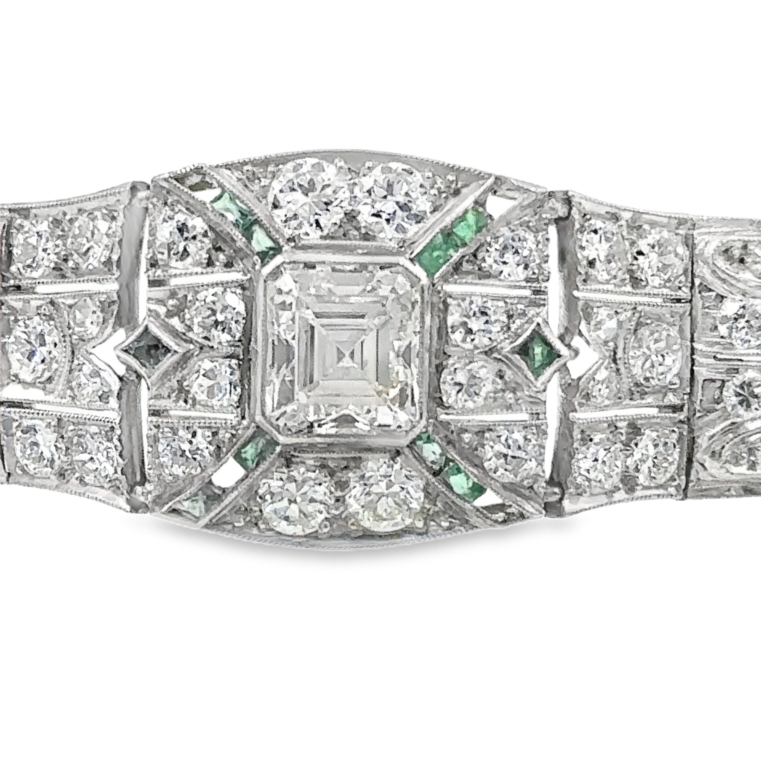 Estate Art Deco Platinum Emerald and Asscher Cut Diamond Bracelet