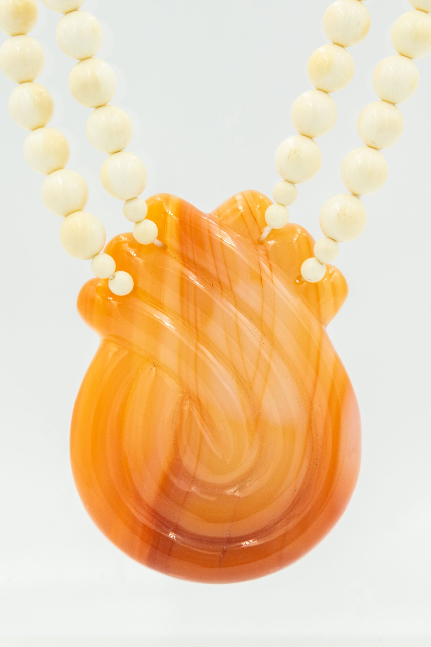 Estate Bead Necklace with White Beads and Banded Agate Pendant