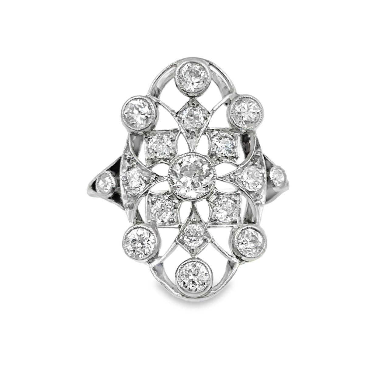 Estate Belle Epoque Diamond Lattice Design Ring; platinum; 18k gold mounting; 2.40dwt/3.80g; 17 diamonds 1.16cts; Ring Size 4 3/4
