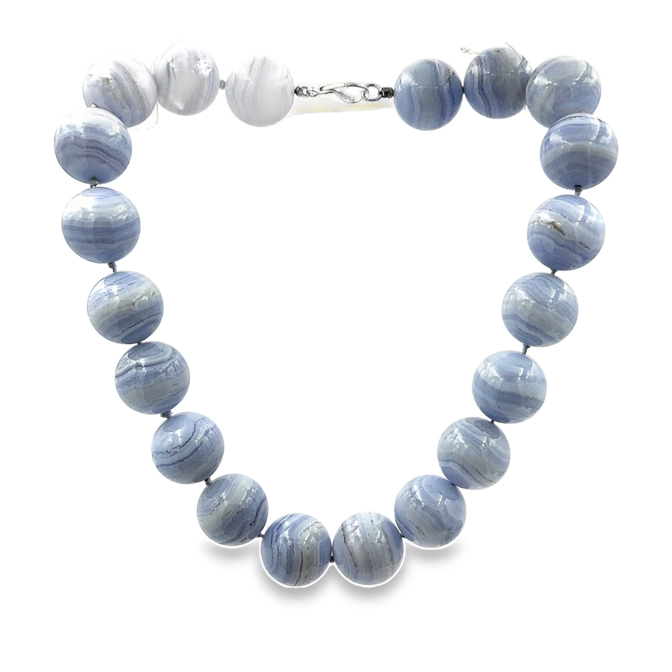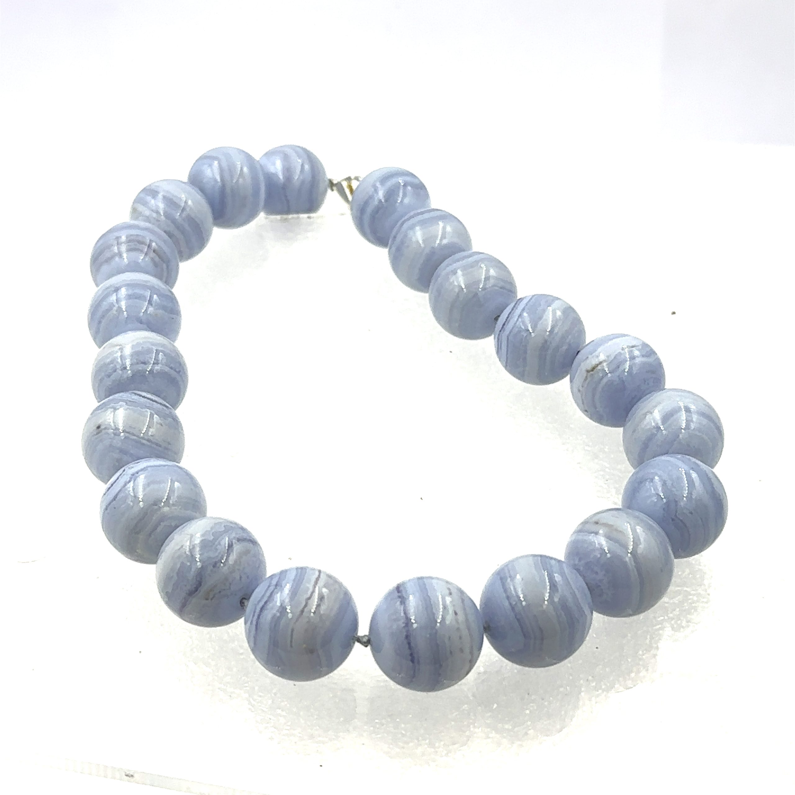 Estate Blue Lace Agate Bead Necklace; sterling silver clasp; 20 beads measuring 20mm in width; 18". This necklace was made in the Paloma Picasso Style that she designed for Tiffany & Co.