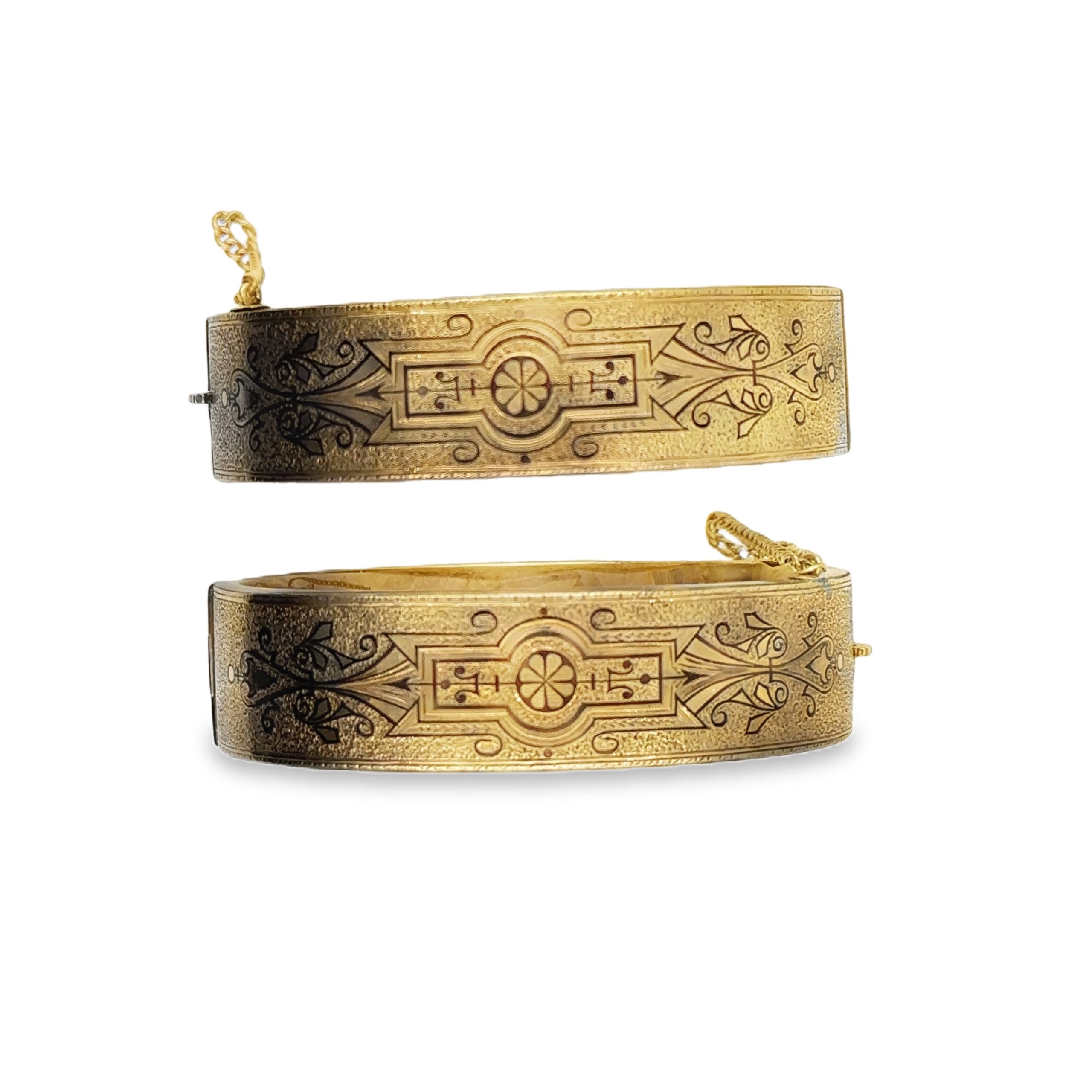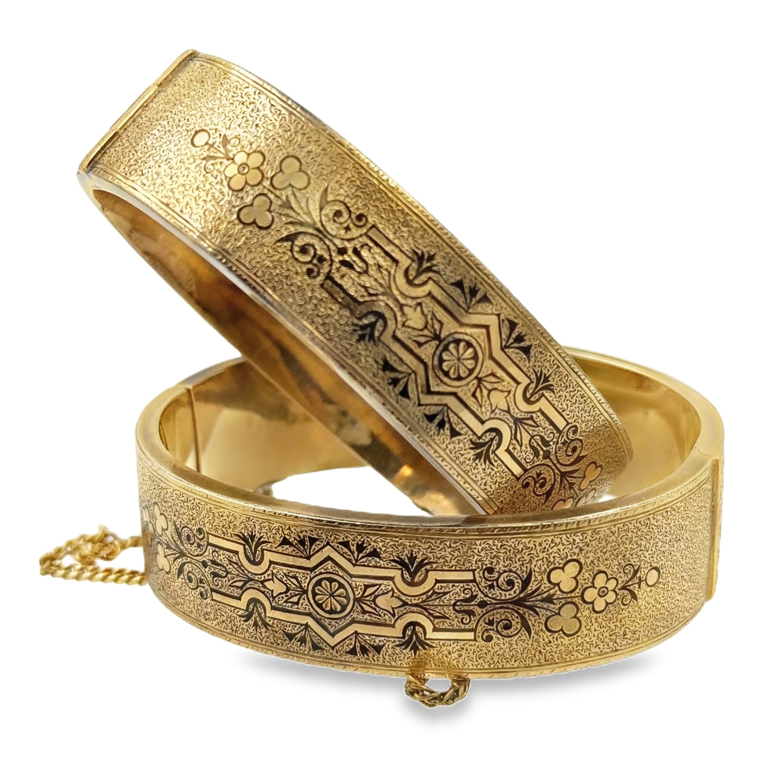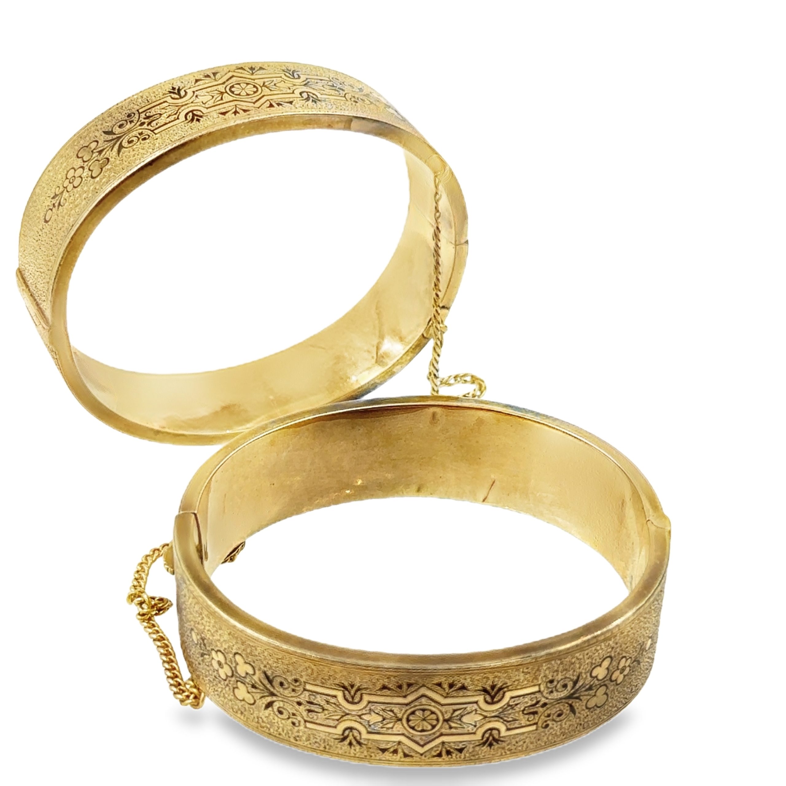 Estate Collection of (2) Victorian Yellow Gold and Enamel Wedding Bangles; 14k yellow gold; 34.10dwt; 6 3/4"