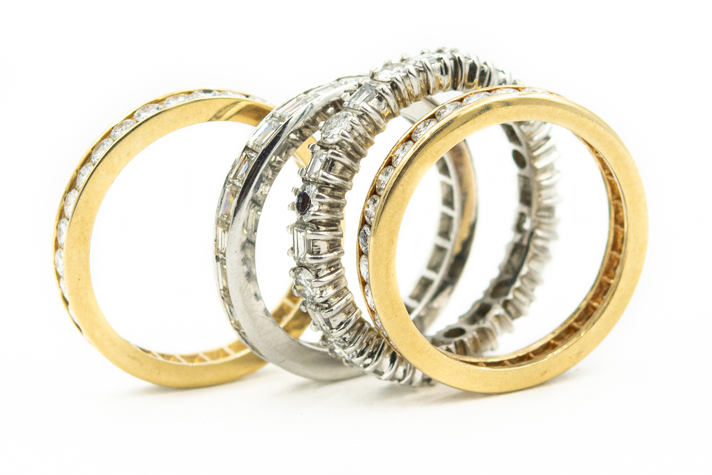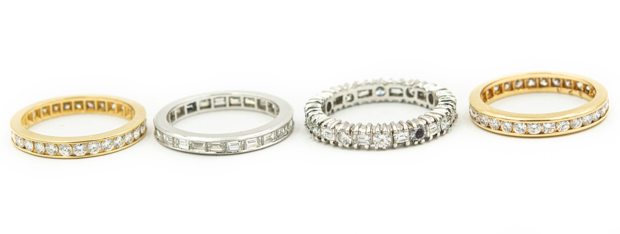 Estate Collection of (4) Diamond Eternity Rings; 7.30dwt/11.30g; 107 diamonds 3.75cts; Ring Size 5 1/6 - 6 D.C.