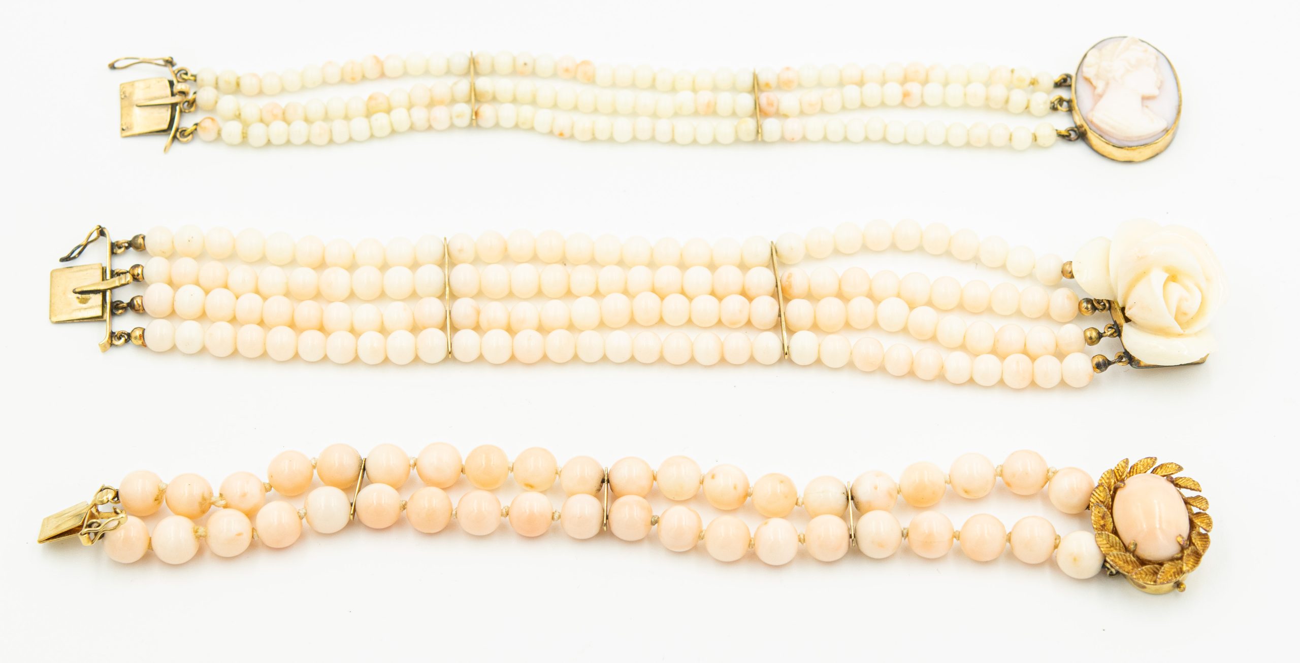 Estate Collection of (7) Yellow Gold and Beaded Coral Bracelet and Necklace Suite