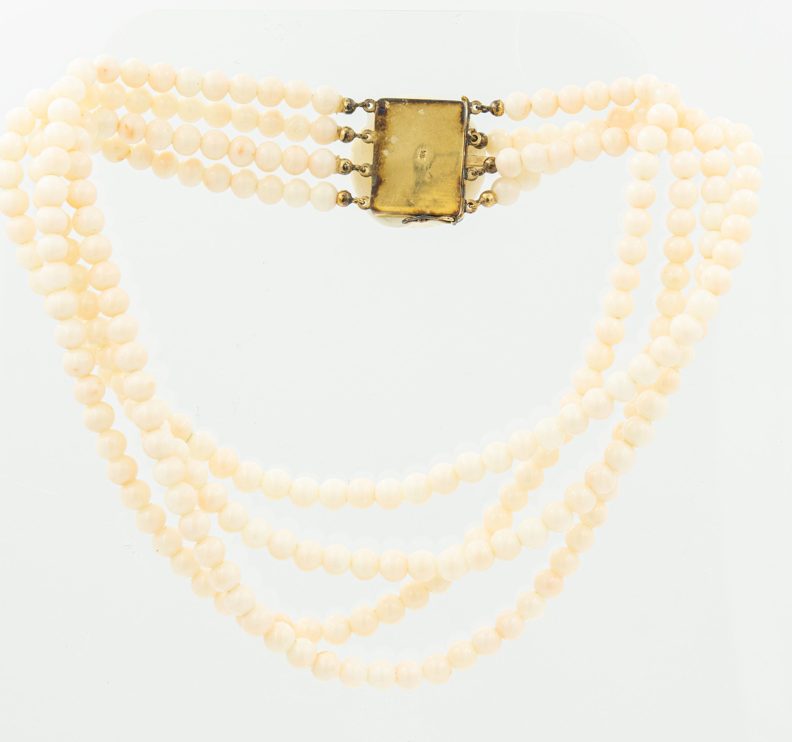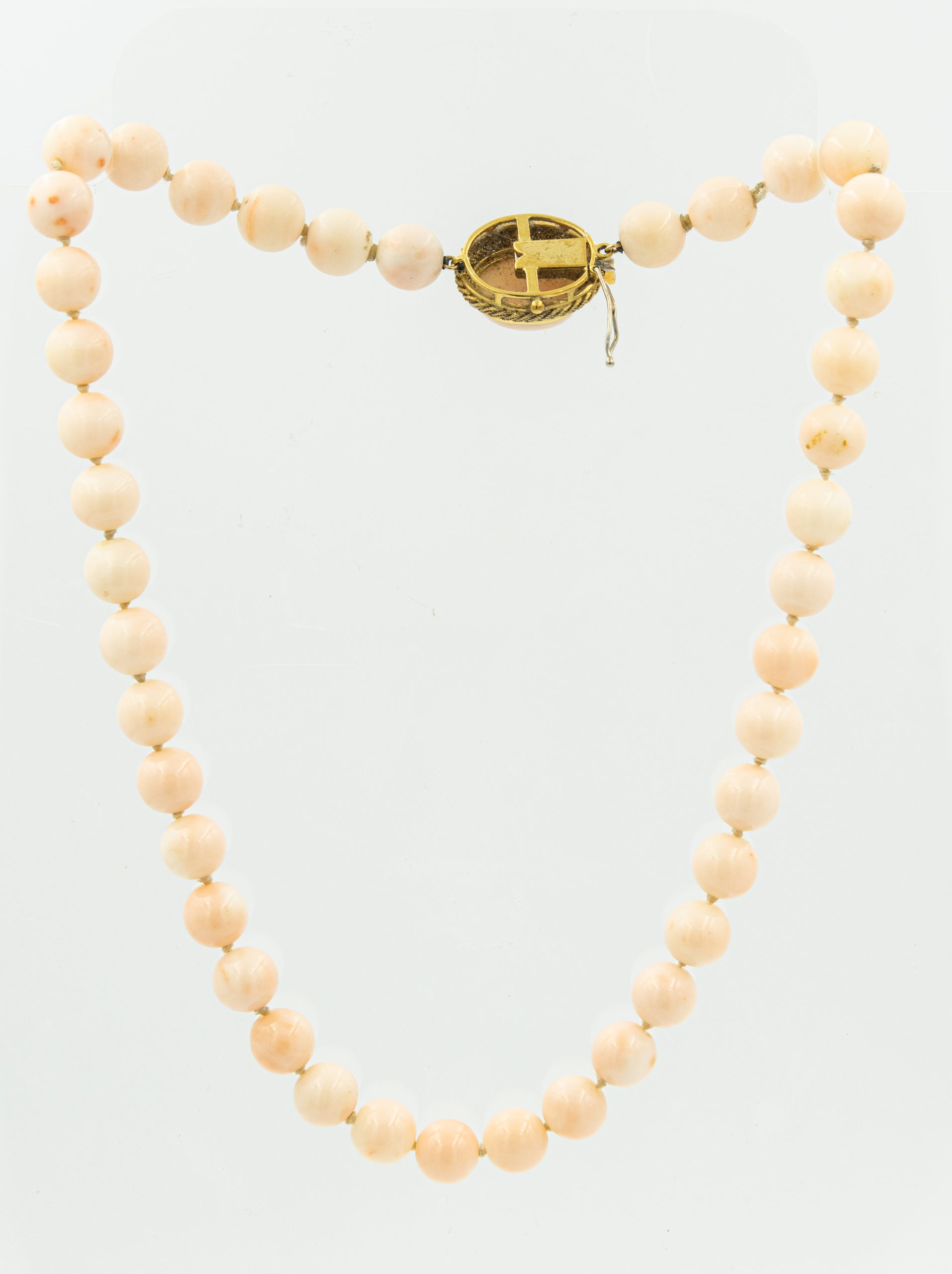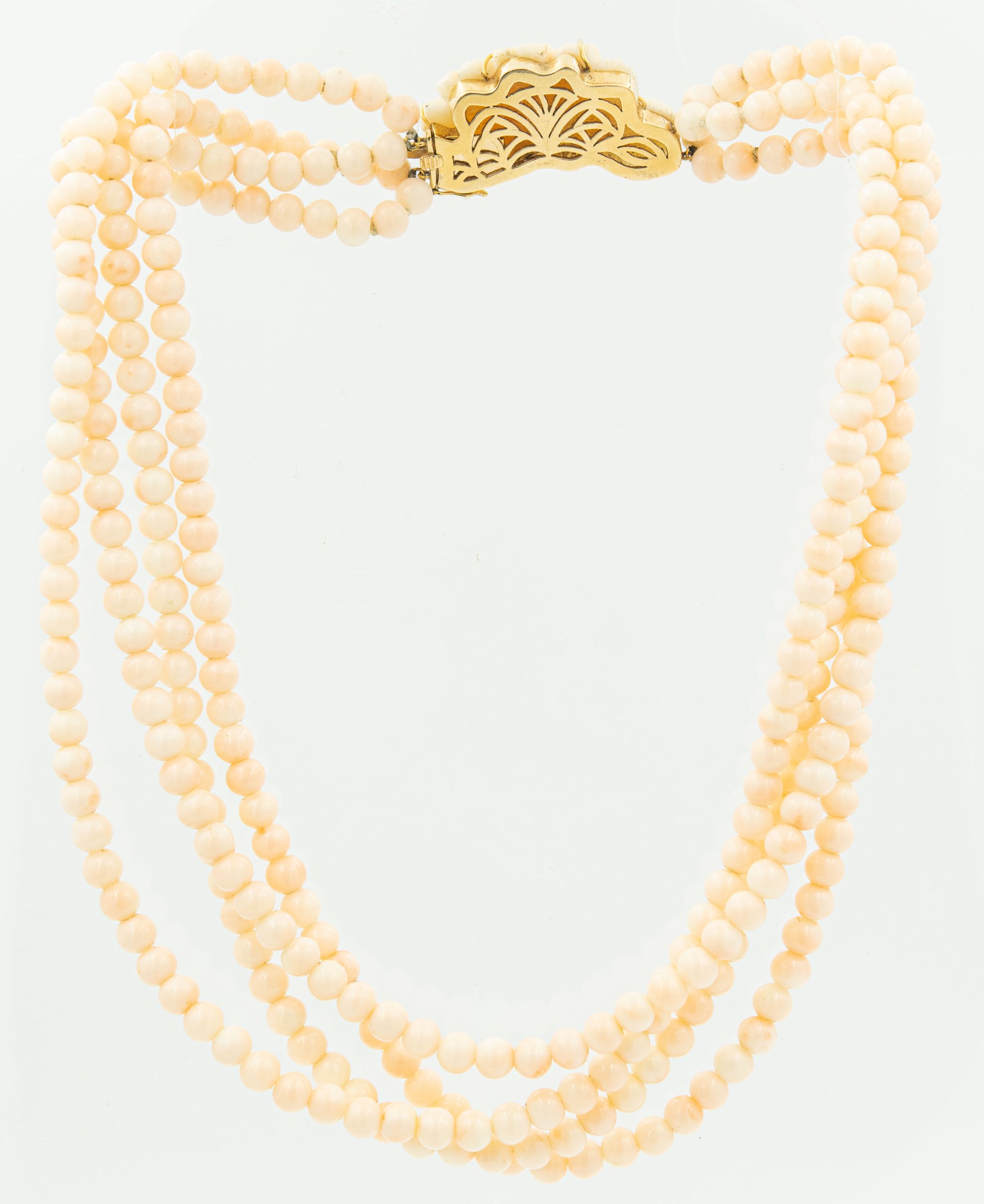 Estate Collection of (6) Yellow Gold and Beaded Coral Bracelet and Necklace Suite. The suite features 4 necklaces and 3 matching bracelets. The suite weighs 277.50dwt/444.4g/14.30Ozt. They all terminate with 14k yellow gold clasps.