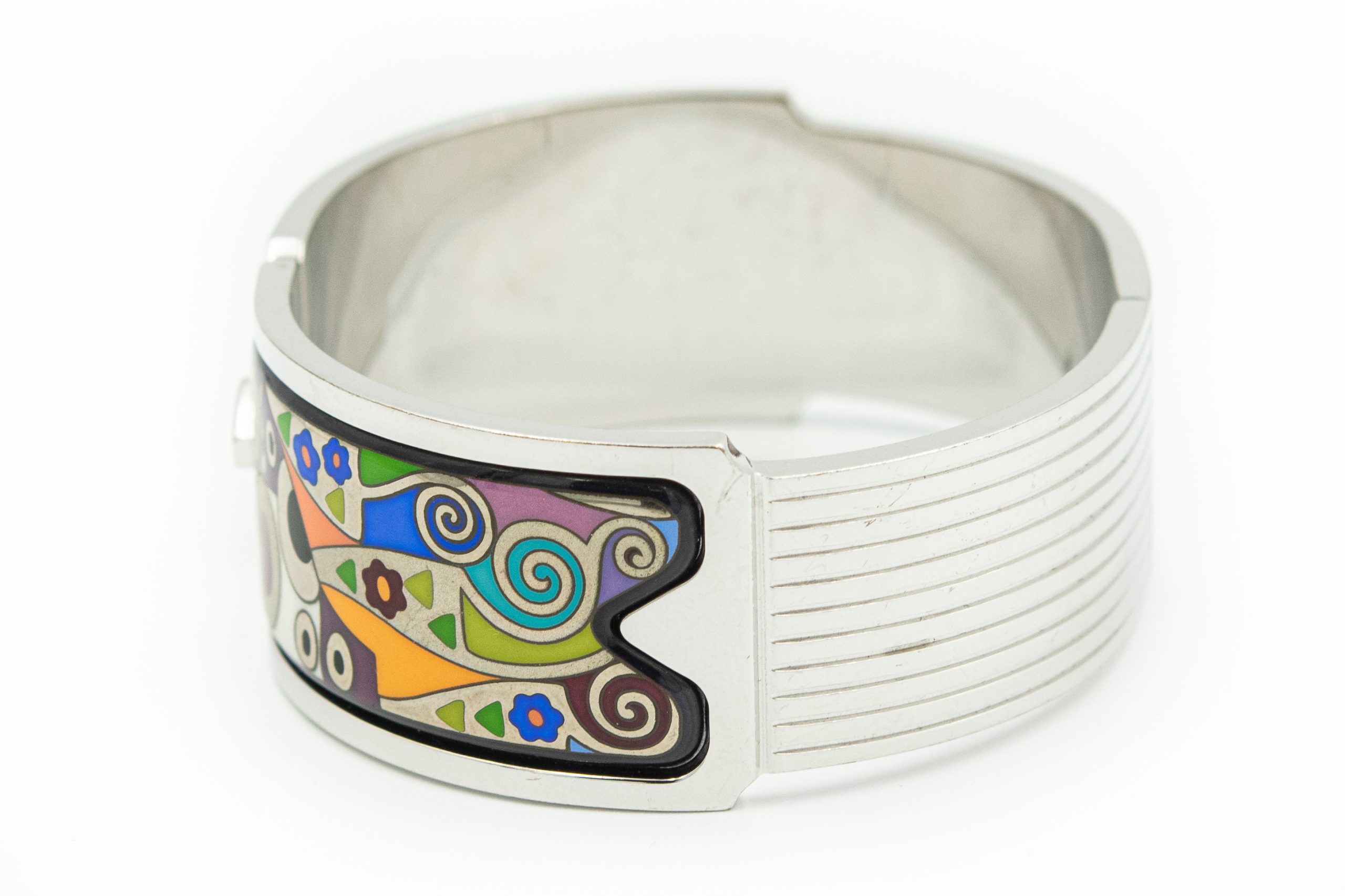 Estate Contemporary Sterling Silver and Enamel Bangle Bracelet by Frey Wille; sterling silver; Retail $1450