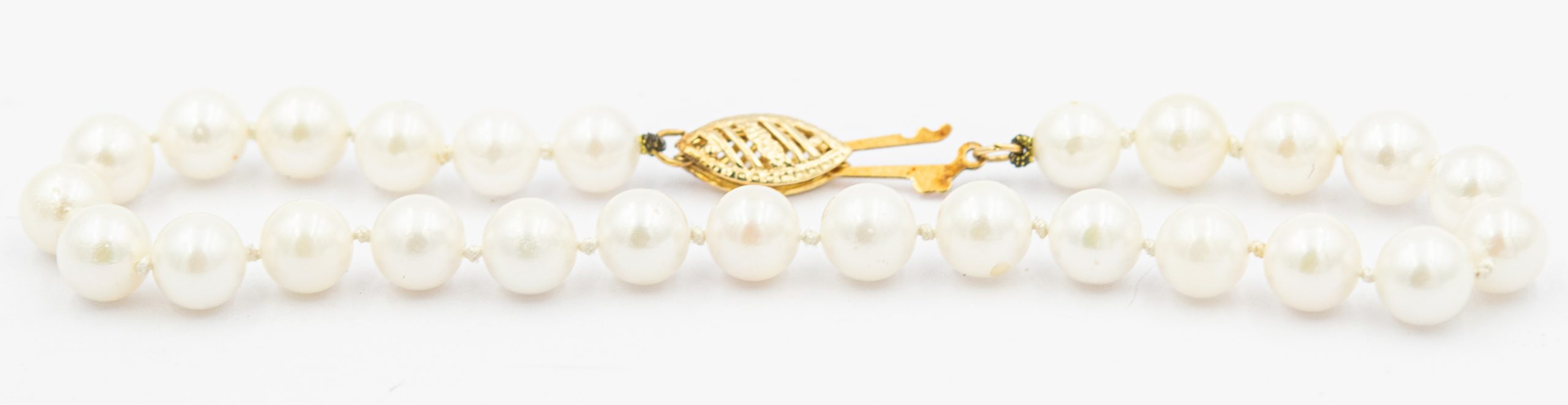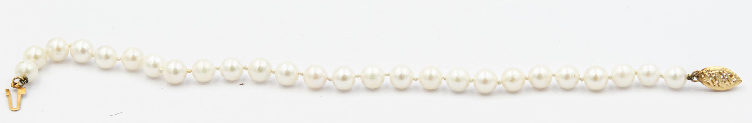 Estate Cultured Pearl Bracelet; 14k gold clasp; 7.6g; 26 pearls 5.85mm; 7 1/2"