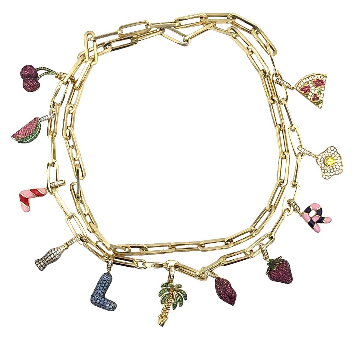 Estate Designer Gold, Diamond and Gemstone (11) Charm Necklace by Khai Khai