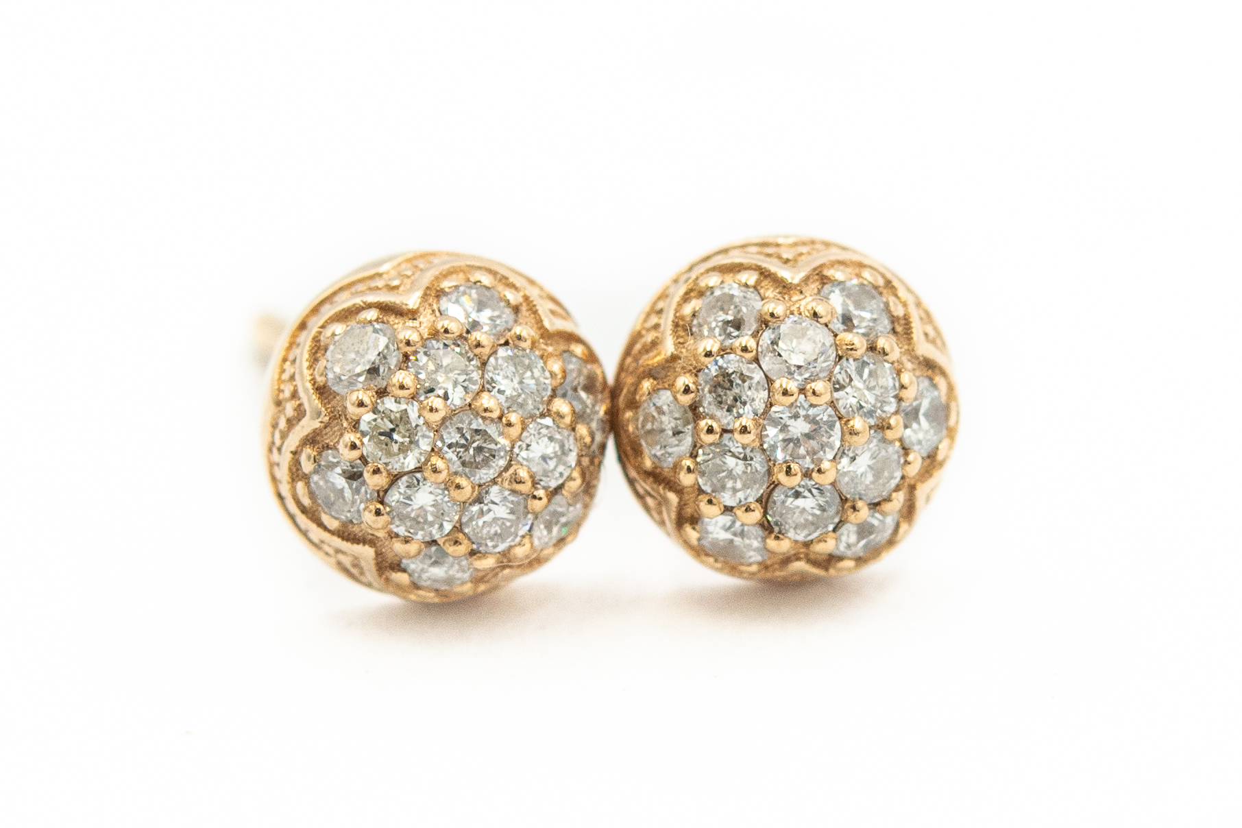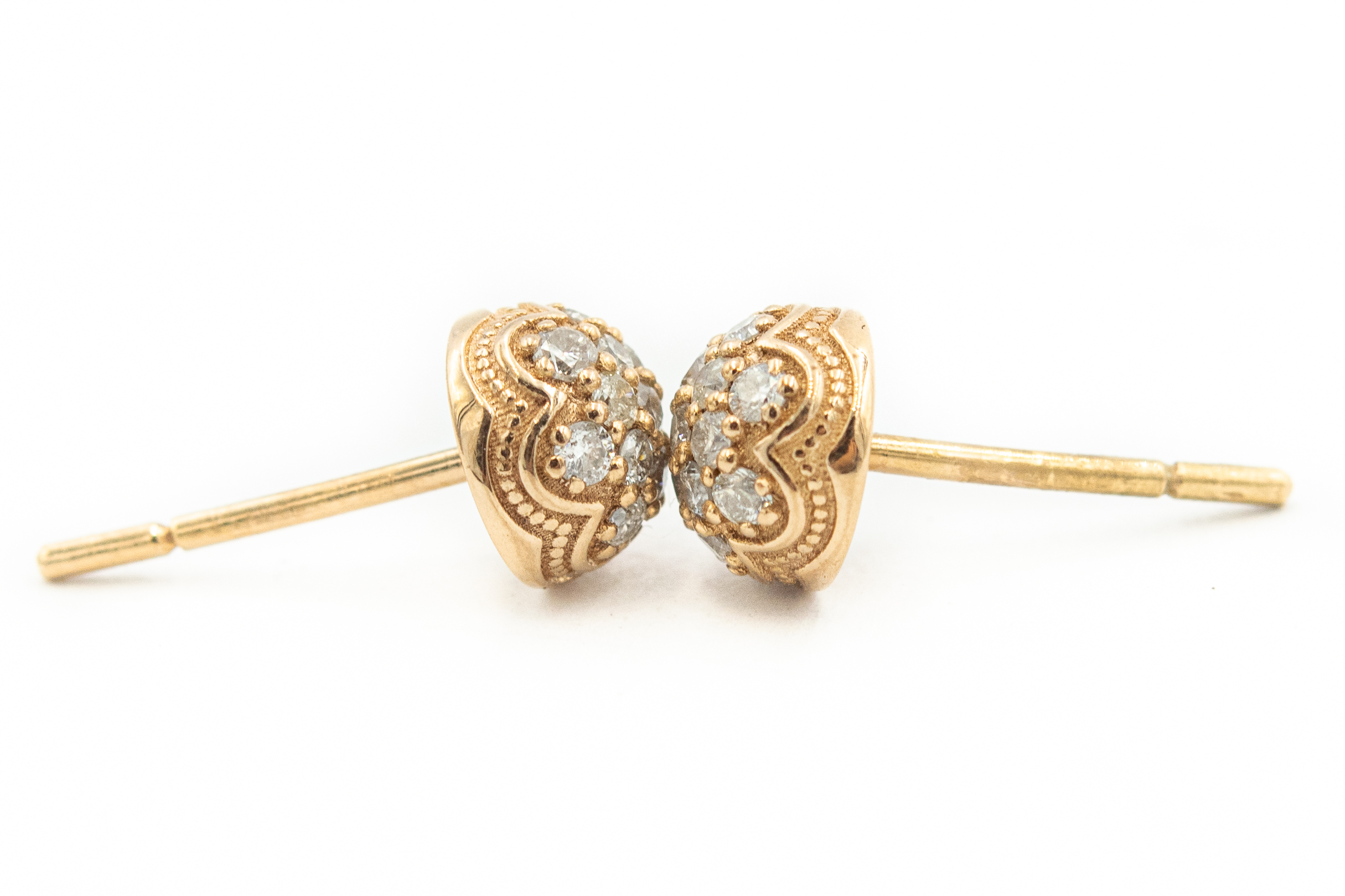 Estate Designer Sonoma Mist Earrings By Tacori featuring a classic diamond pave domed design in deep rose gold Retail $2,850.