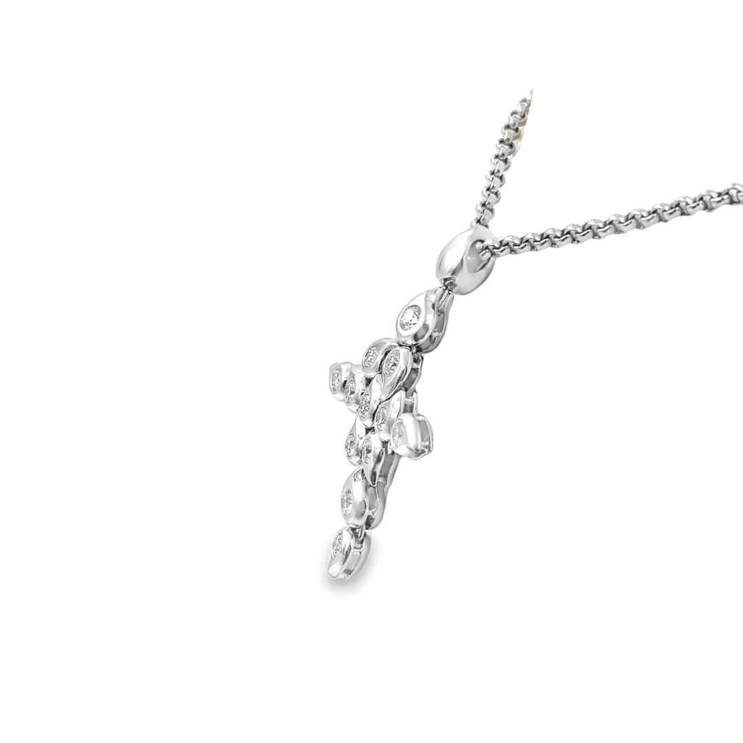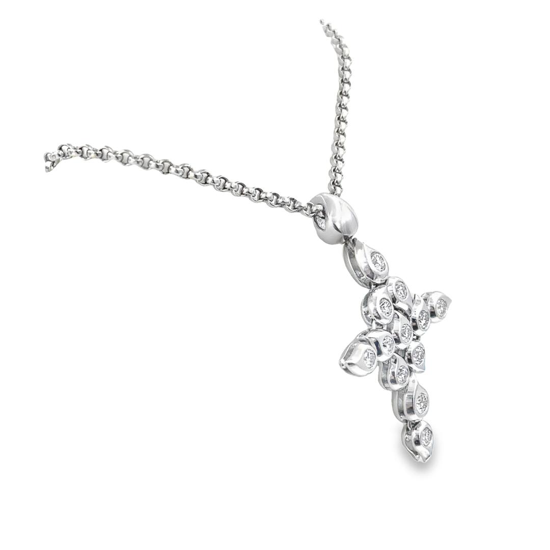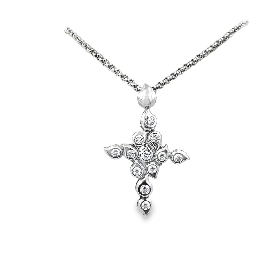 Estate Designer White Gold and Diamond Paisley Cross Pendant with Chain Signed TC; 18k white gold; 37.40dwt/58.20g; bezel set with 12 round diamonds 2.05cts; 35"
