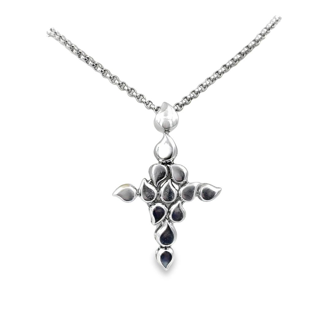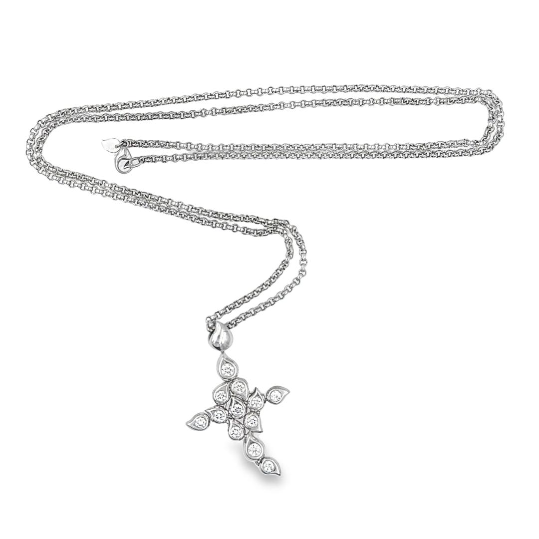 Estate Designer White Gold and Diamond Paisley Cross Pendant with Chain Signed TC