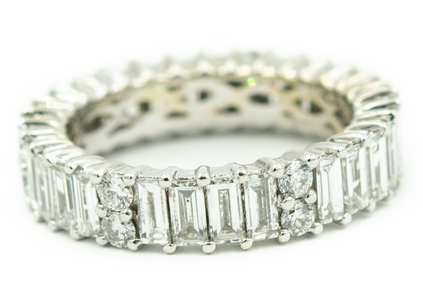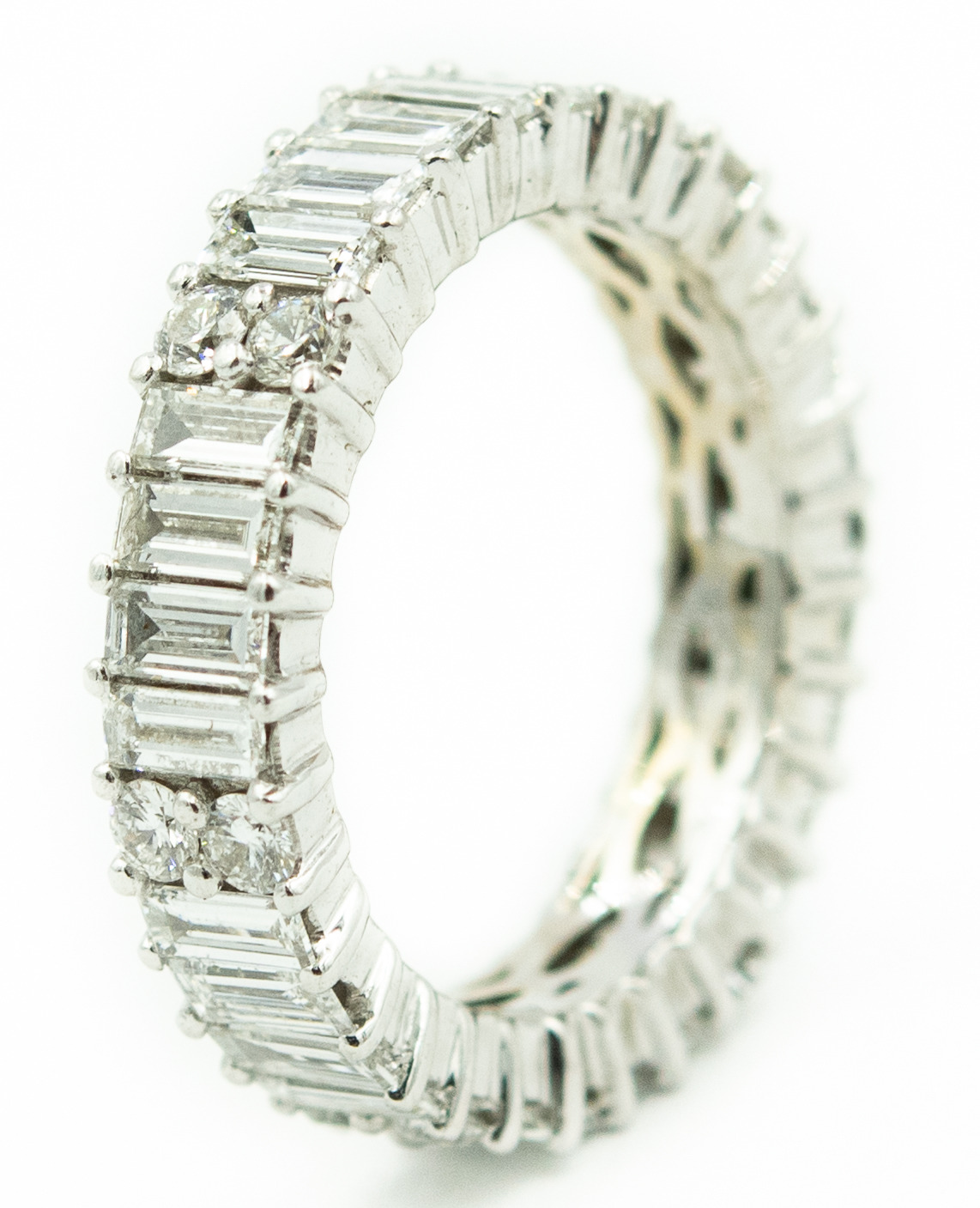 Estate Diamond Eternity Ring; 3.00dwt/4.66g; 24 baguette and 12 round brilliant cut diamonds 3.00cts; Ring Size 5 1/4