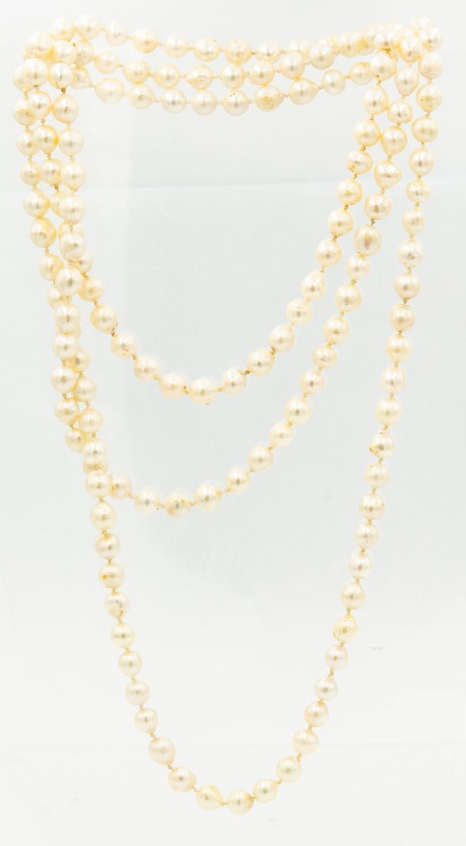 Estate Endless Pearl Necklace; 44.0dwt/68.42g; 193 pearls 6.0mm-6.37mm; 52"
