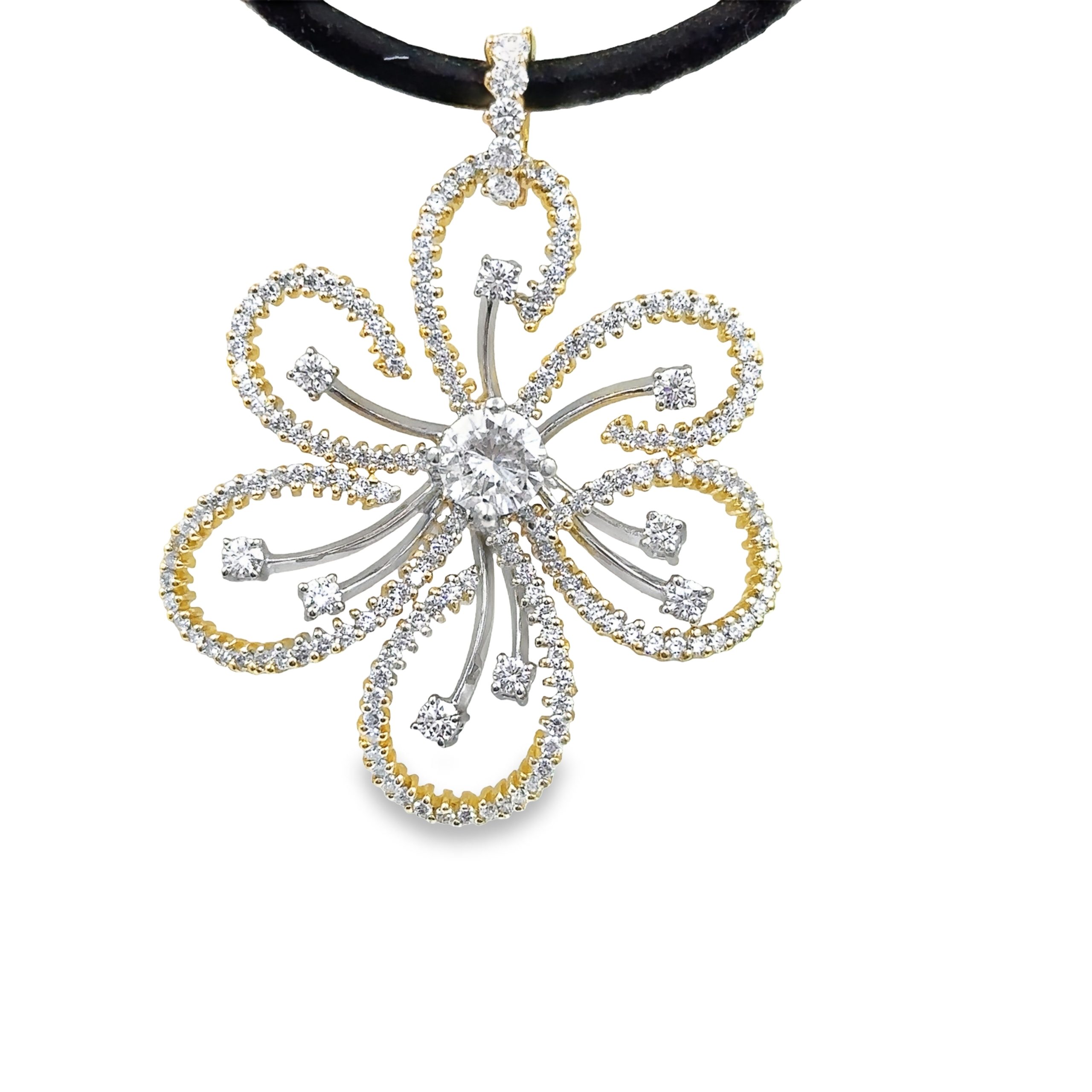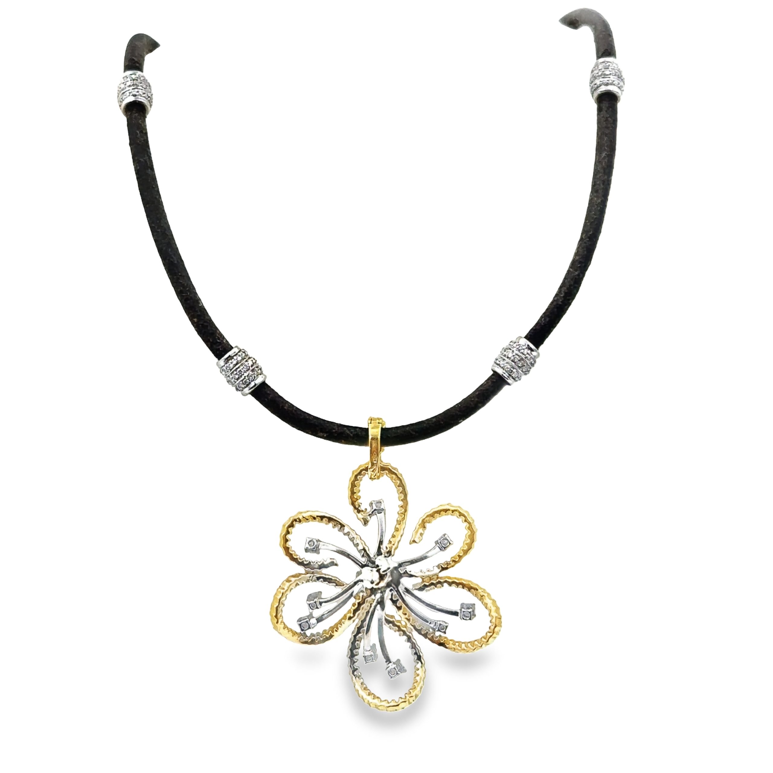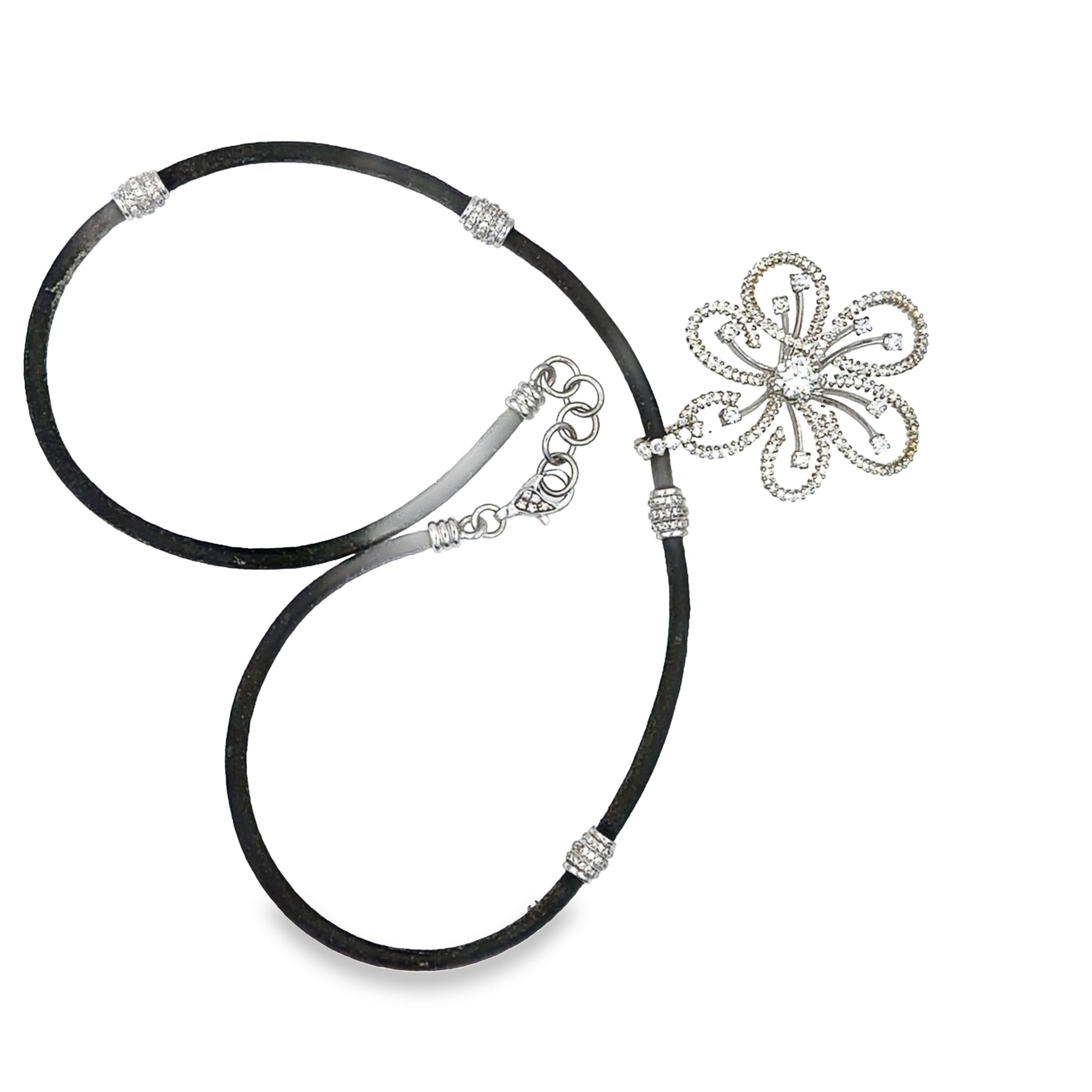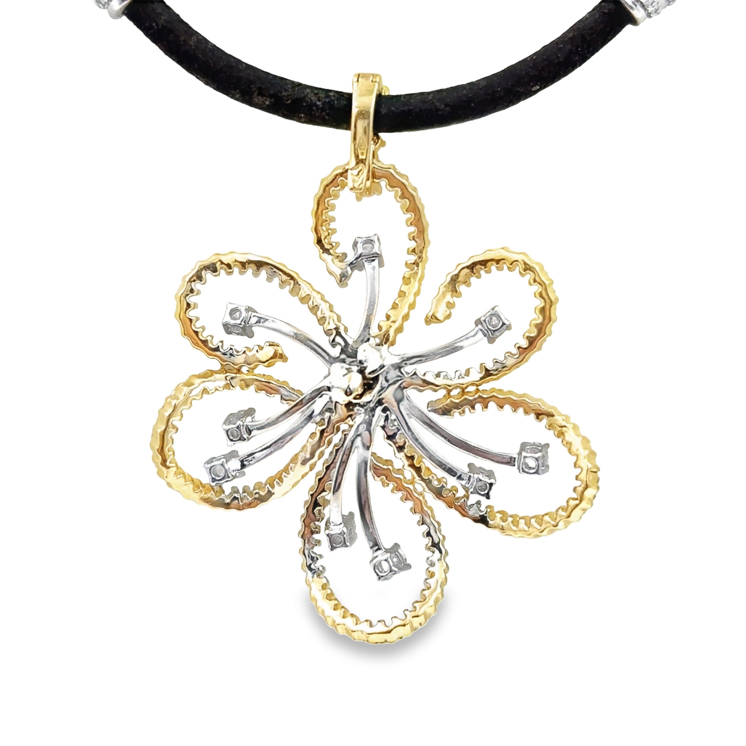 Estate Gold and Diamond Floral Necklace; 18k gold; 8.90dwt/13.0g; 1 diamond 1.01cts; 176 diamonds 1.50cts; 250 diamonds 1.00cts; Total Diamond Weight 3.51cts; Black Choker Cord 19"