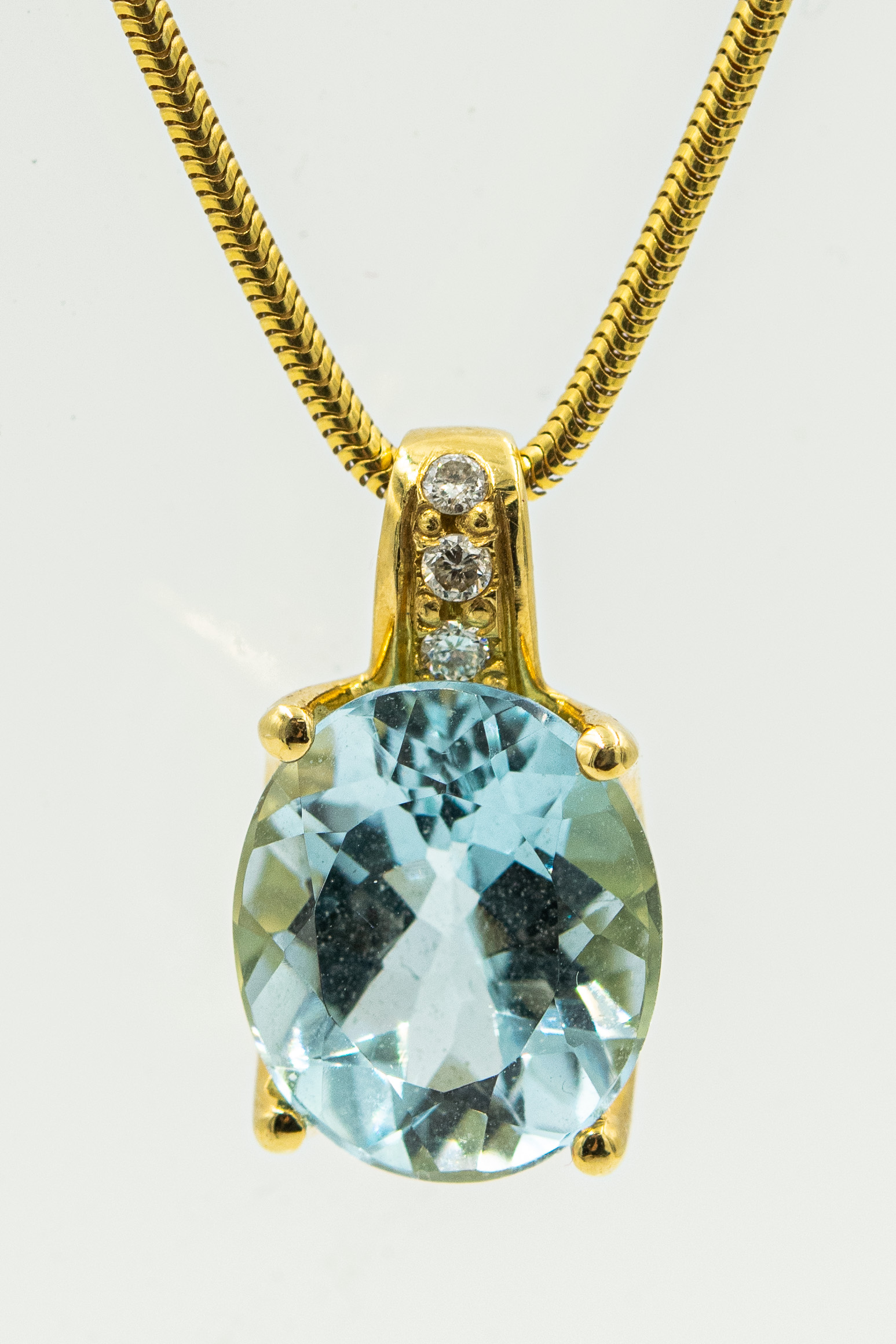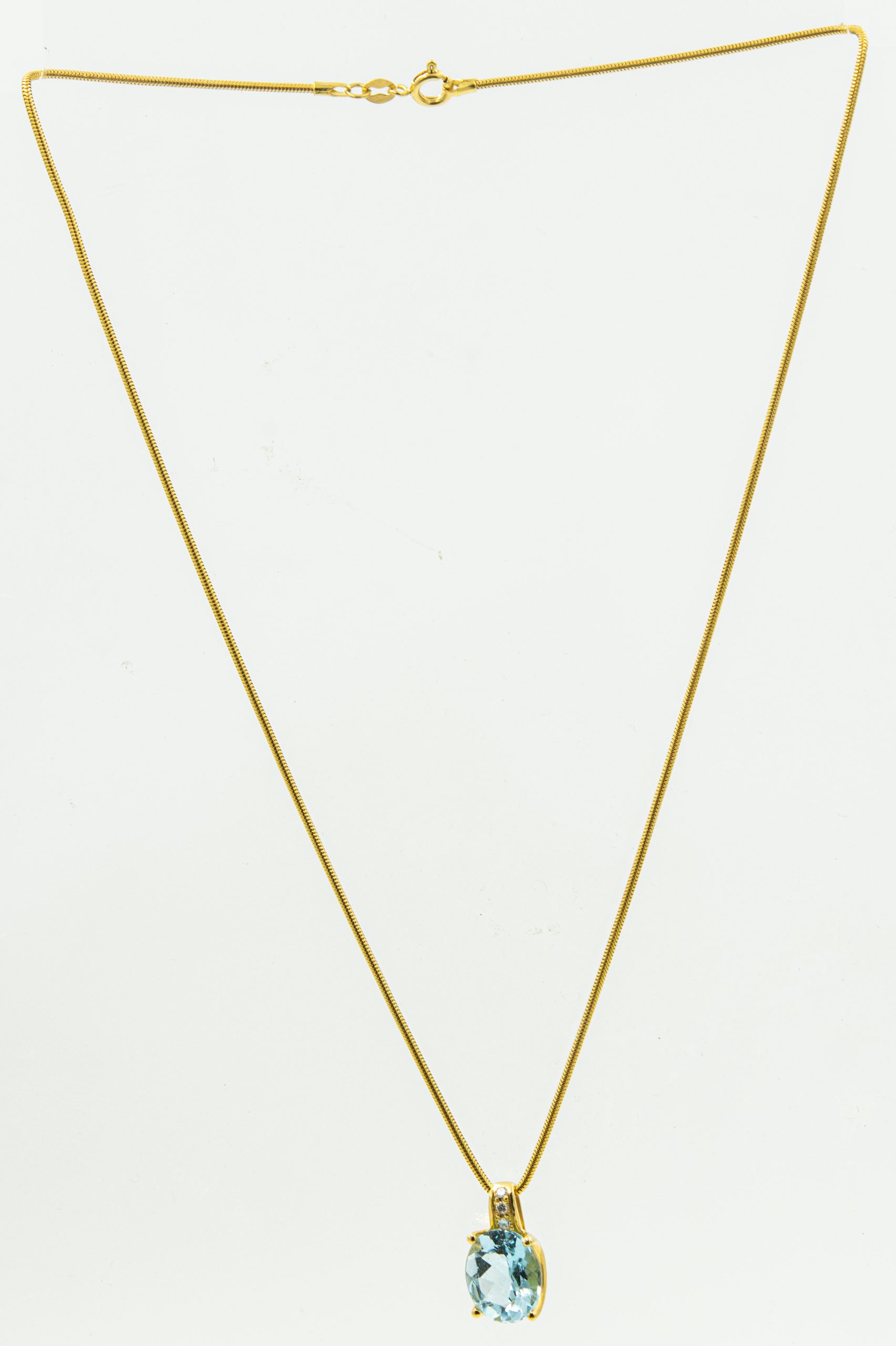 Estate Gold Diamond and Aquamarine Necklace; 18k gold; 5.20dwt/8.10g; aquamarine 4.50cts; 3 diamonds 0.07cts; 16"