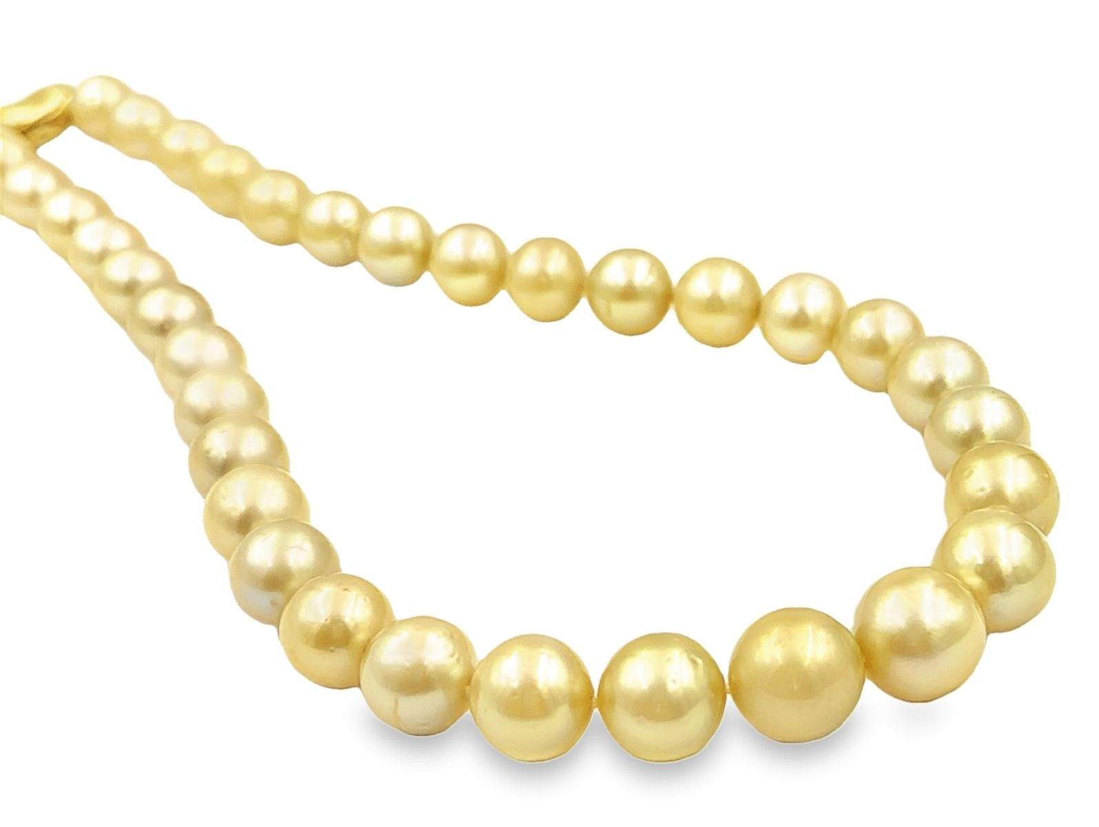 Estate Golden Pearl Necklace; 35 graduating pearls 11.0mm-14.25mm; silver/gold plated kidney clasp; 18 1/4"