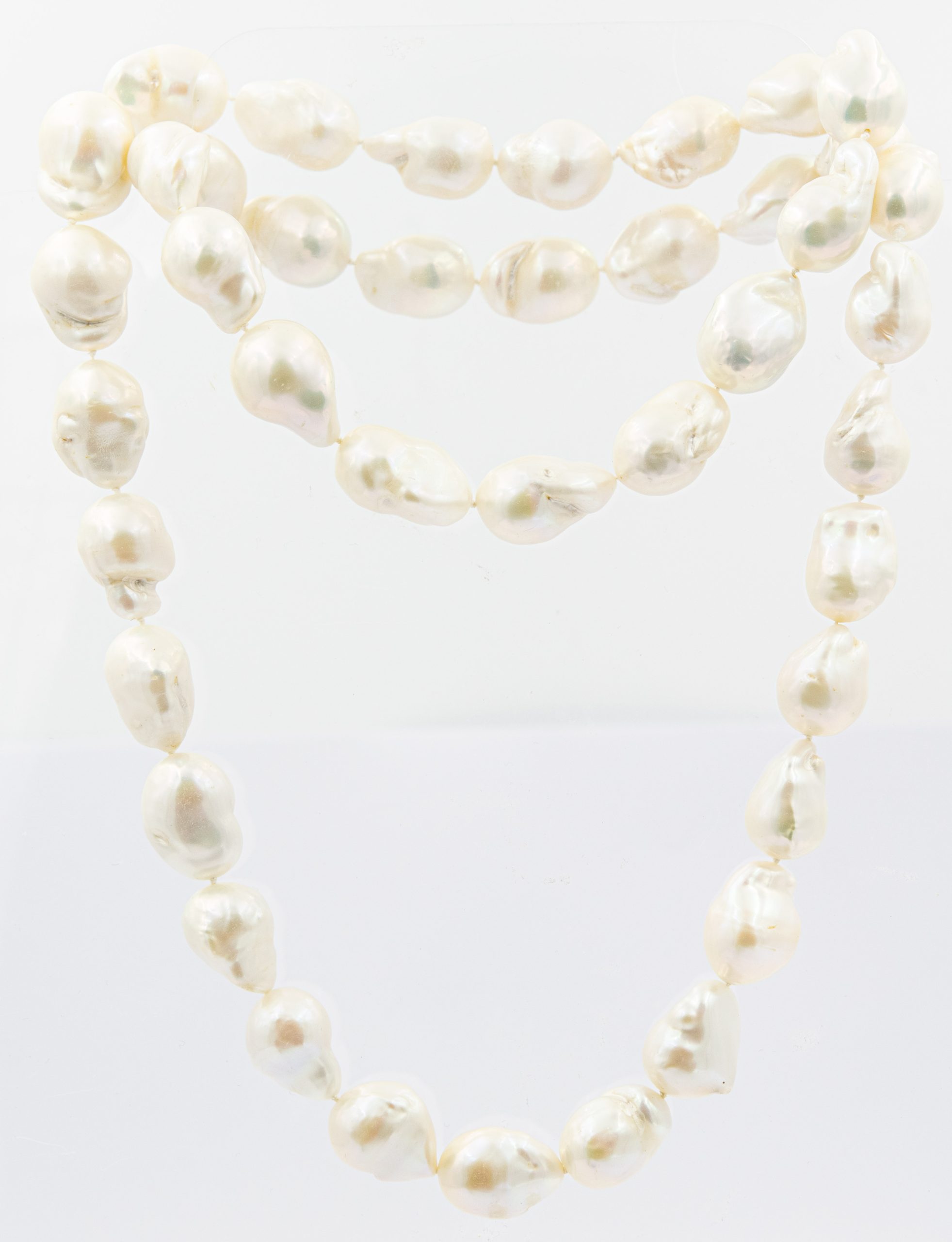 Estate Large Baroque South Sea Cultured Pearl Single Strand Necklace; 40 pearls 22.0mm x 15.0mm