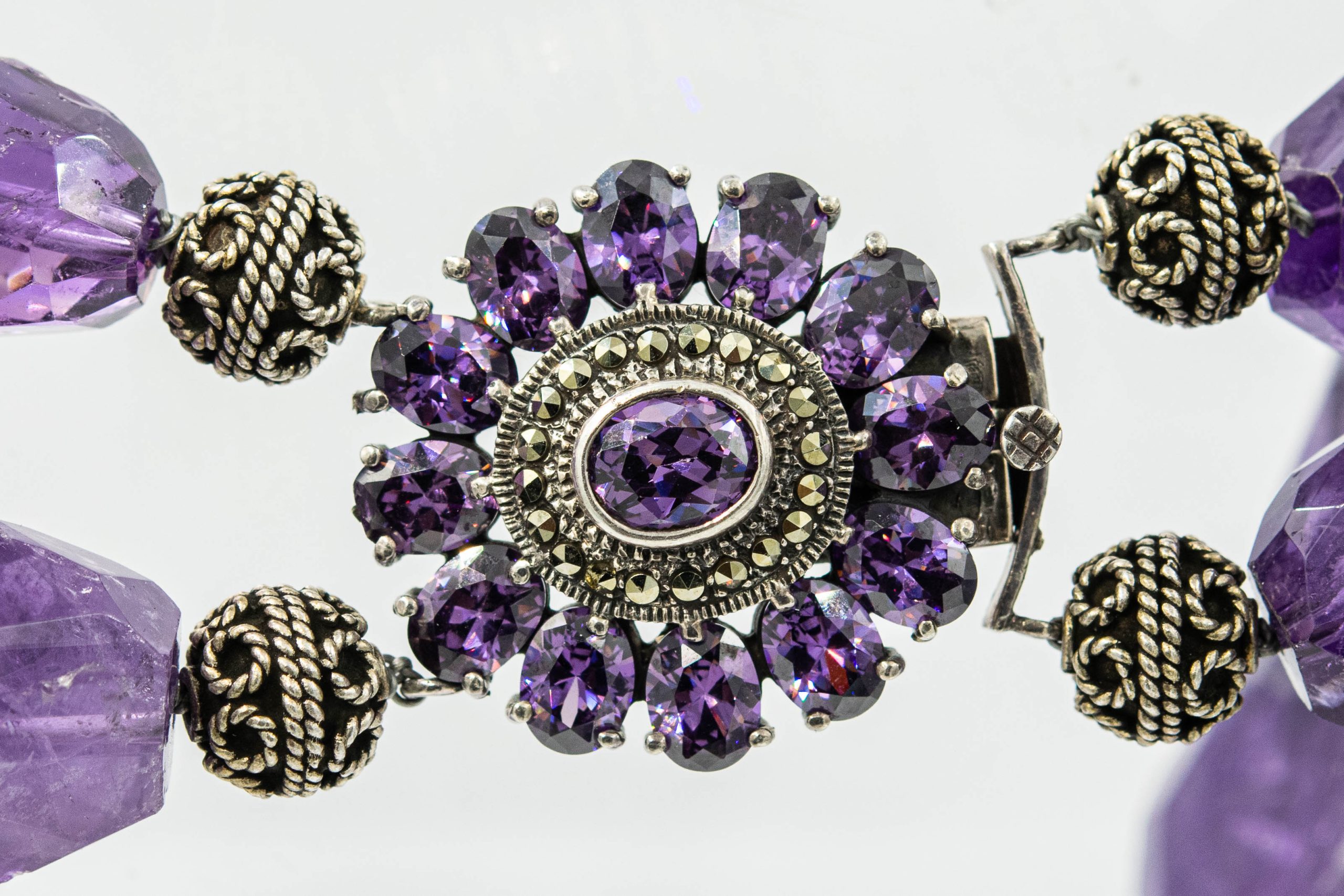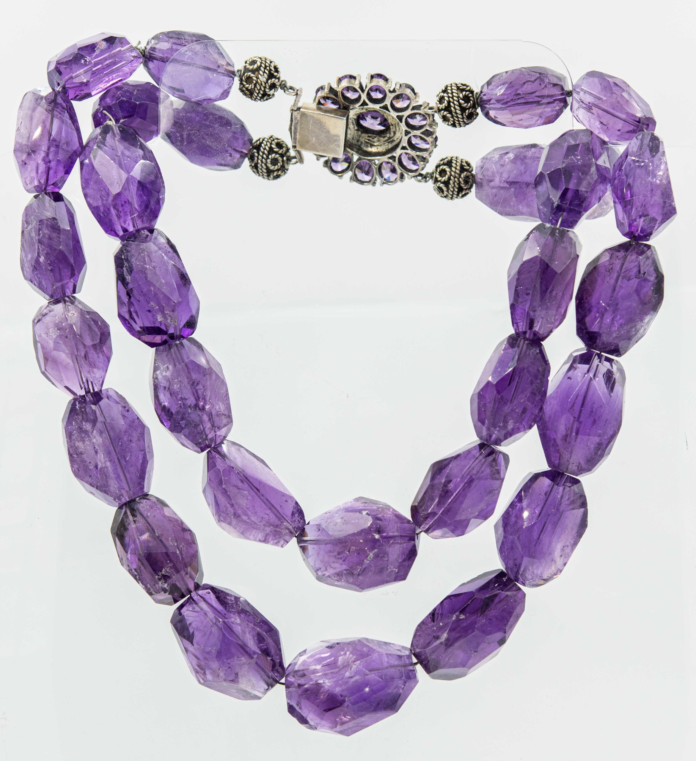 Estate Massive Faceted Amethyst Beaded Nugget Double Strand Necklace; sterling silver clasp; 13.0otz; 17"