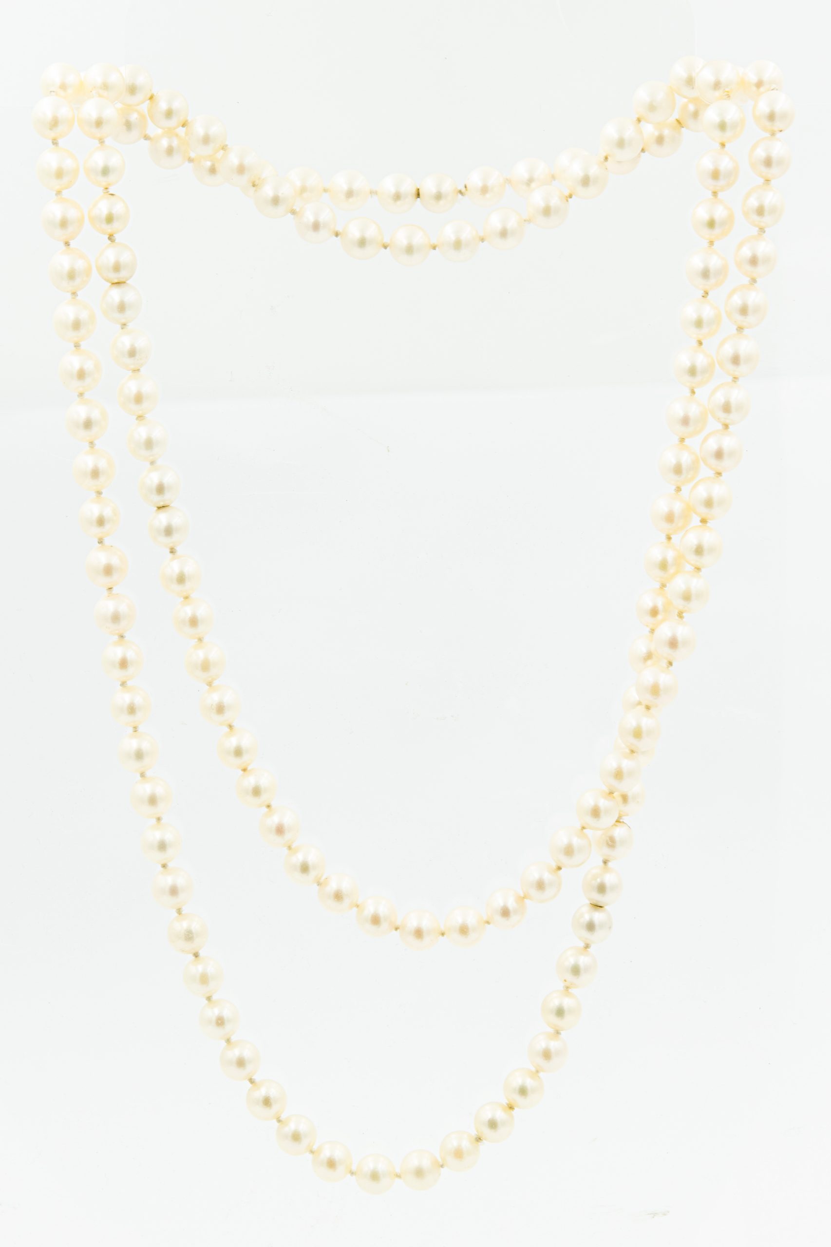 Estate Opera Length Cultured Pearl Necklace' 127 cultured pearls measuring 7.50mm - 8.00mm; 32"