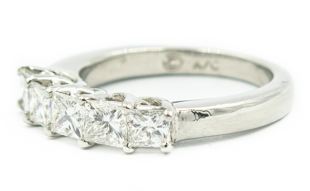 Estate Platinum and 5 Stone Diamond Ring; platinum; 4.00dwt/6.30g; 5 brilliant cut diamonds 1.65cts; Ring Size 5