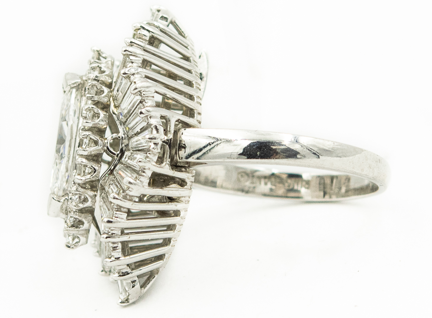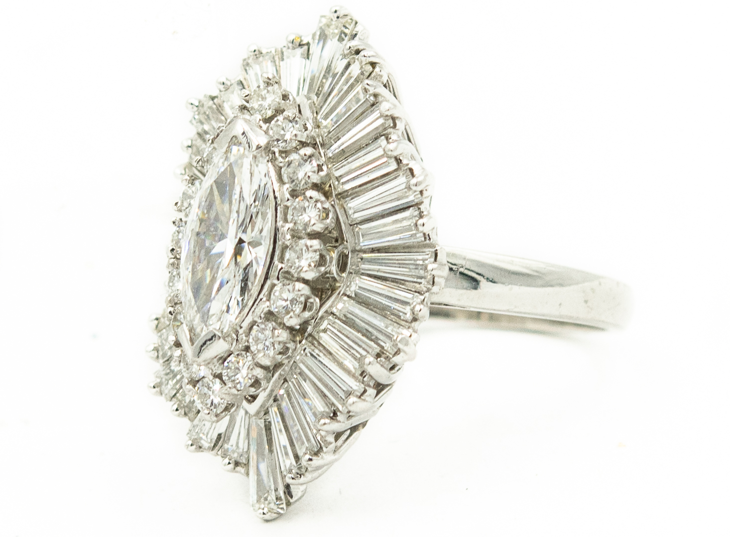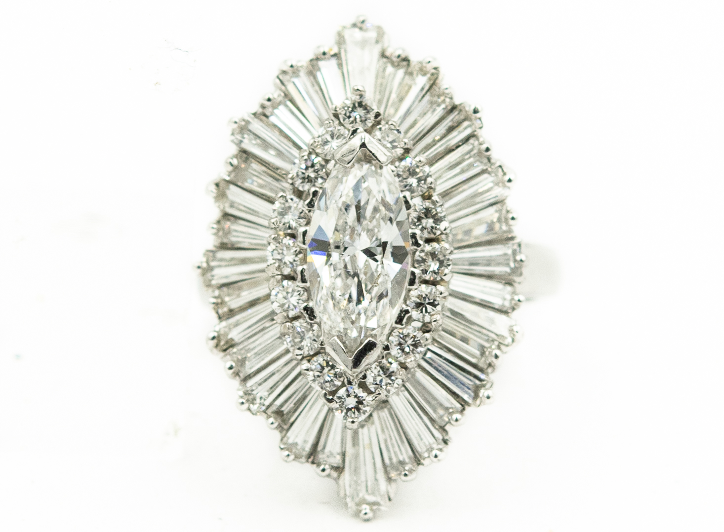 Estate Platinum and Diamond Ballerina Ring/Pendant; platinum; 9.10dwt/14.20g; center marquise 0.97cts; 48 diamonds 3.06cts; Ring Size 6 1/4 D.C.