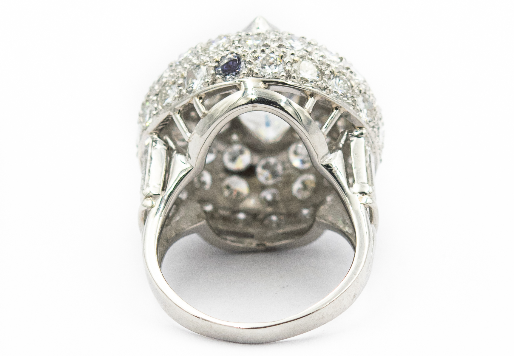 Estate Platinum and Diamond Bon Bon Ring (CZ Center); platinum; 7.20dwt; 60 round brilliant cut diamonds 6.00cts; Ring Size