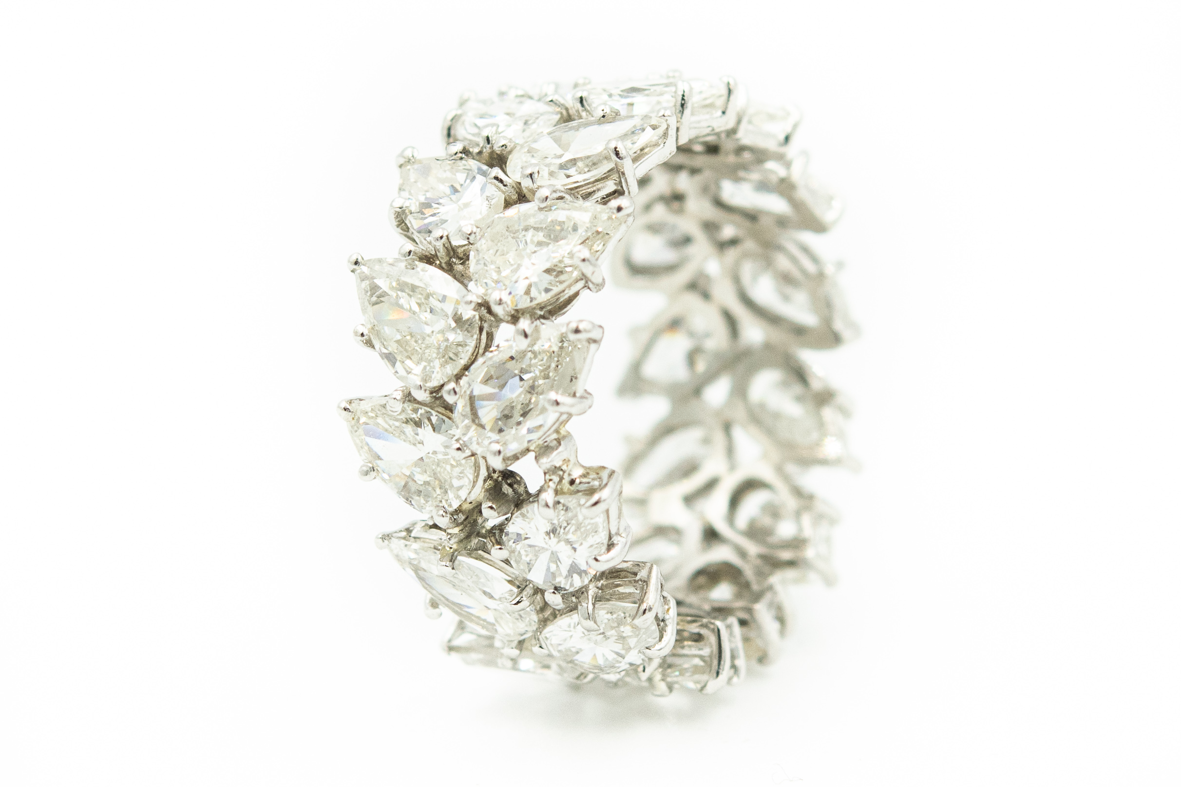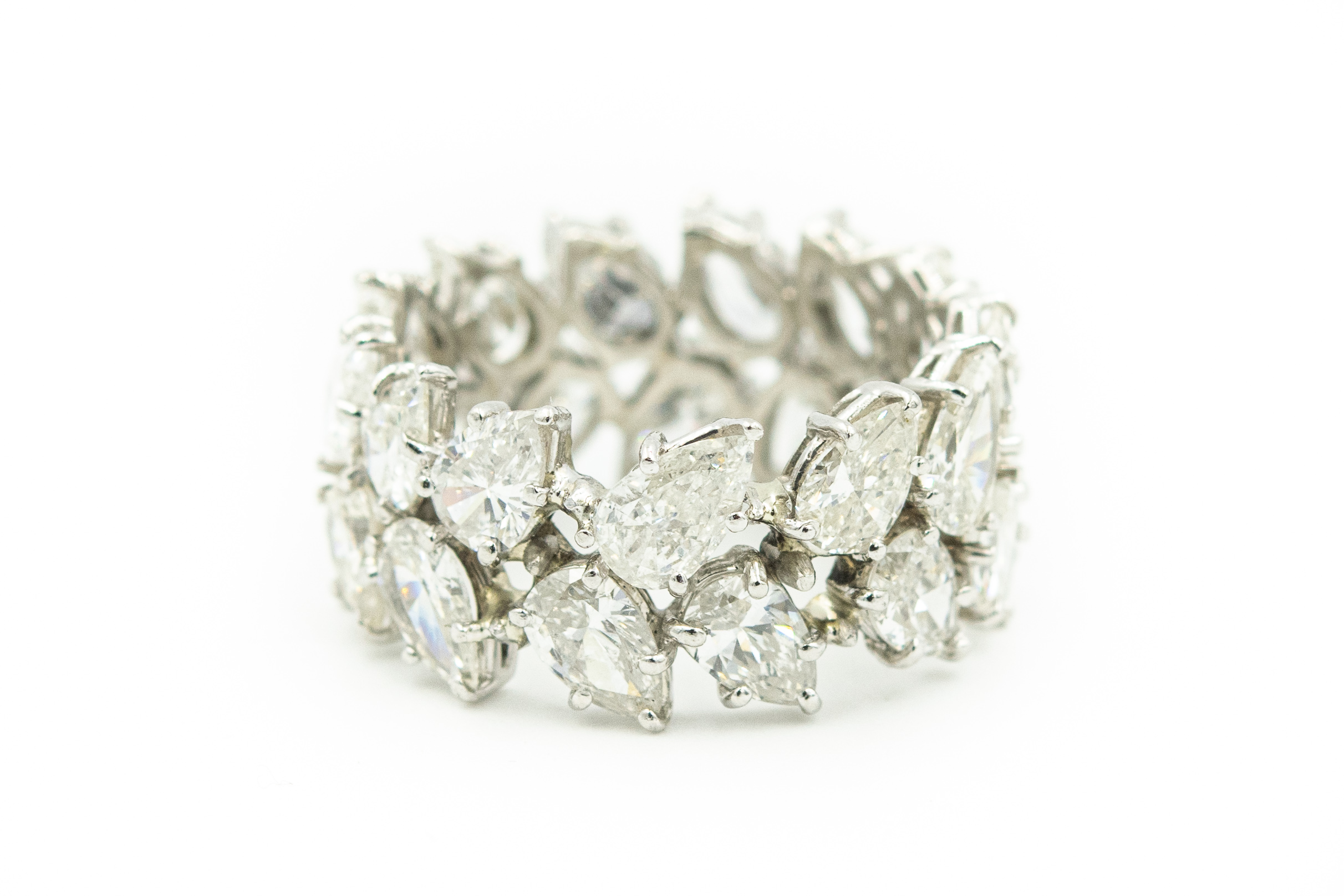 Estate Platinum and Diamond Double Row Eternity Ring 8.00cts; platinum; 4.60dwt/7.20g; 26 prong set pear shape diamonds 8.00cts; Ring Size 7 1/2