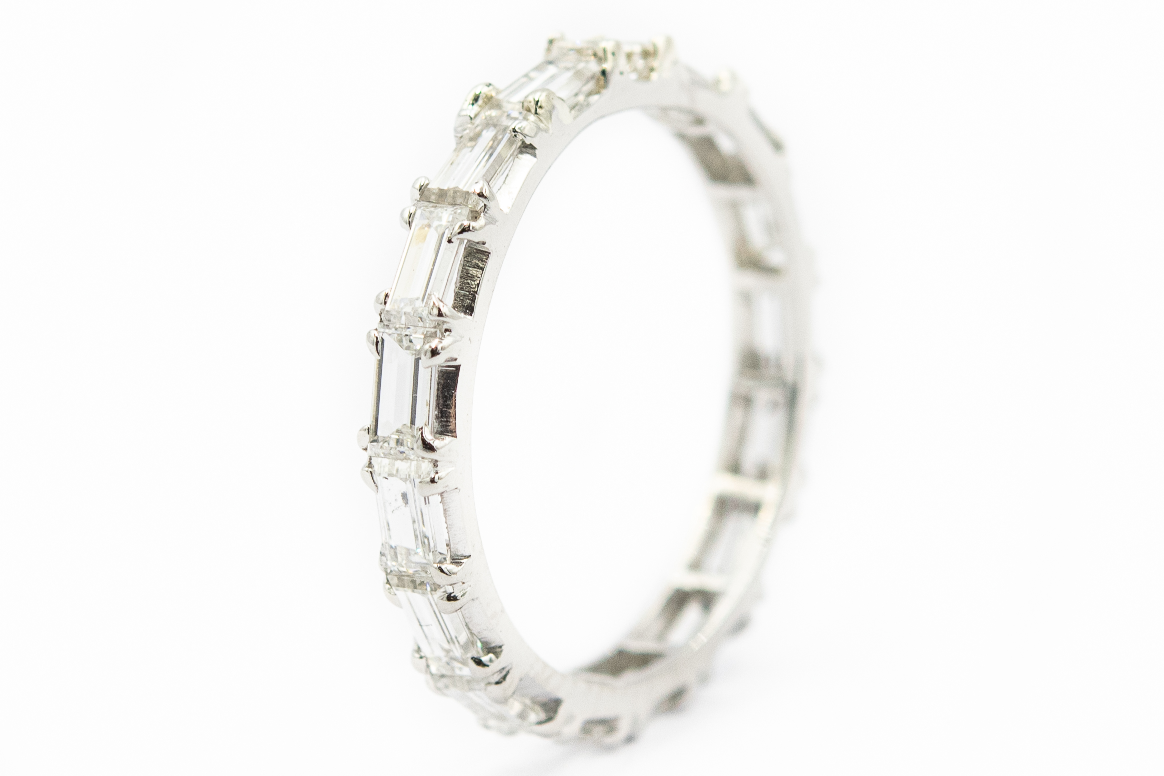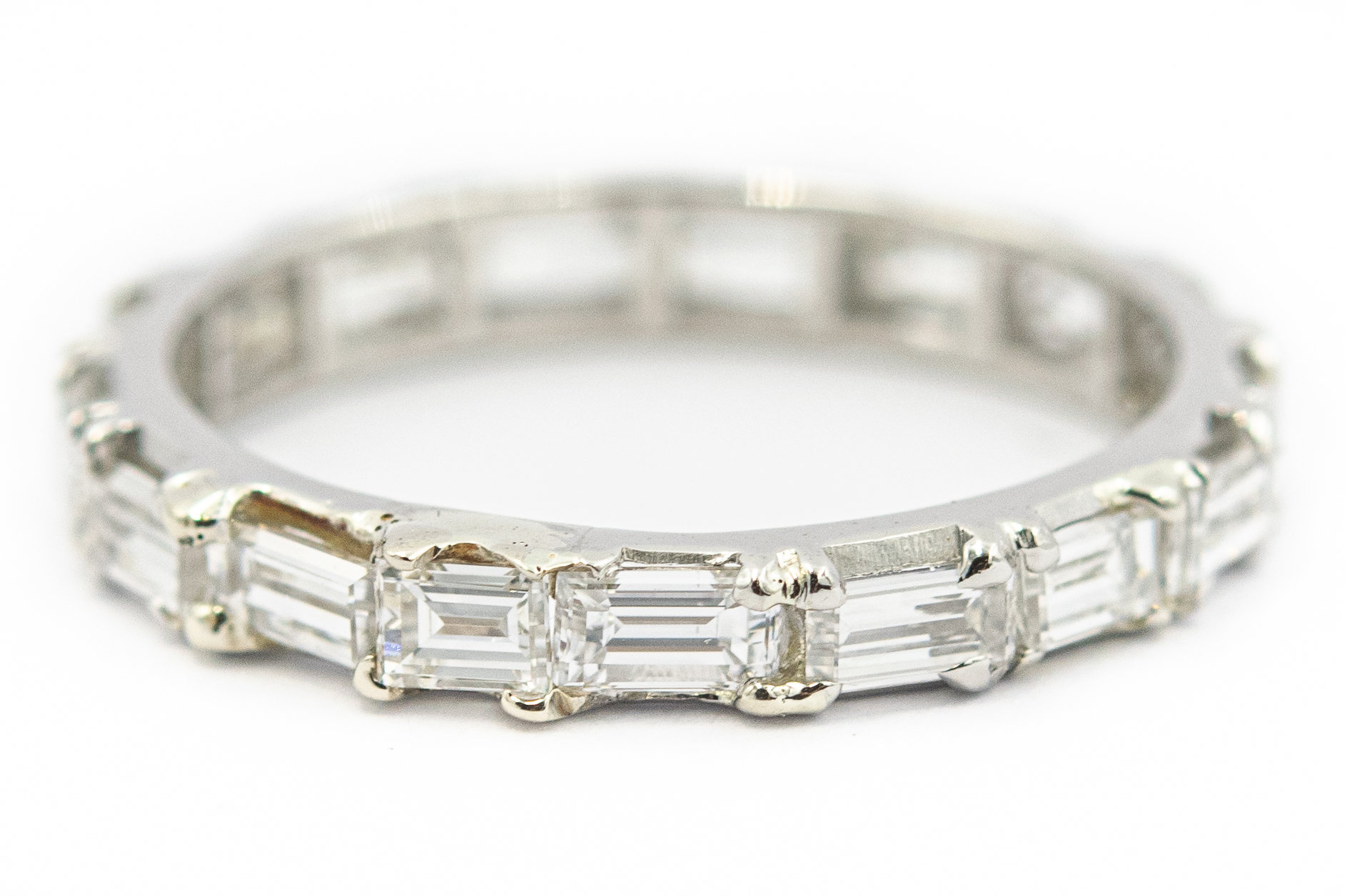 Estate Platinum and Diamond Eternity Ring; platinum; 1.60dwt/2.40g; 17 diamonds 0.75cts; Ring Size 6 1/4