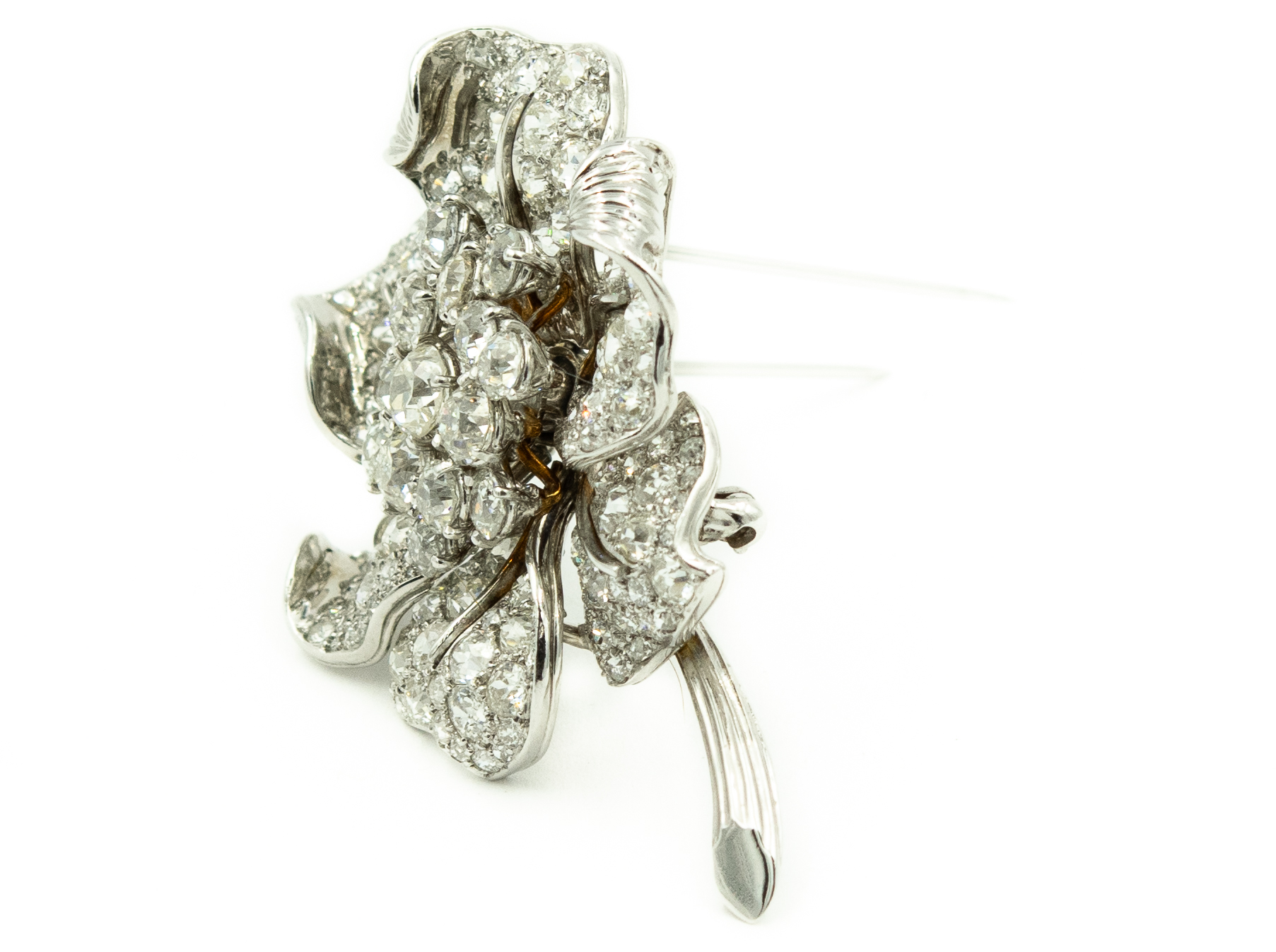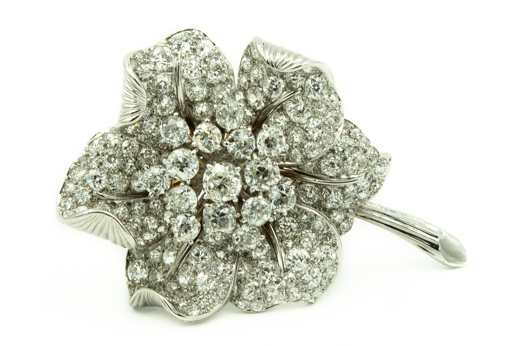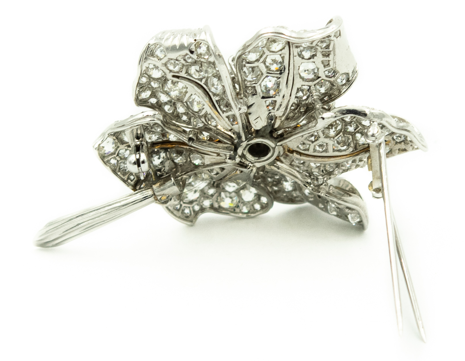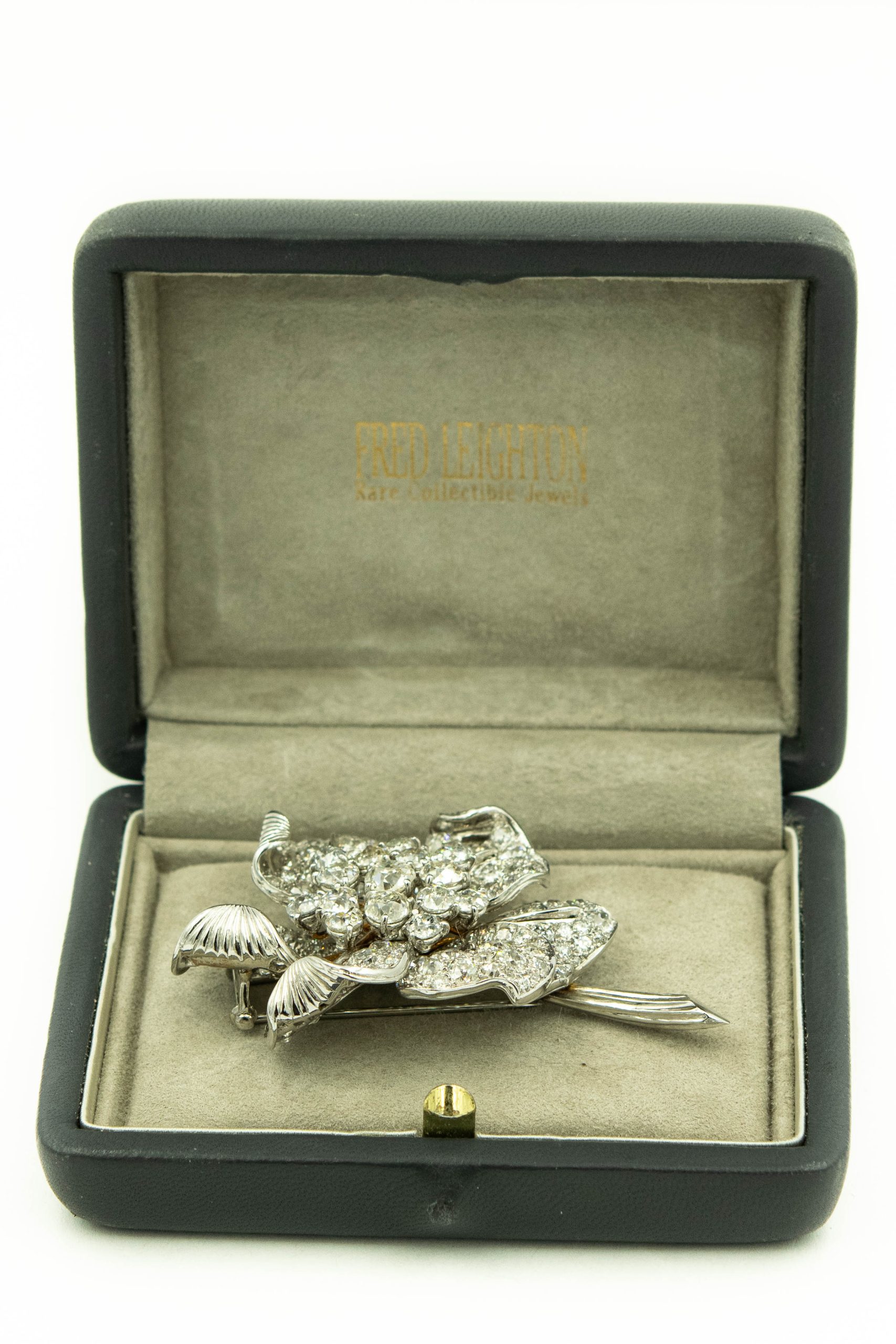 Estate Platinum and Diamond Floral Brooch By Fred Leighton