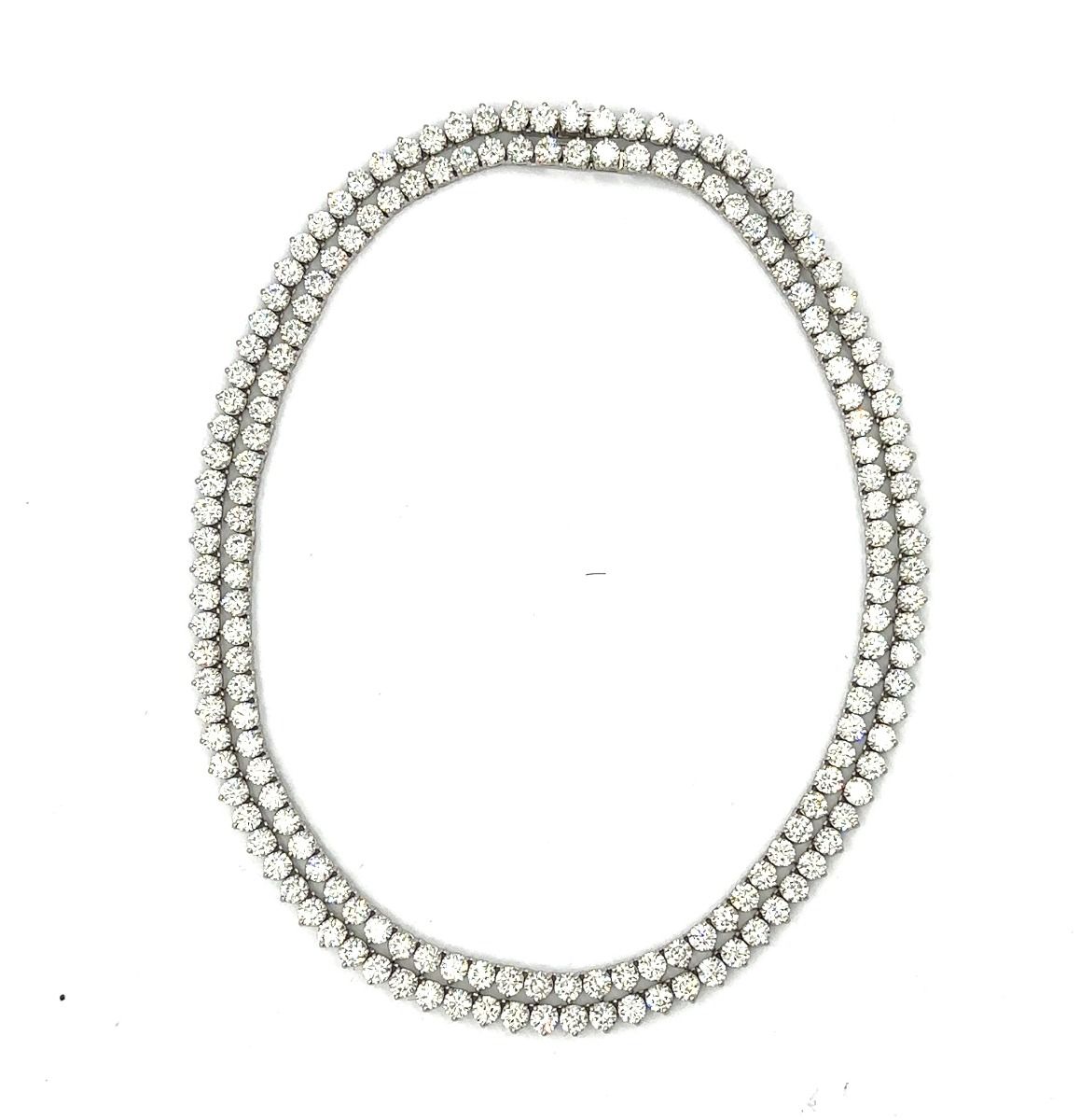 Estate Platinum and Diamond Necklace; platinum; 62.40dwt/97.03g; 169 diamonds 70.00Cts. The necklace can be worn in a single or double graduating strand design that measures 15 3/4" and 16 1/2" in length; 2 1/4" extender and measuring 34 1/4" as a single strand.