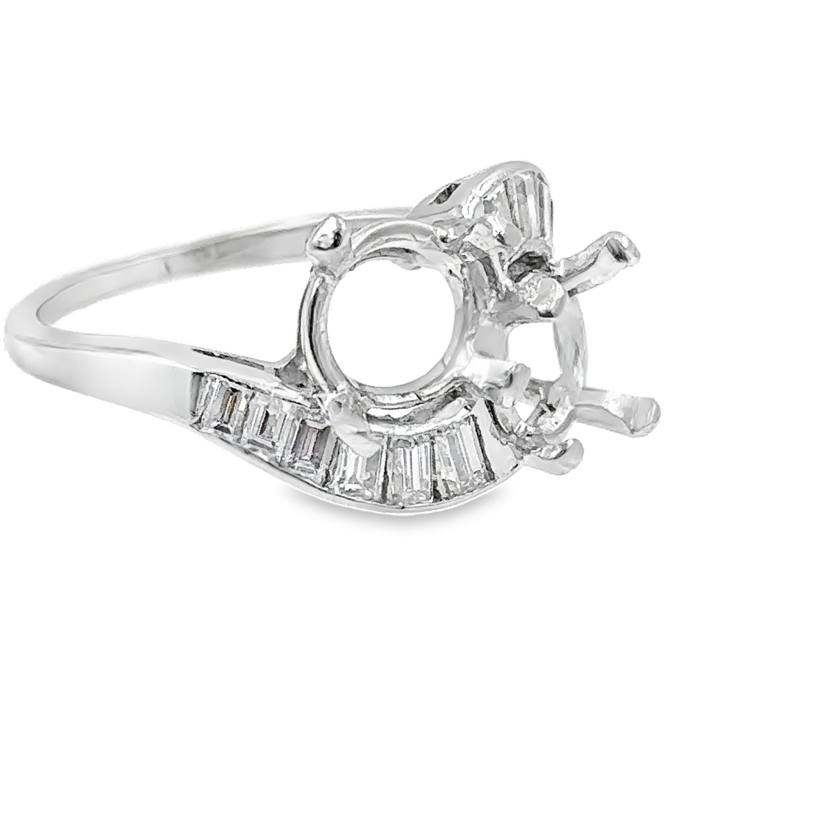 Estate Platinum and Diamond Semi Mount Ring; platinum; 3.60dwt/5.70g; 12 baguette diamonds 0.75cts; Ring Size 7 1/4