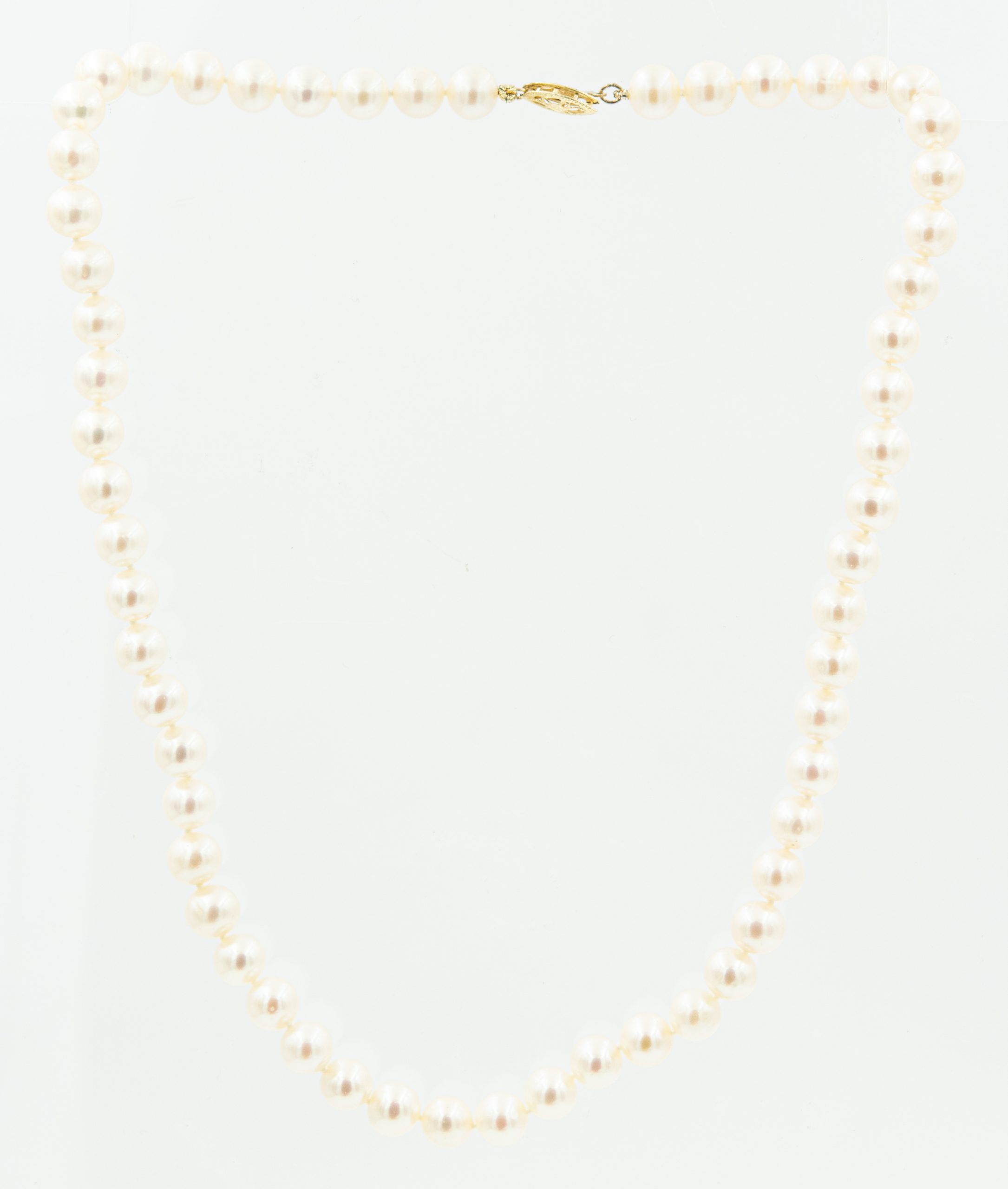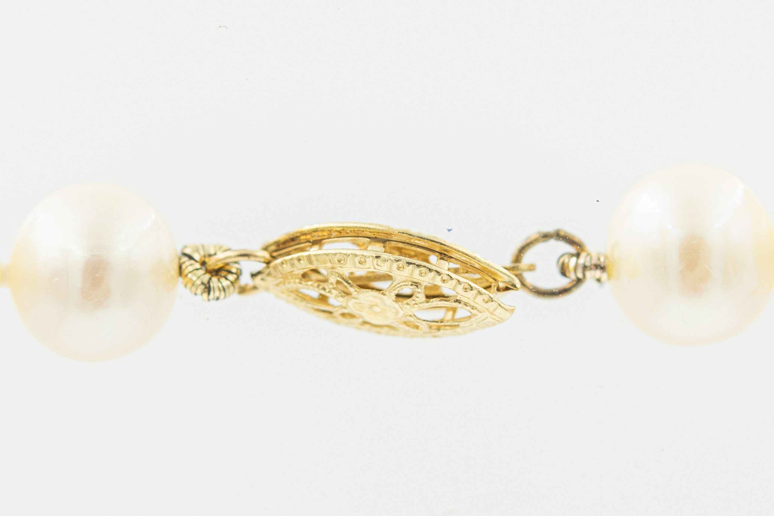 Estate Single Strand Pearl Necklace featuring; 14k gold clasp; 58 pearls 7.30mm; 17 1/2"