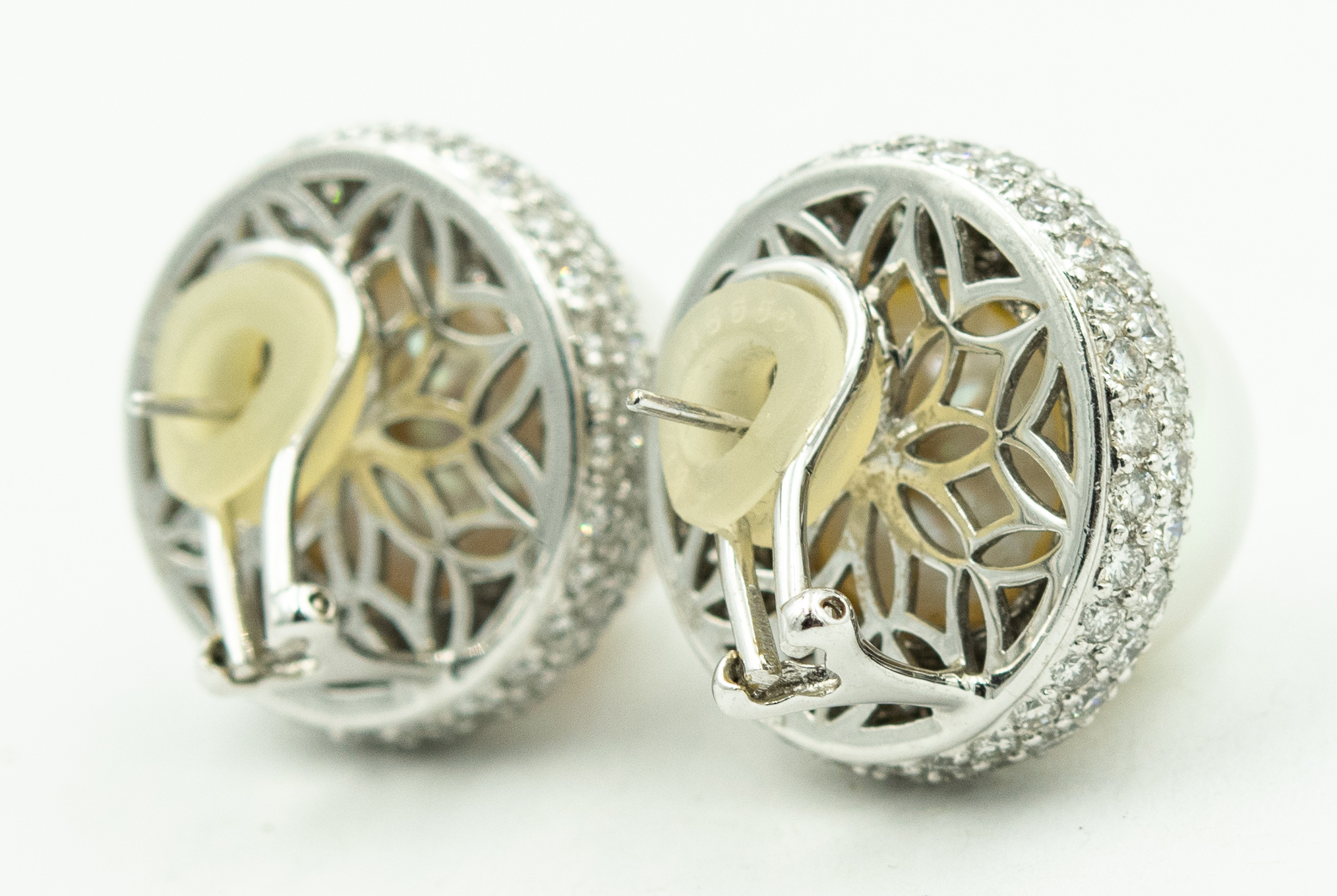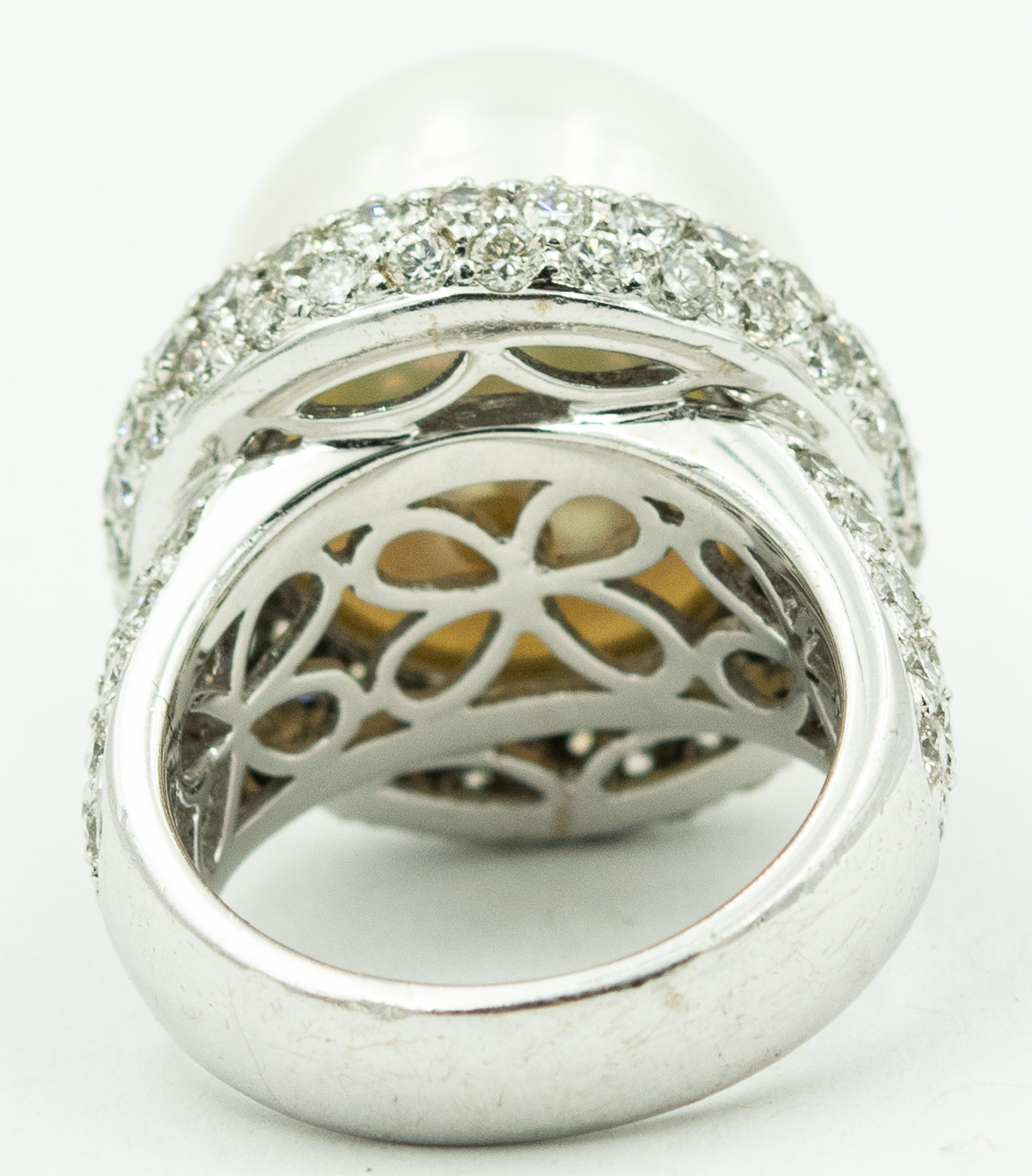 Estate South Sea Pearl and Diamond Necklace Earrings and Ring Suite