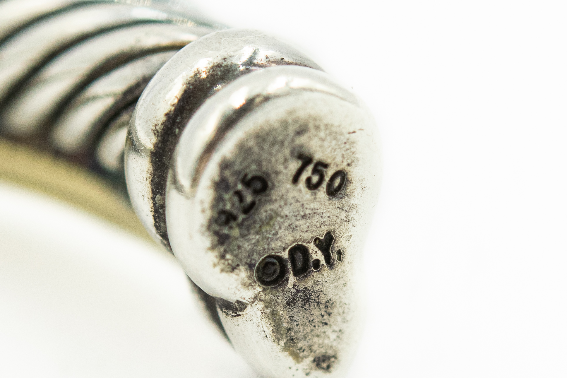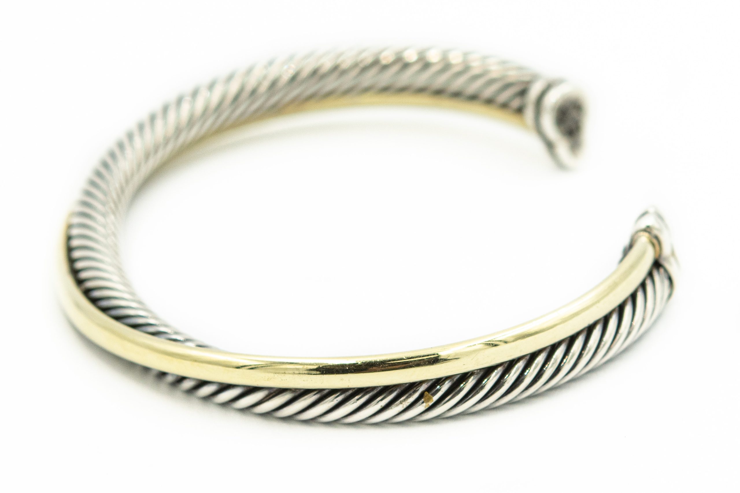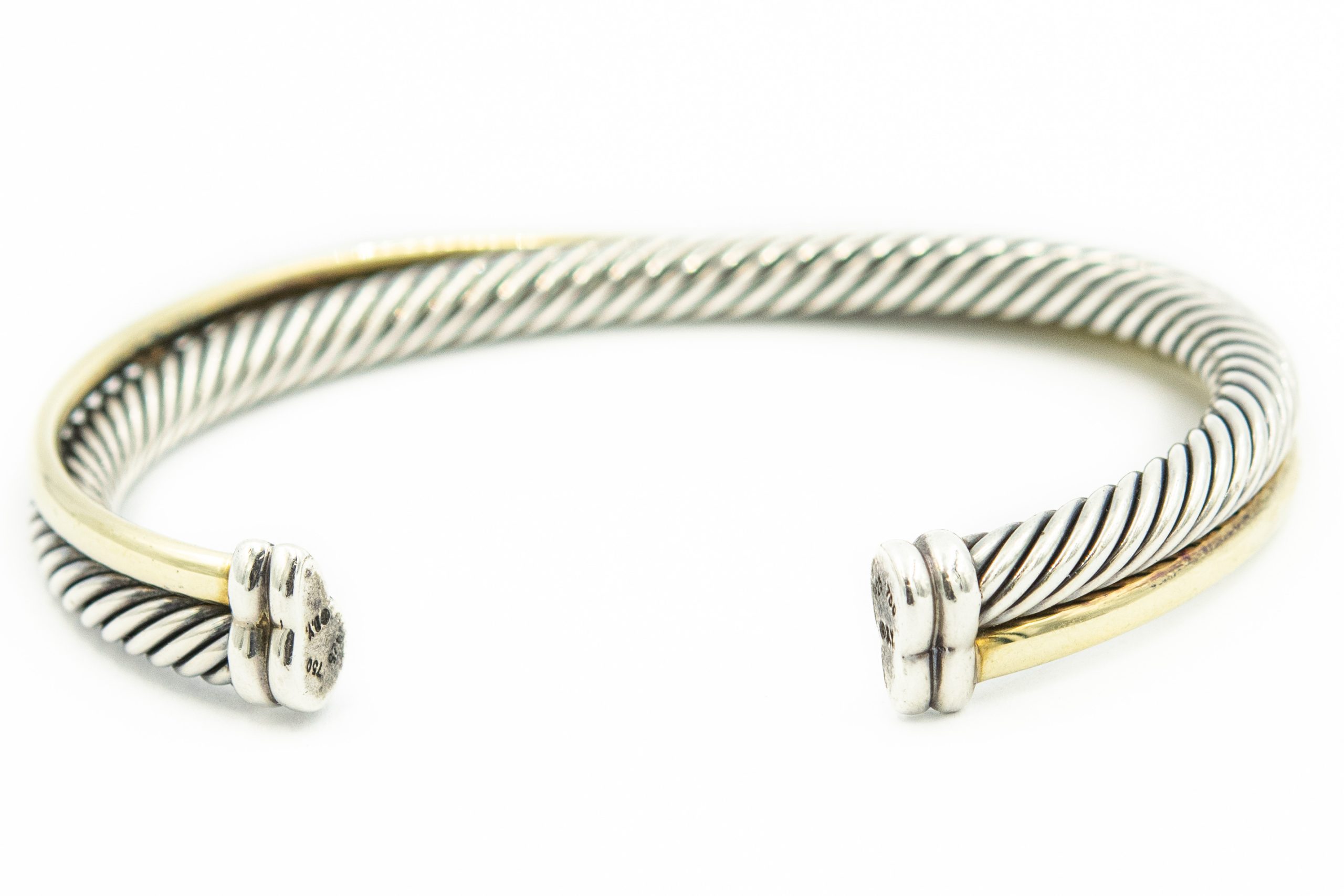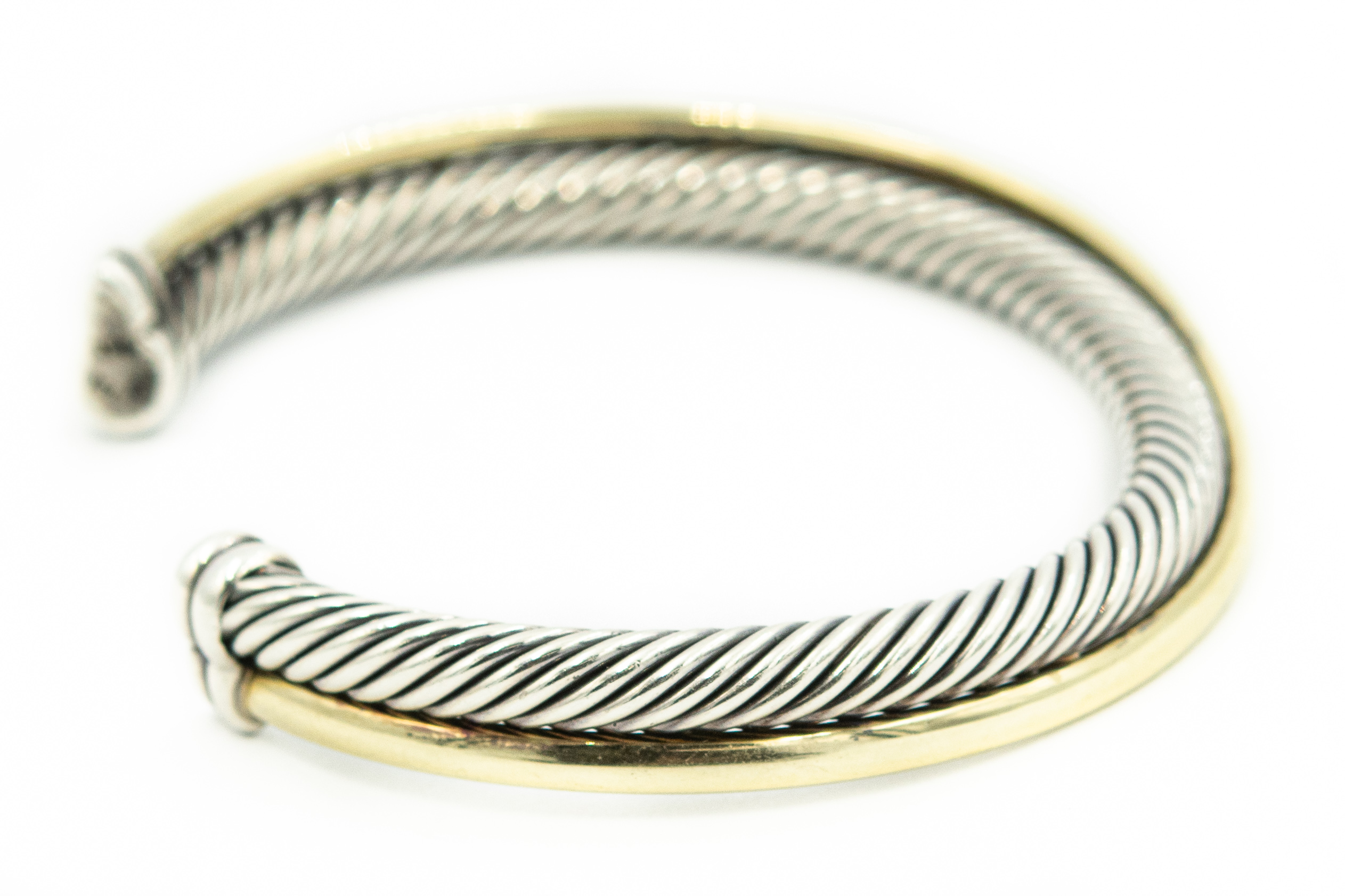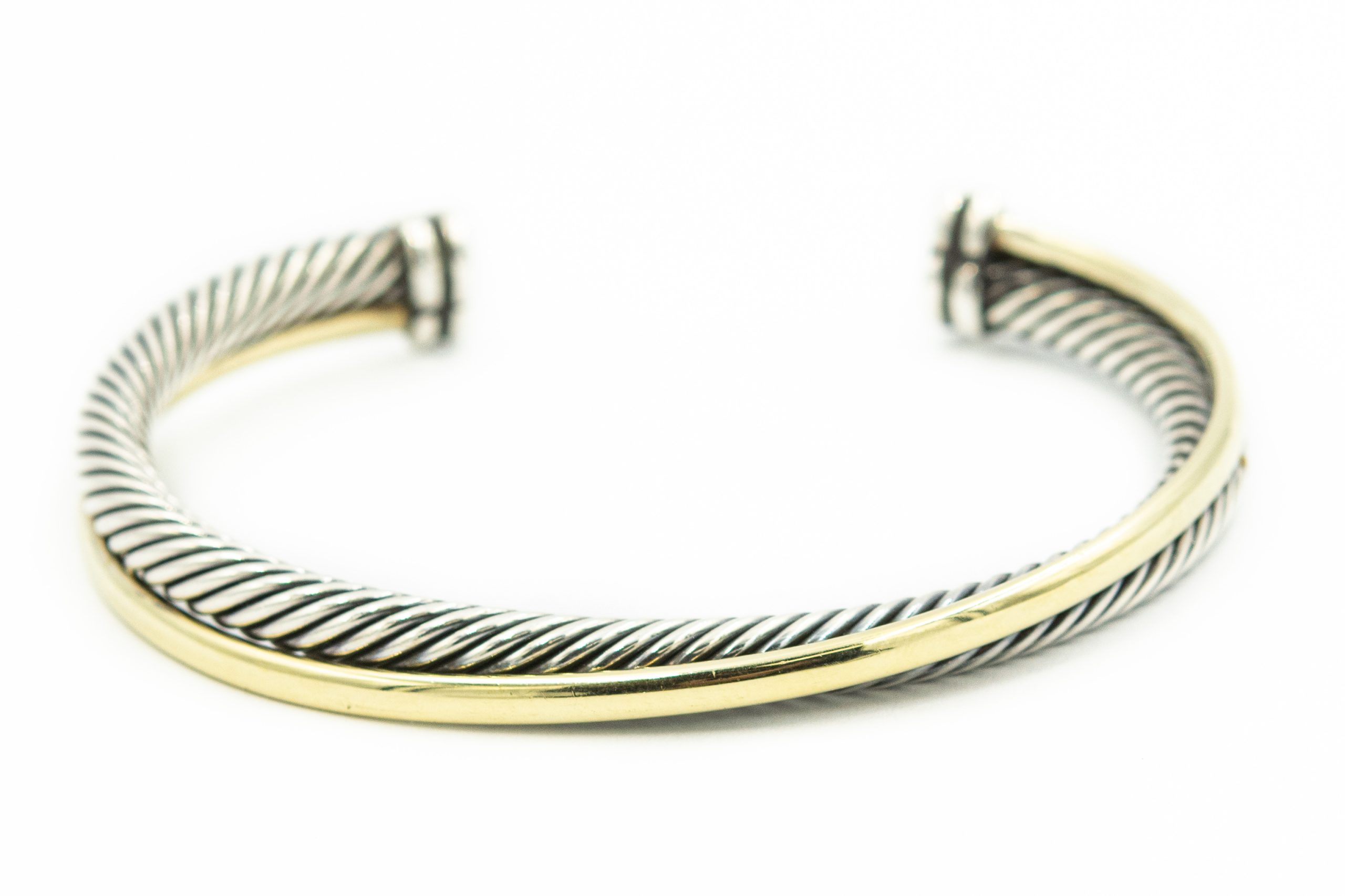 Estate Sterling Silver and Yellow Gold Crossover Twisted Cable Cuff Bangle Bracelet by David Yurman; sterling silver 18k yellow gold; 24.0dwt/37g
