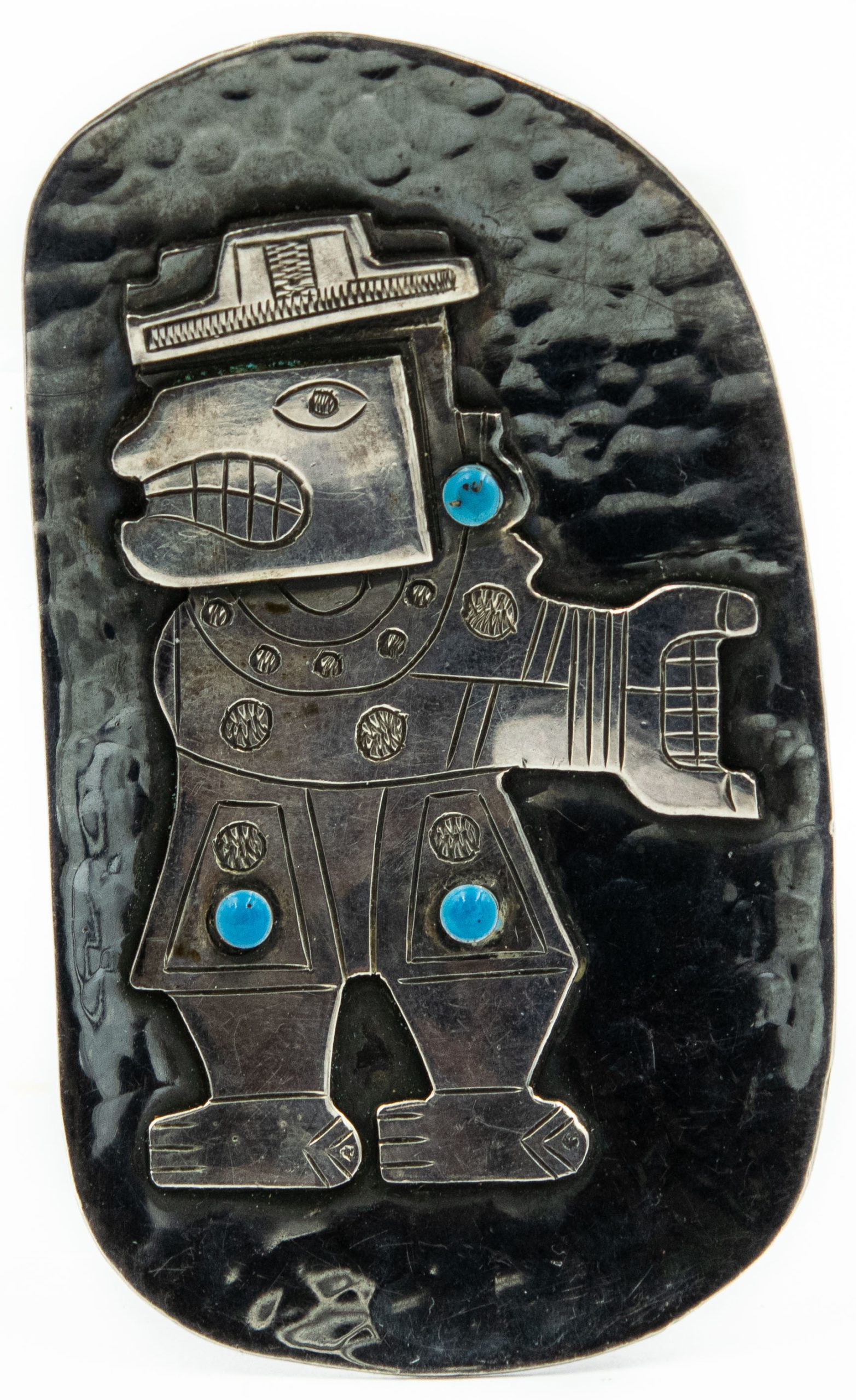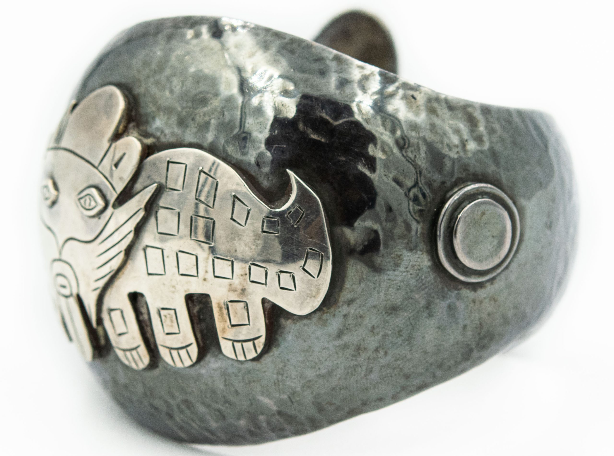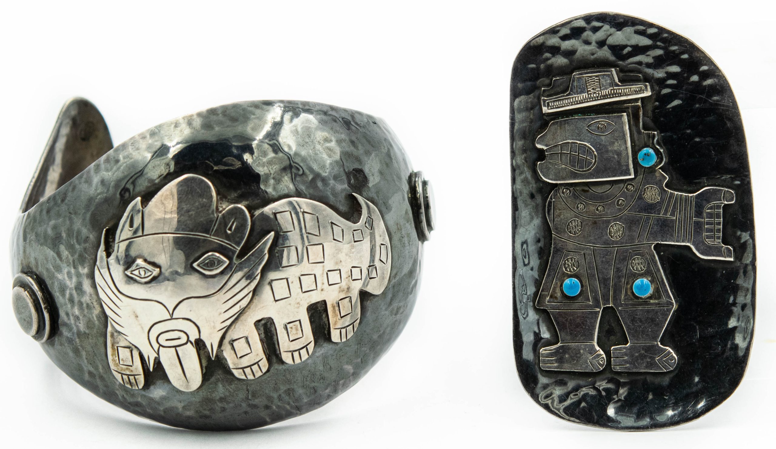 Estate Sterling Silver Imposed Inca Mythical Beast Bangle and Brooch Suite; sterling silver; 4.83Ozt.