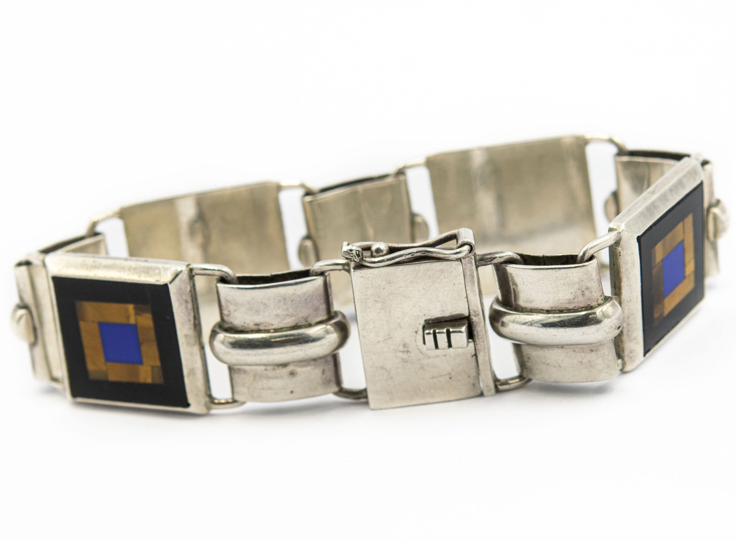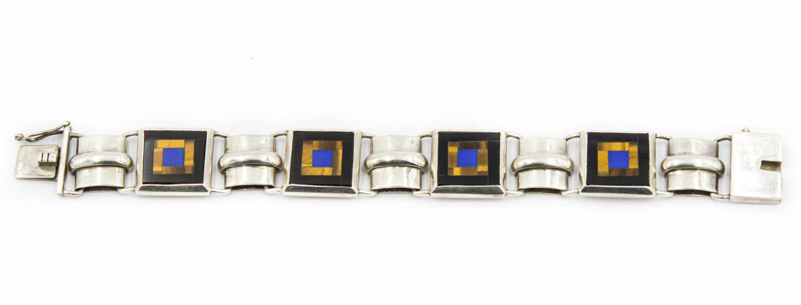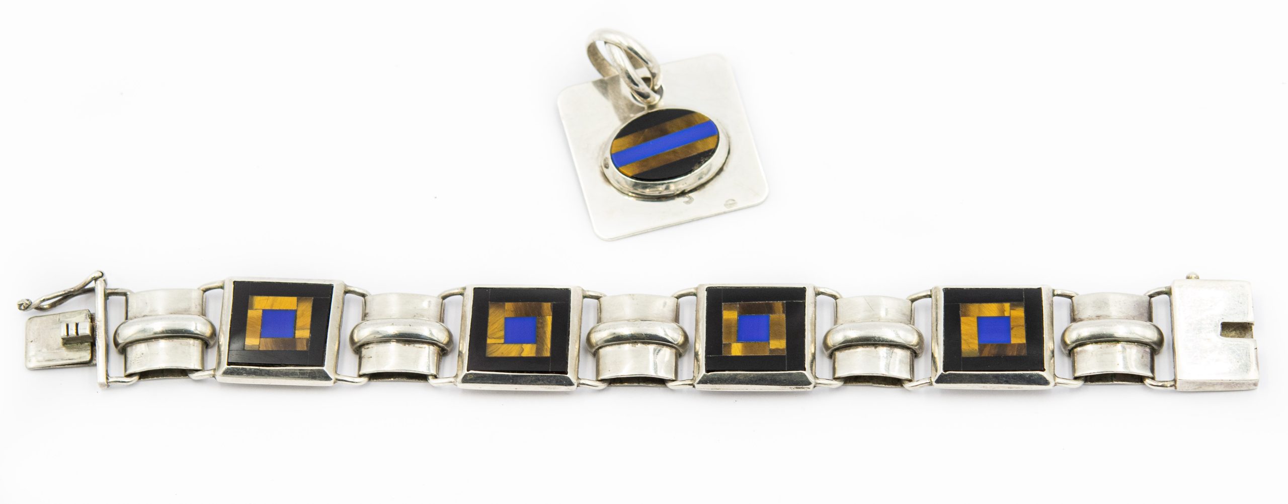 Estate Sterling Silver Inlayed Gemstone Bracelet and Pendant Suite; sterling silver; 44.70dwt/70.00g, 7 3/4"