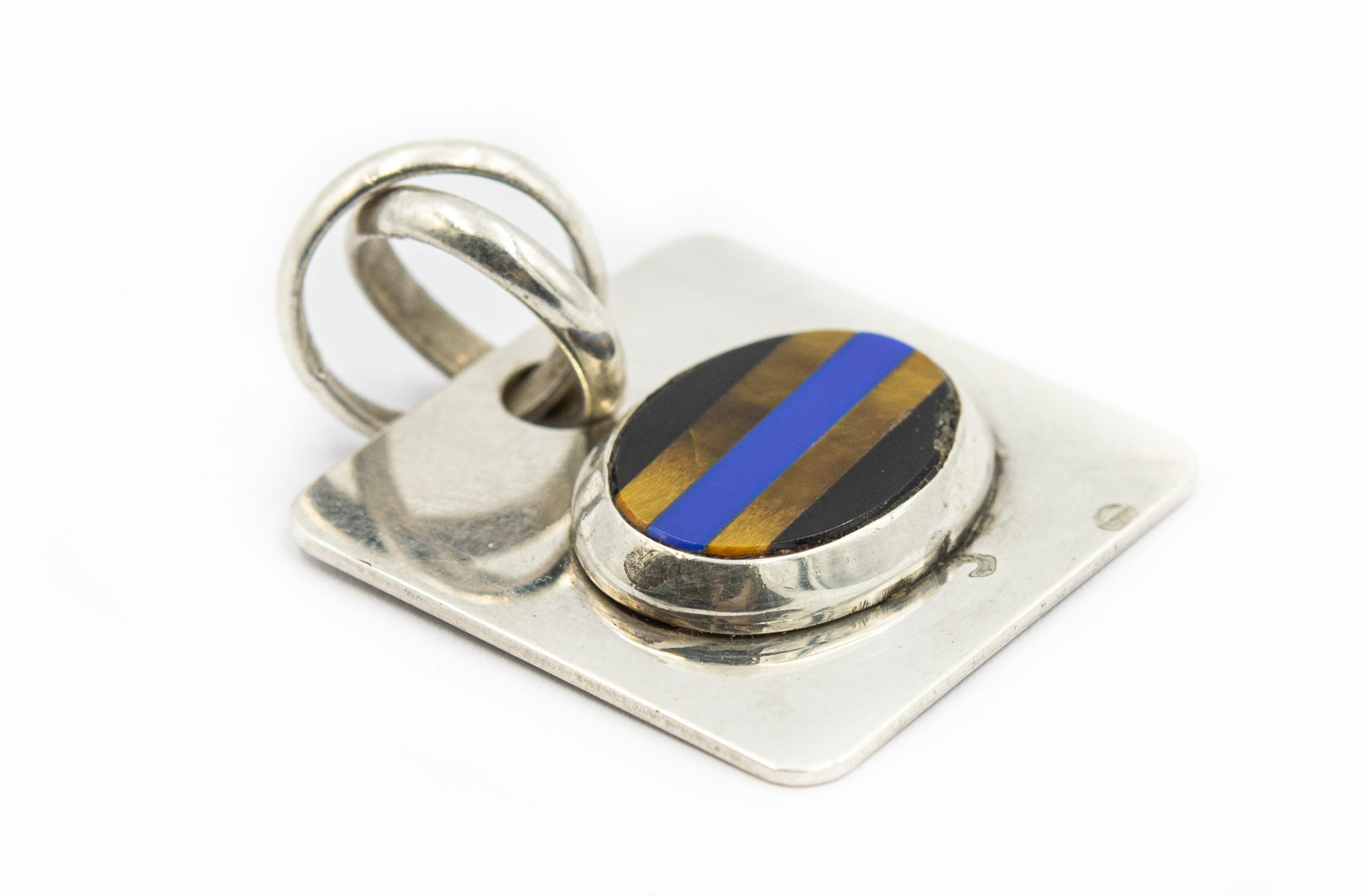Estate Sterling Silver Inlayed Gemstone Bracelet and Pendant Suite