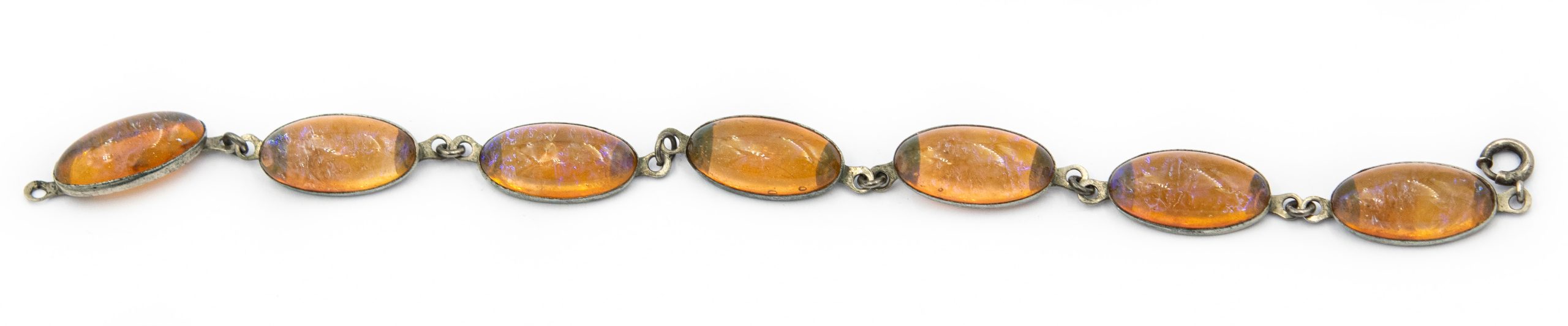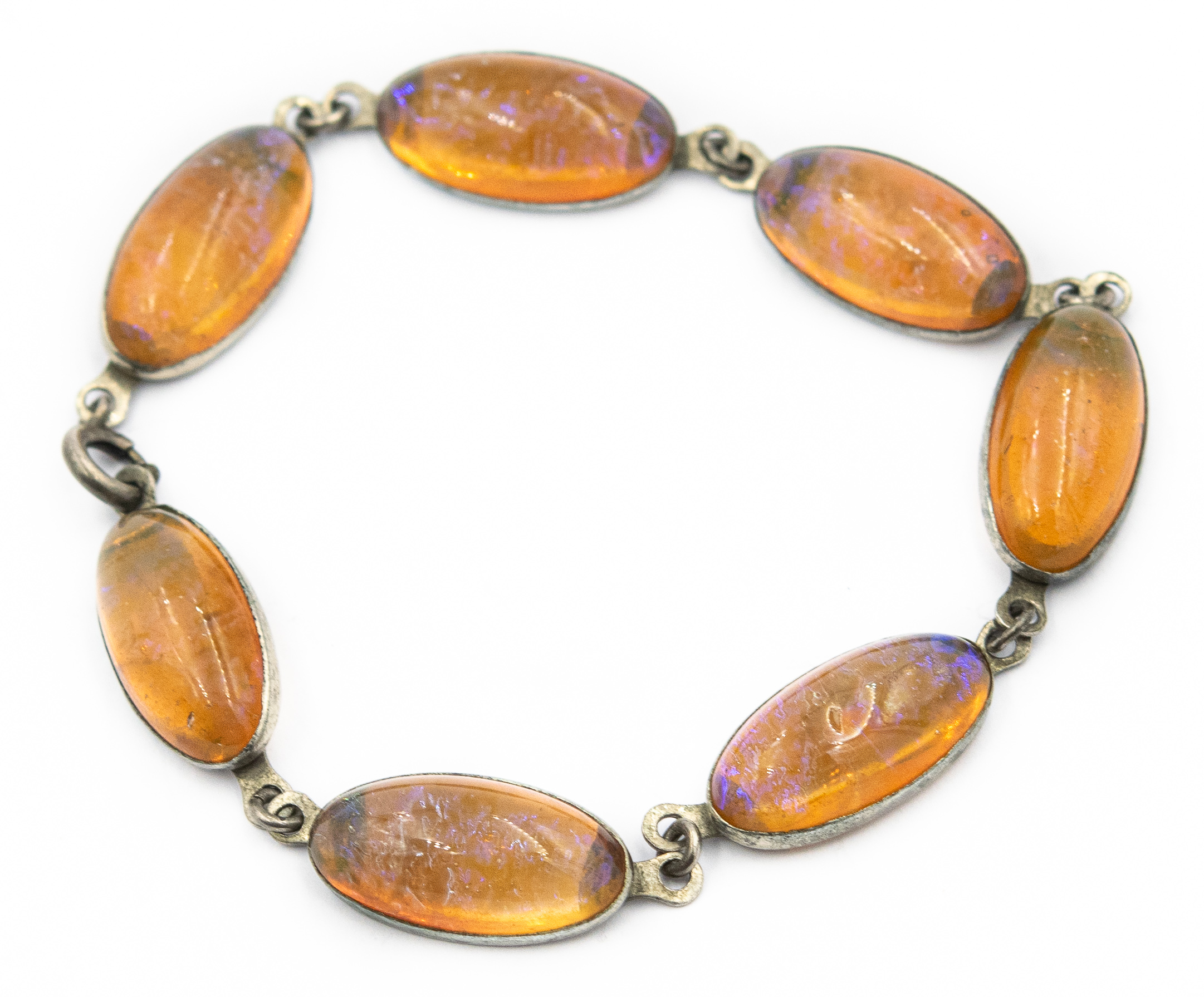 Estate Sterling Silver Opalescent Glass Bracelet; sterling silver; 16.90g; 7 1/2"
