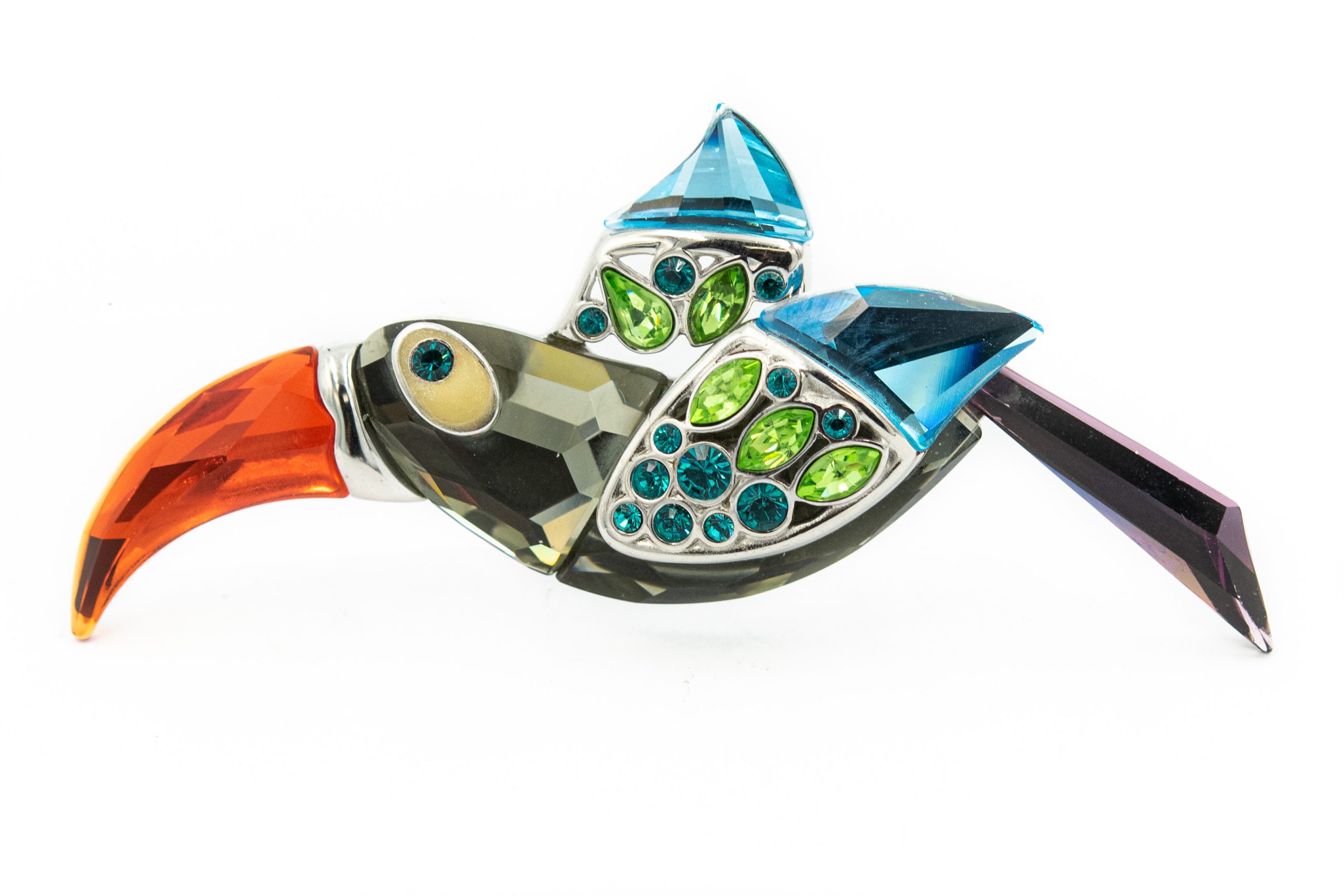 Estate Sterling Silver Toucan Brooch By Swarovski